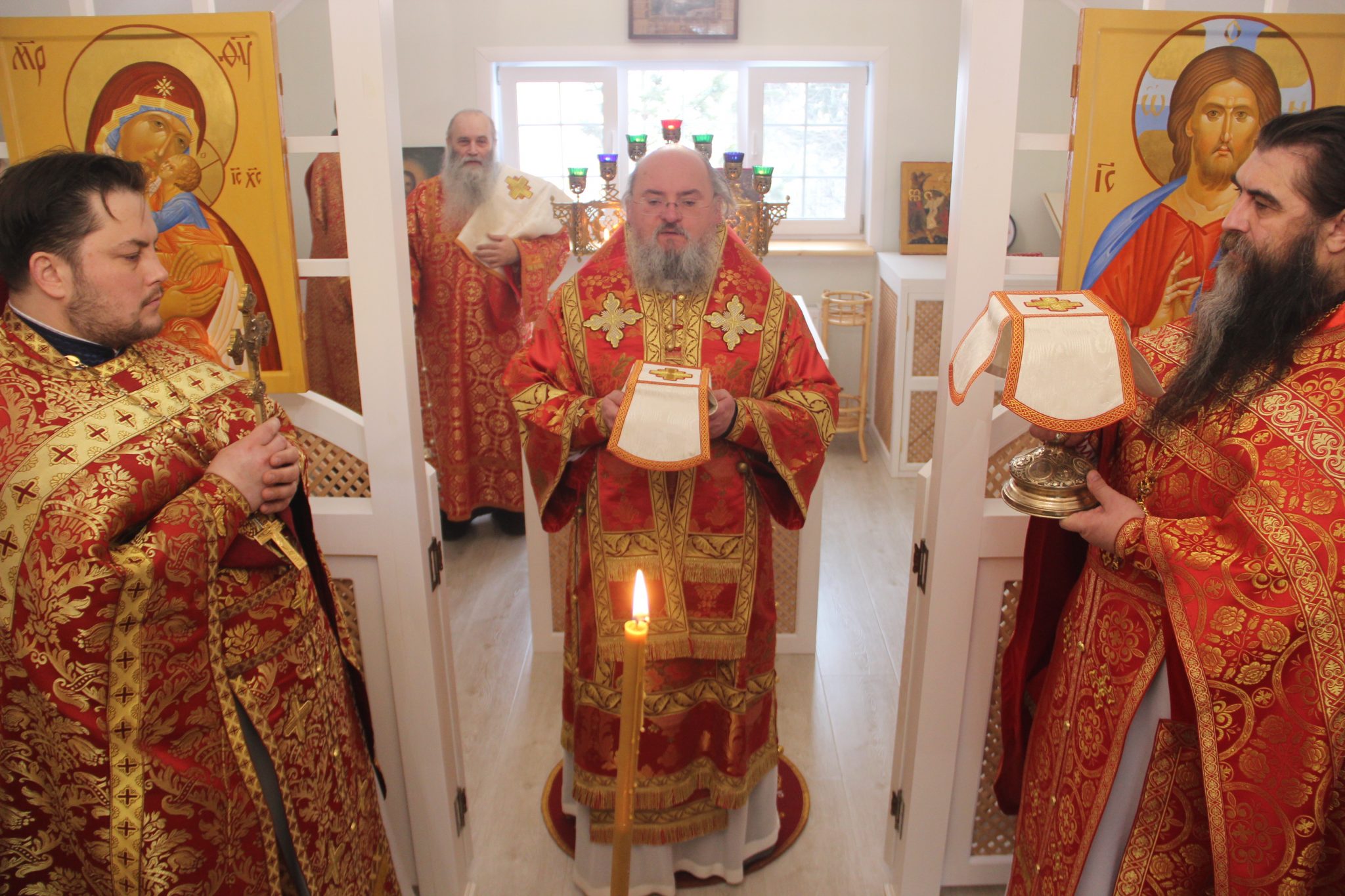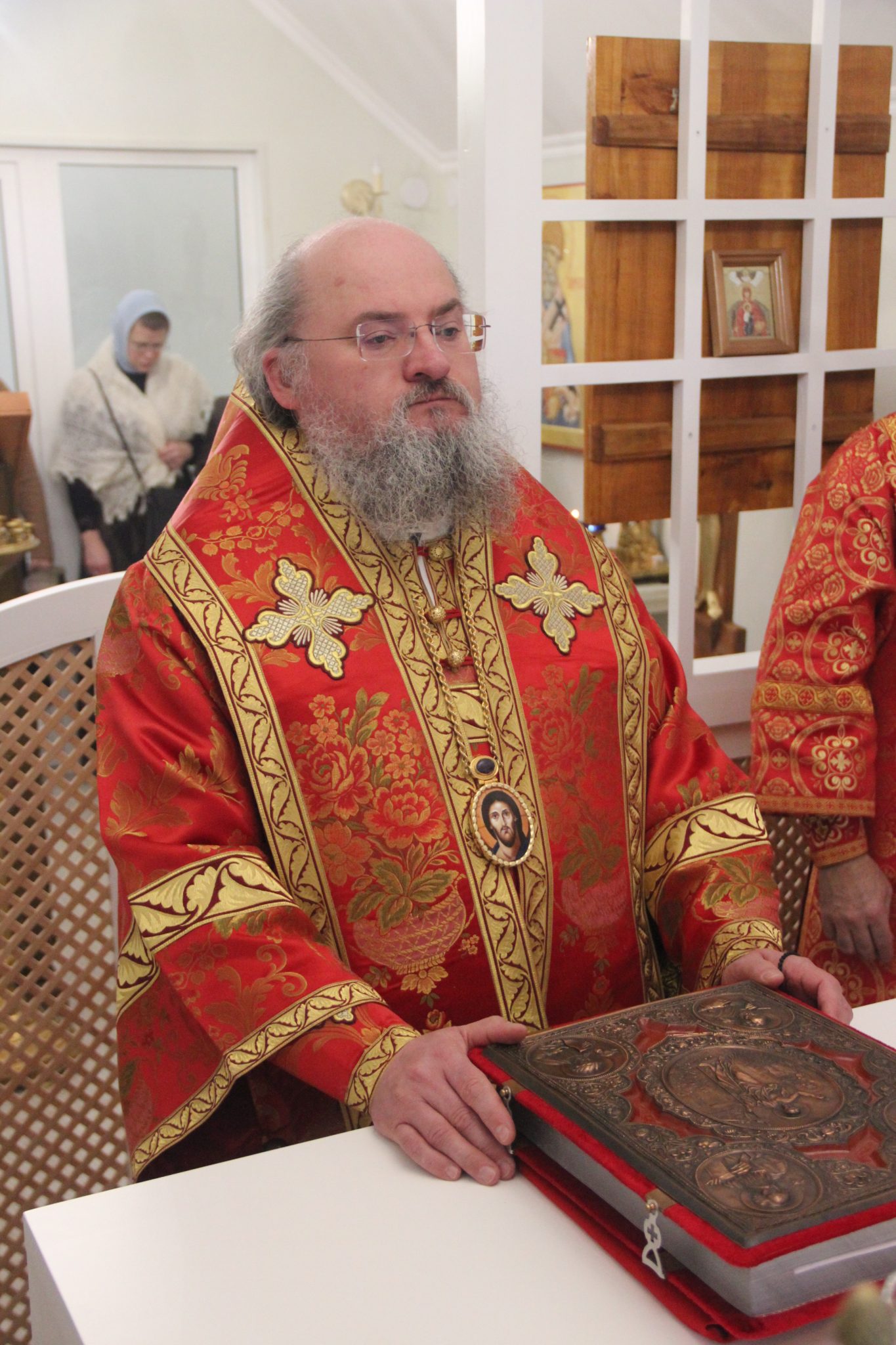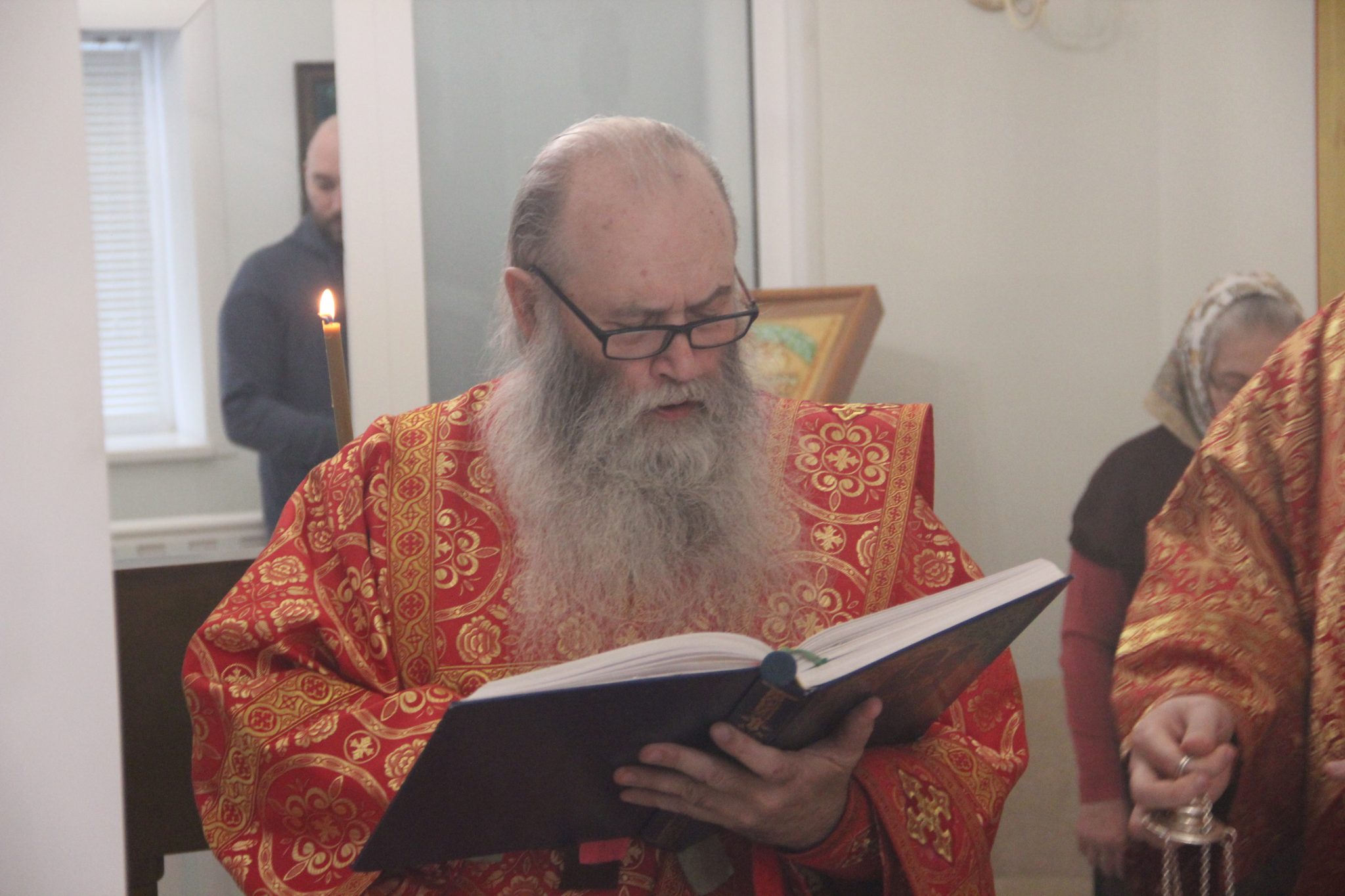 Архипастырю сослужили: настоятель монастыря игумен Михаил (Семенов), протоиерей Антоний Хатунцев: диакон Евгений Ковригин и иеродиакон Виталий (Павленко).