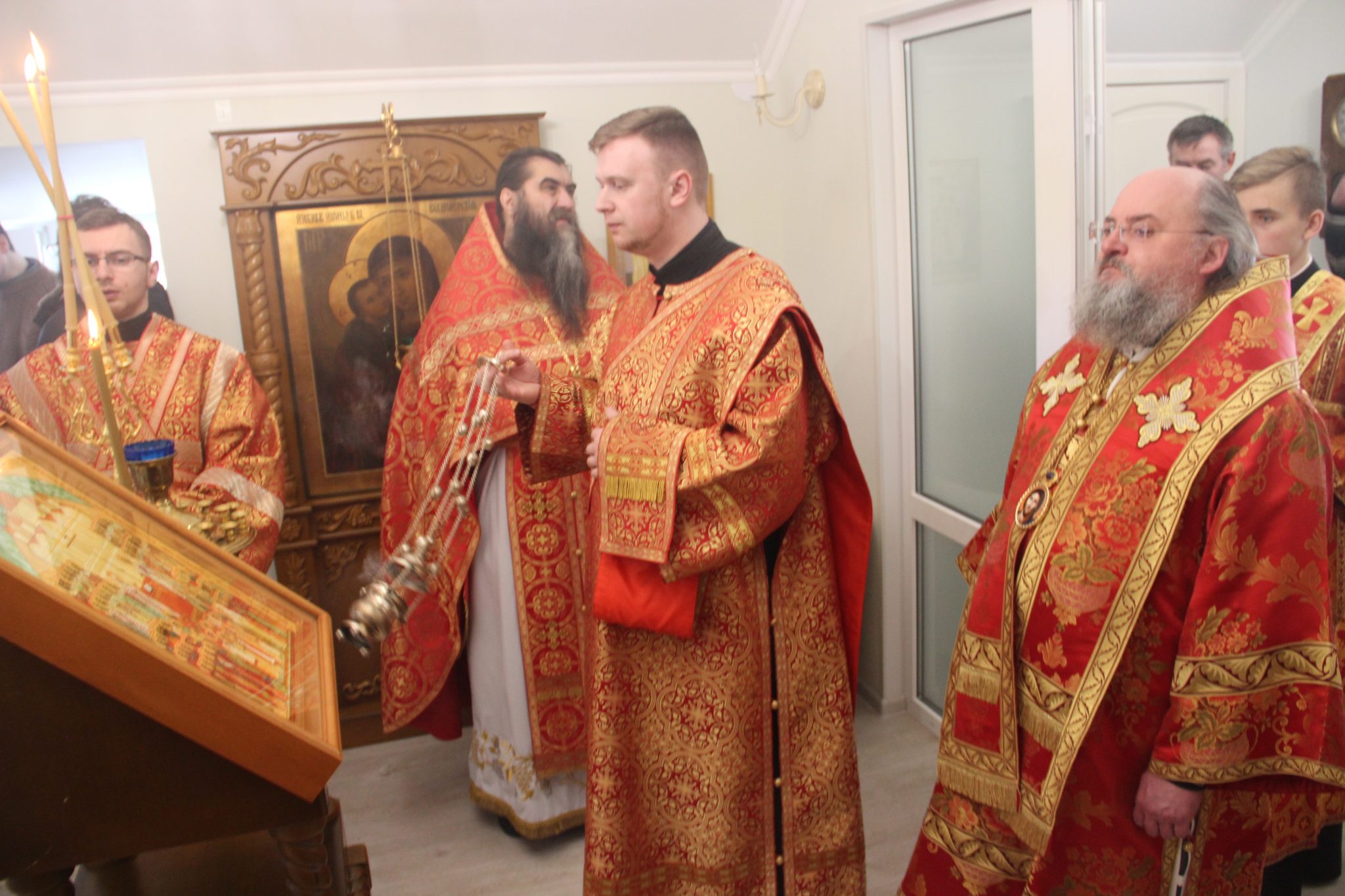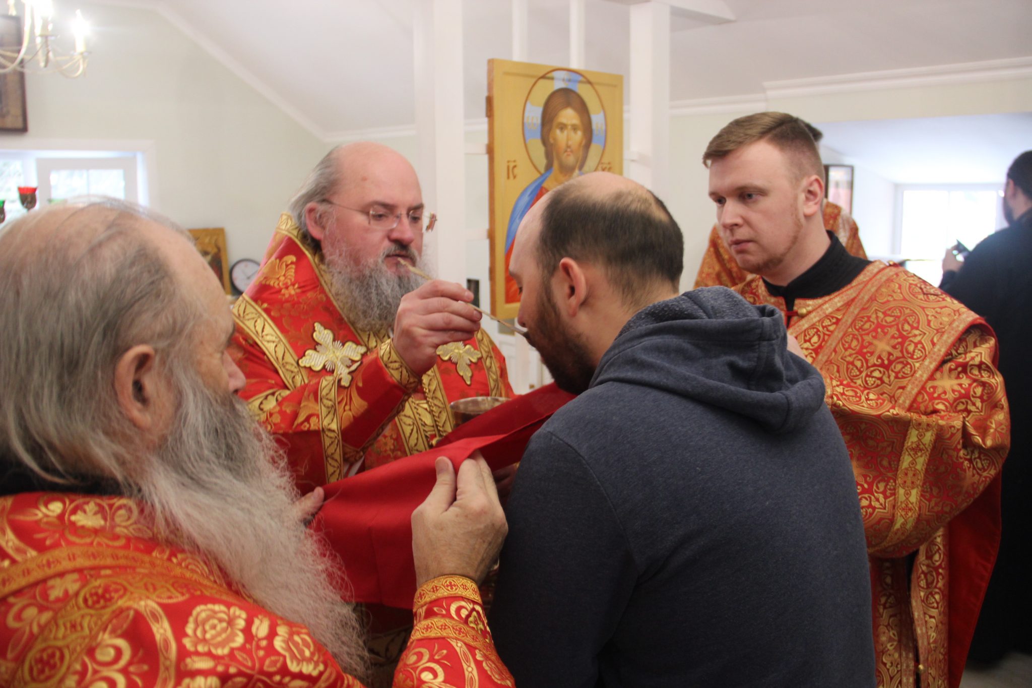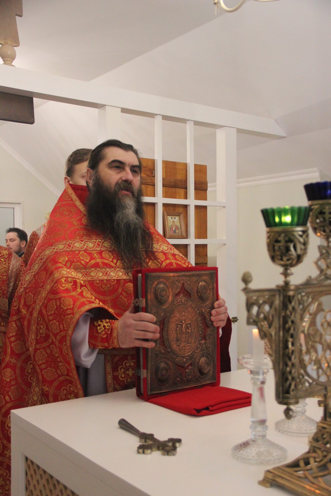 Архипастырю сослужили: настоятель монастыря игумен Михаил (Семенов), протоиерей Антоний Хатунцев: диакон Евгений Ковригин и иеродиакон Виталий (Павленко).