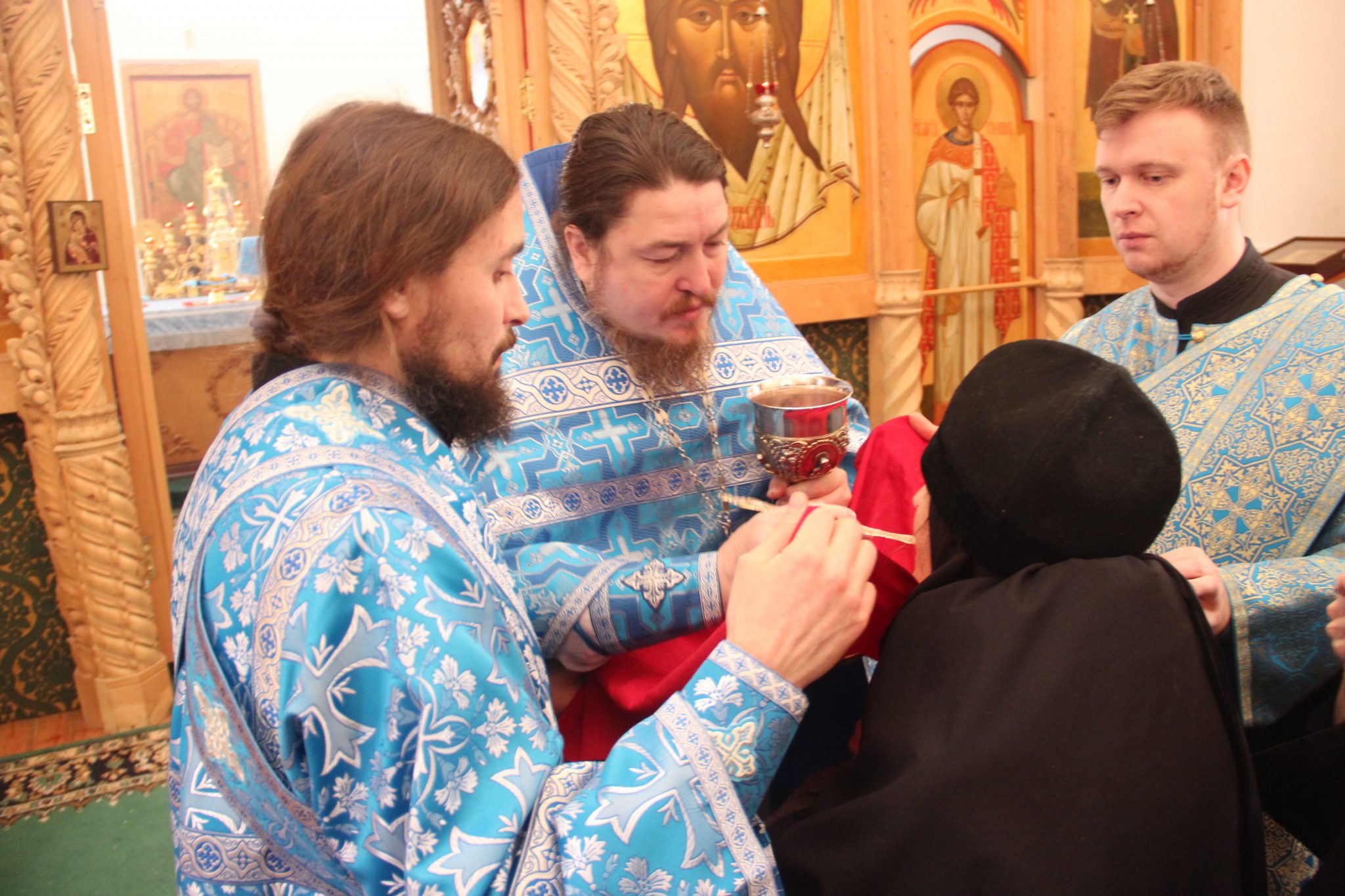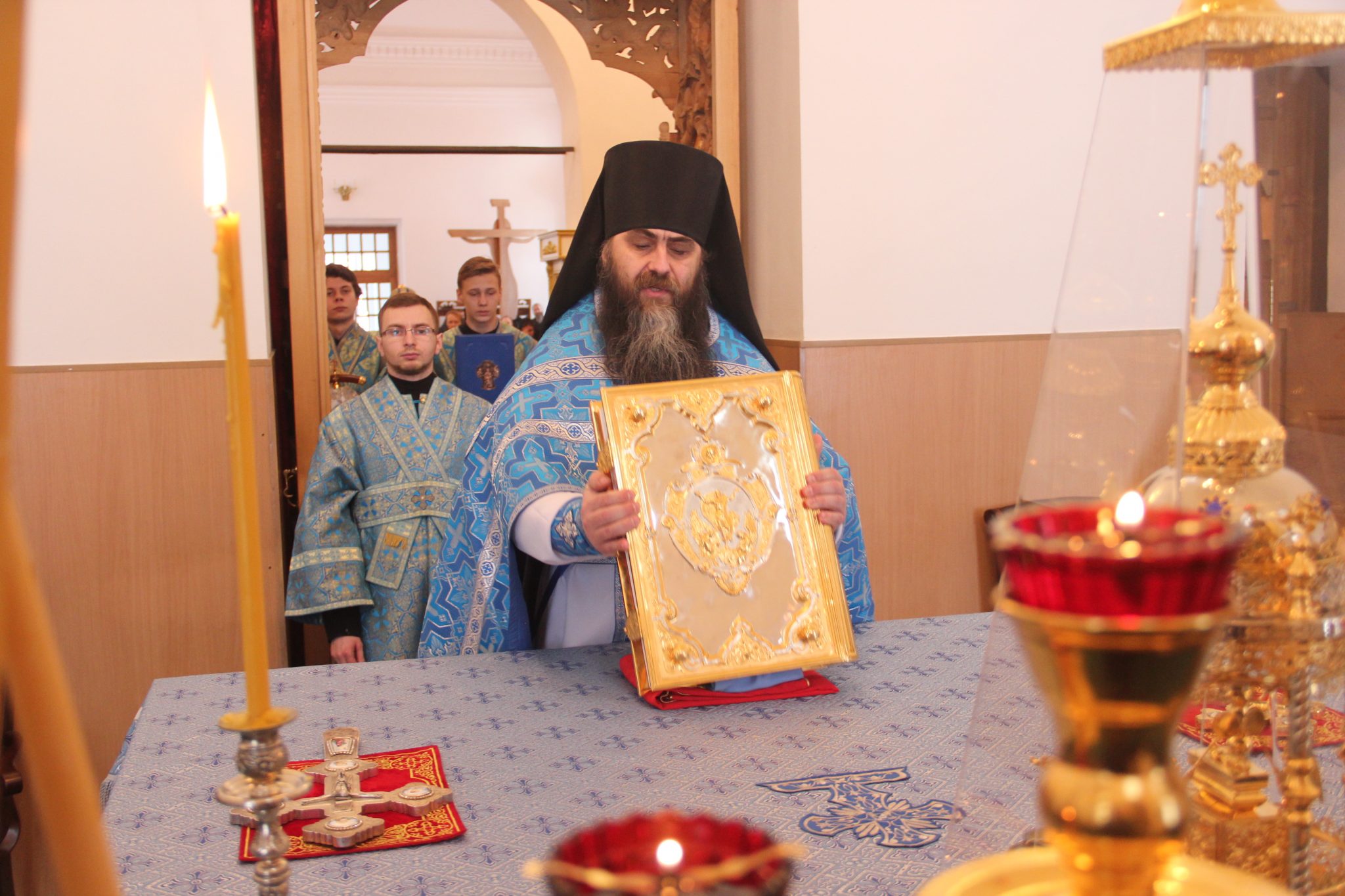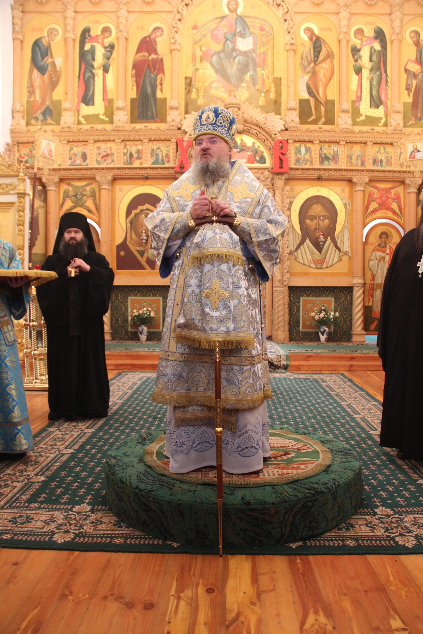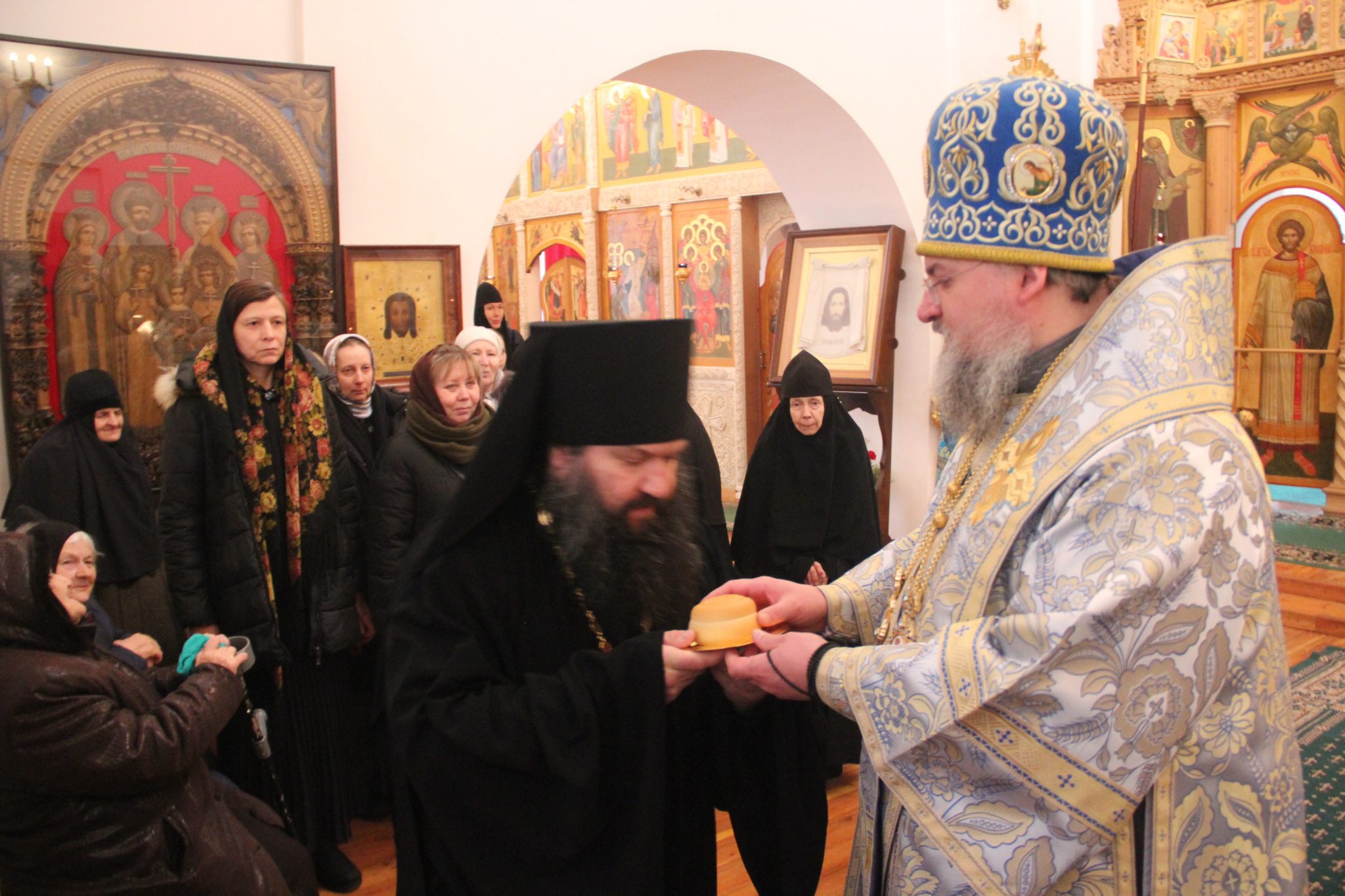 Архипастырю сослужили настоятель монастыря игумен Михаил (Семенов) с насельниками святой обители в священном сане.