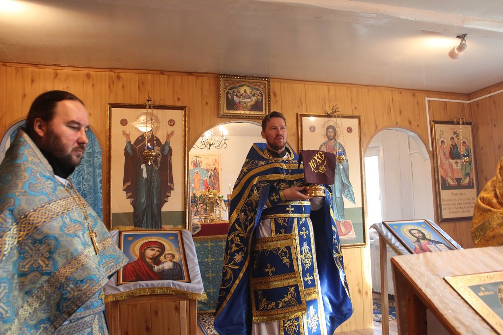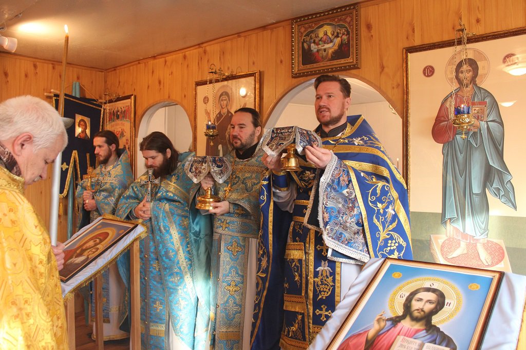 Праздничную Божественную Литургию возглавил протоиерей Александр Карпов (благочинный Хвастовиче-Ульяновского благочиния). Ему сослужили настоятель храма протоиерей Максим Садовников, протоиерей Александр Вейс (пос. Середейск) иерей Георгий Махаринец (село Красное).