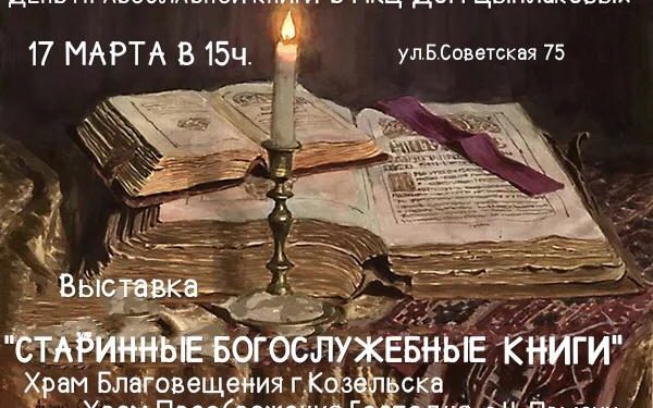 В экспозиции будут представленны старинные книги из храма Благовещения города Козельска и храма Преображения Господня села Нижние Прыски.