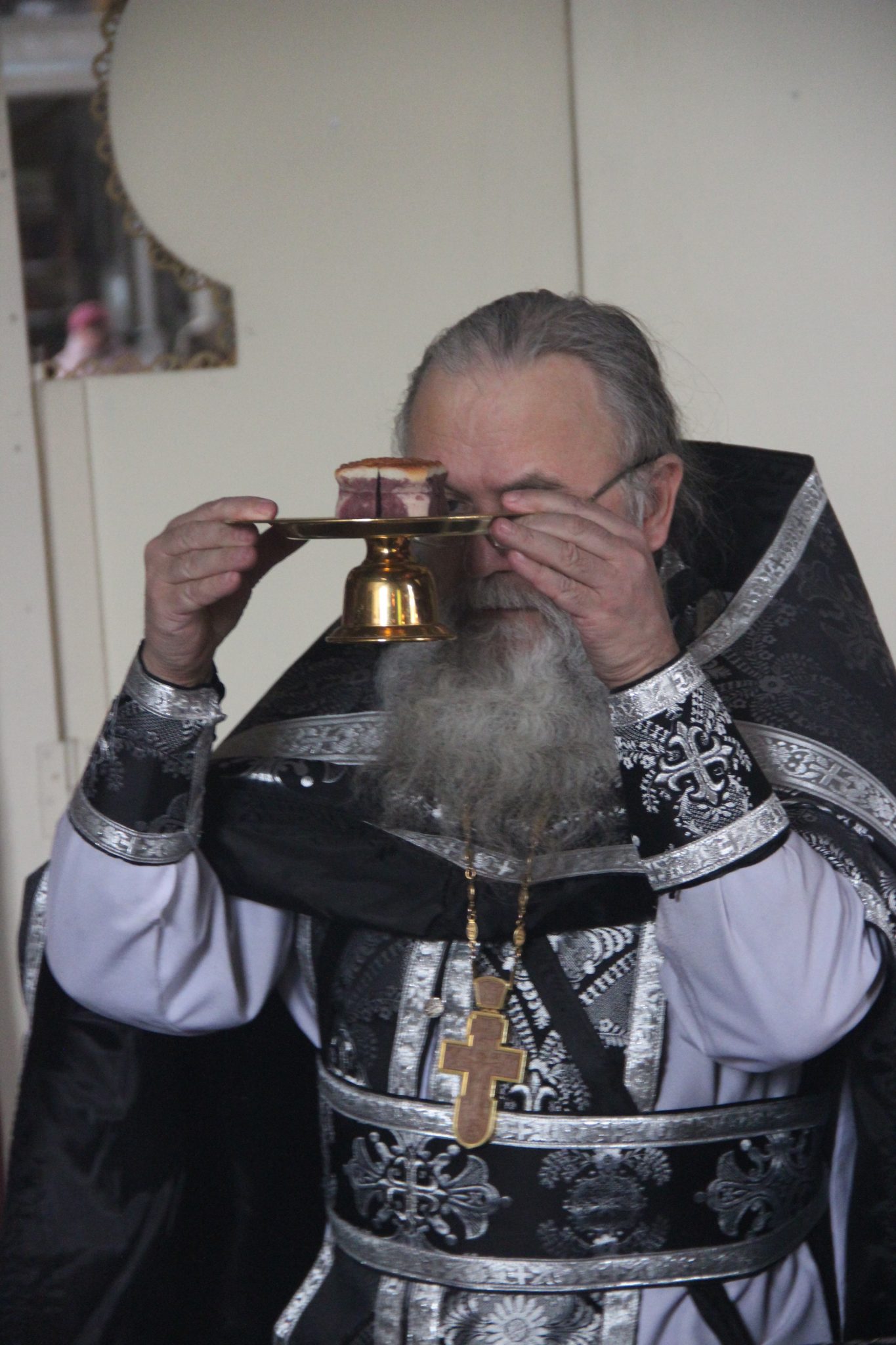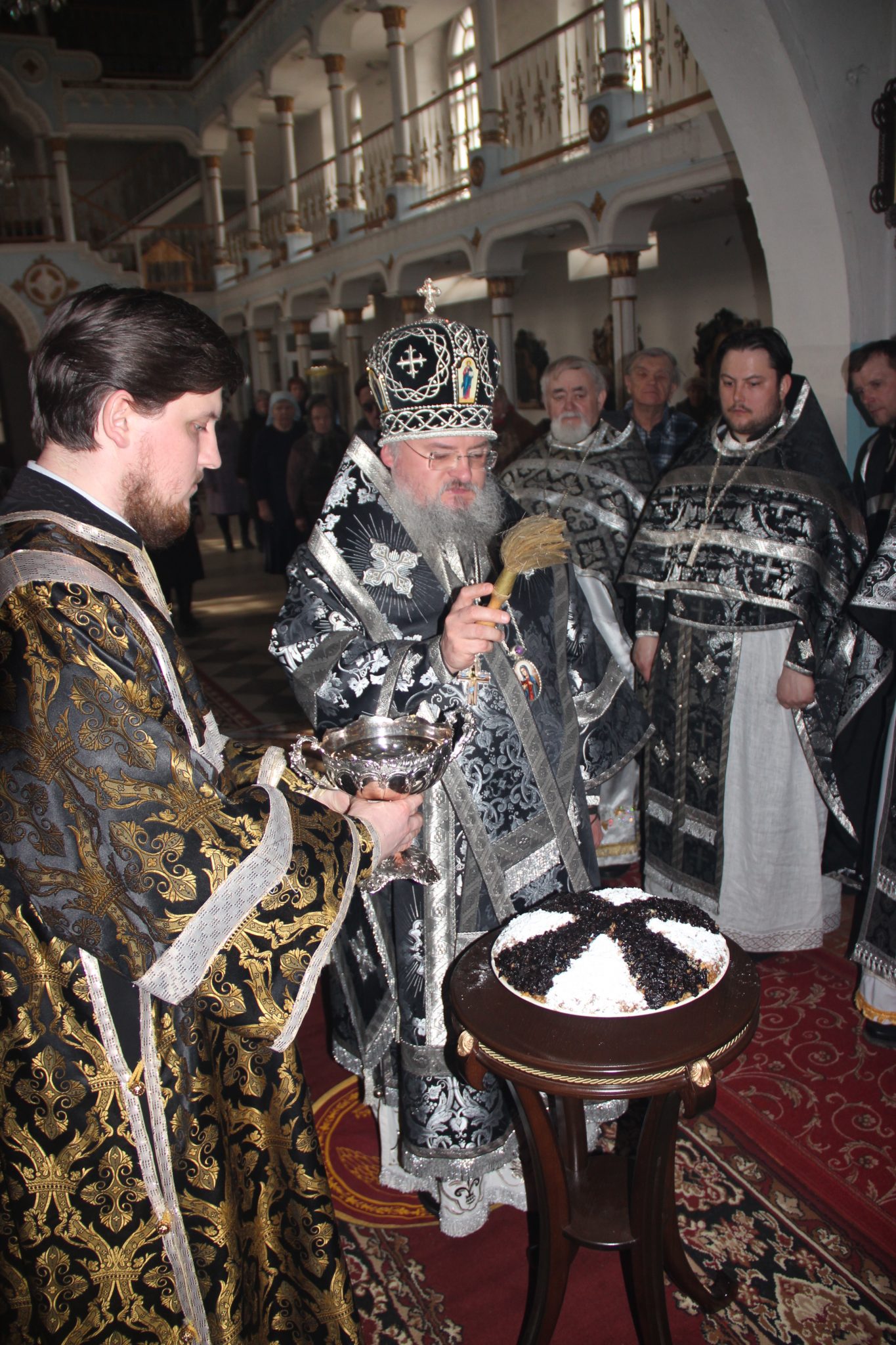 По заамвонной молитве священнослужители совершили молебен святому мученику Феодору Тирону, в завершении которого, вознеся молитву мученику, владыка, по традиции этого дня, освятил коливо.