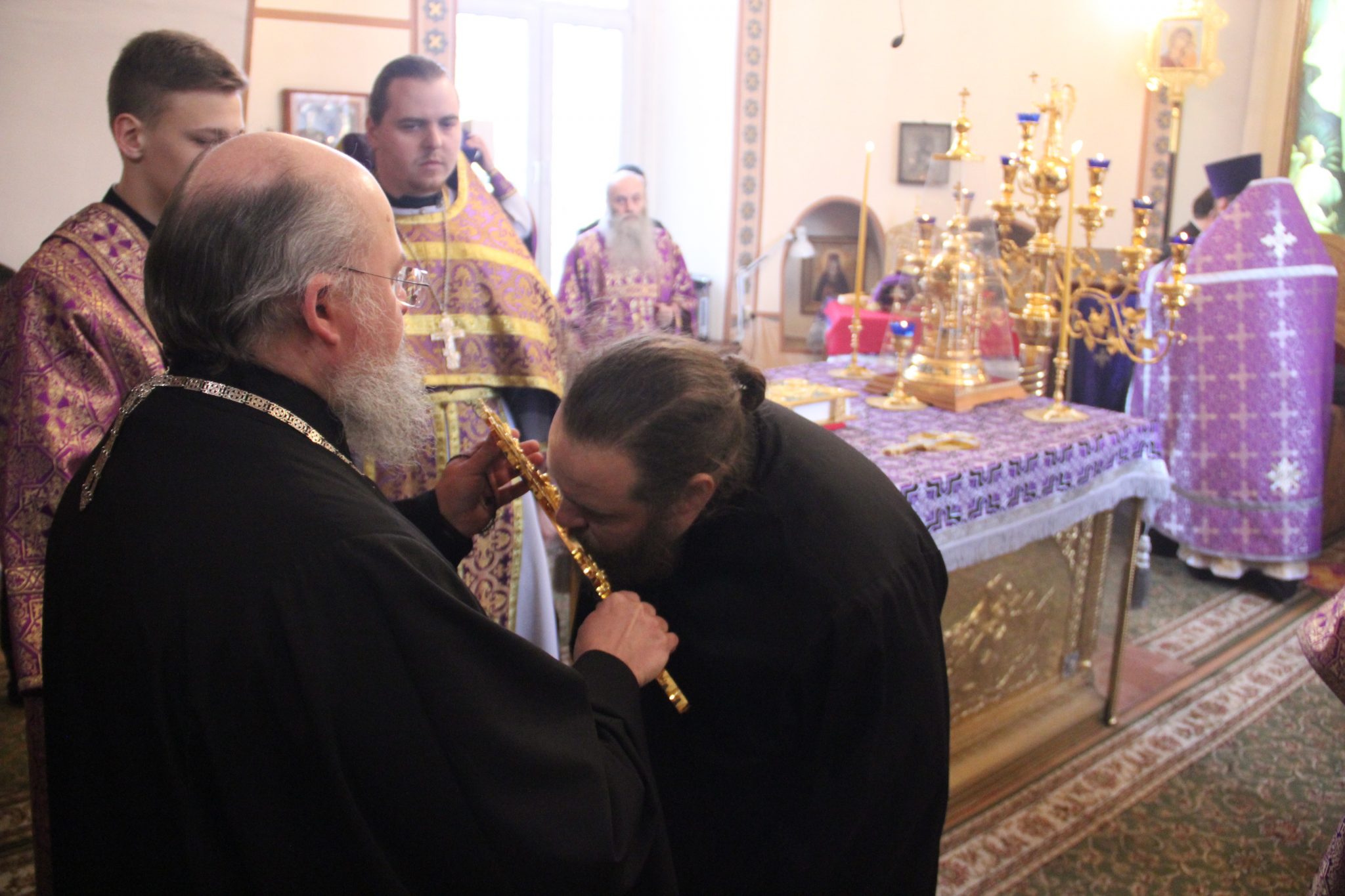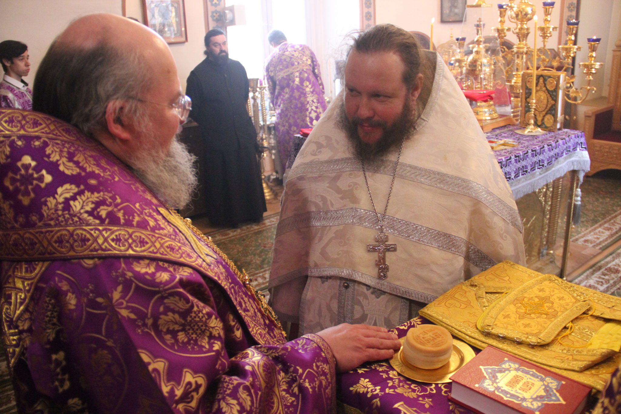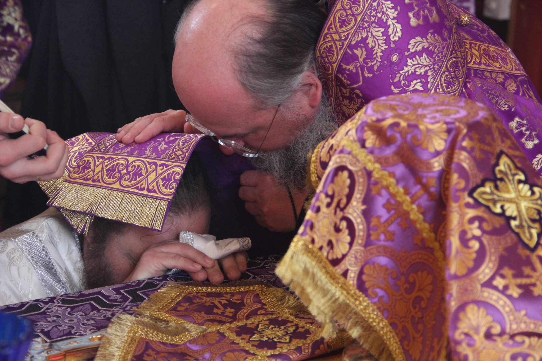 По Великом входе архипастырь совершил священническую хиротонию диакона Олега Леонова.