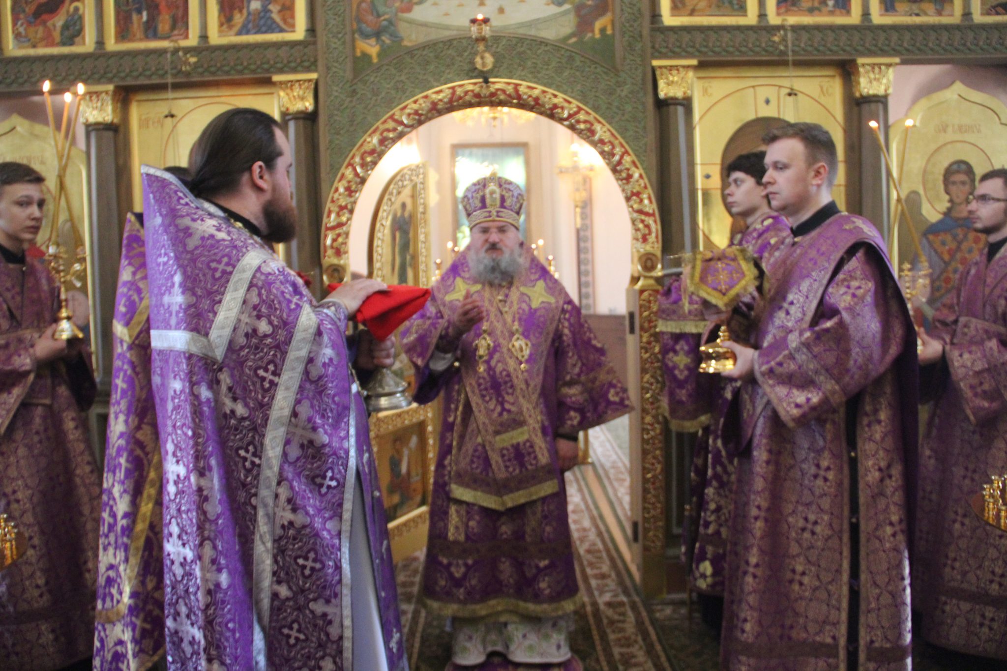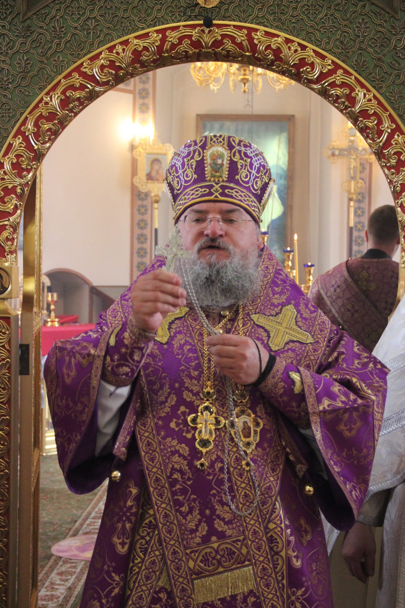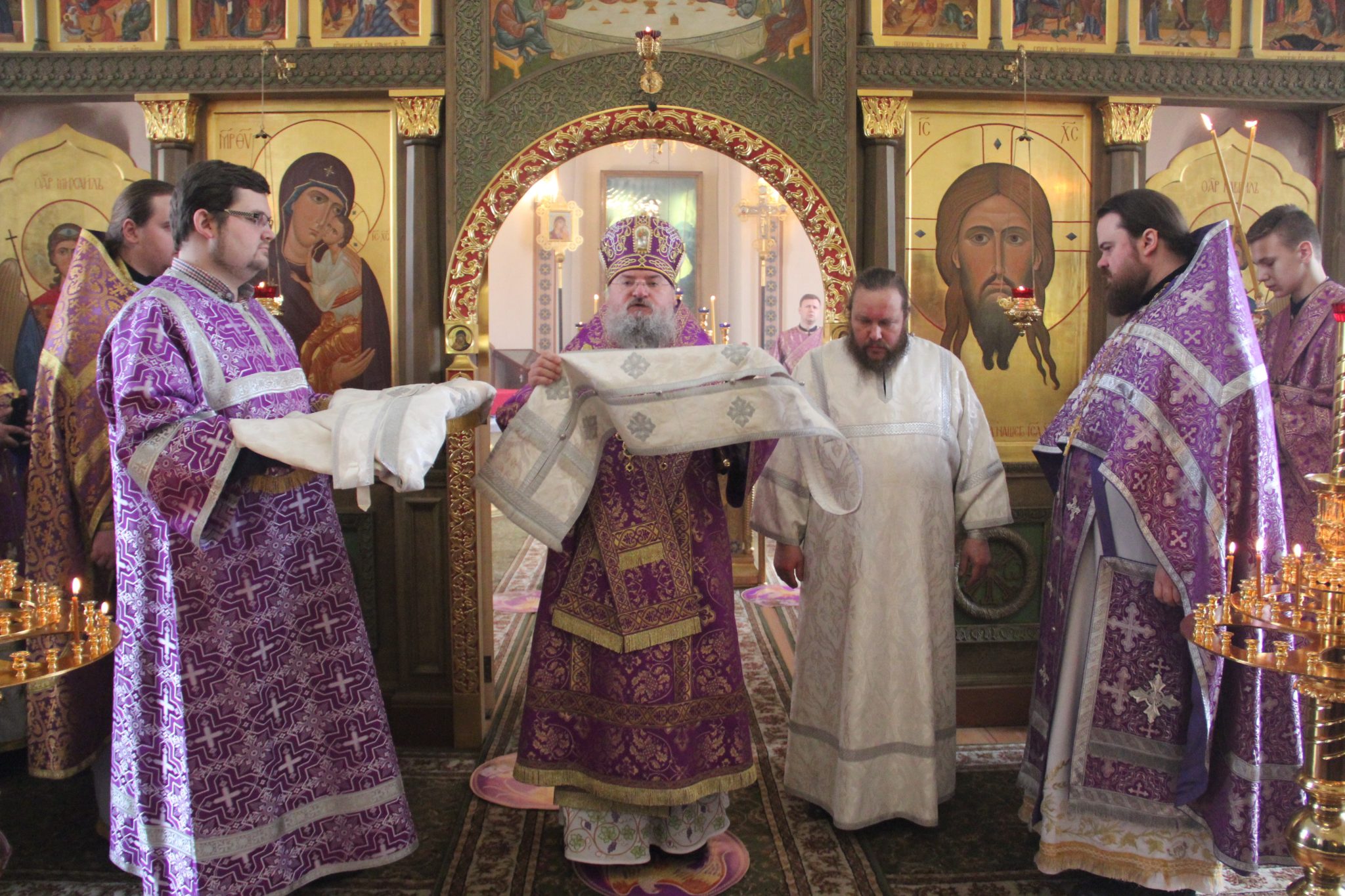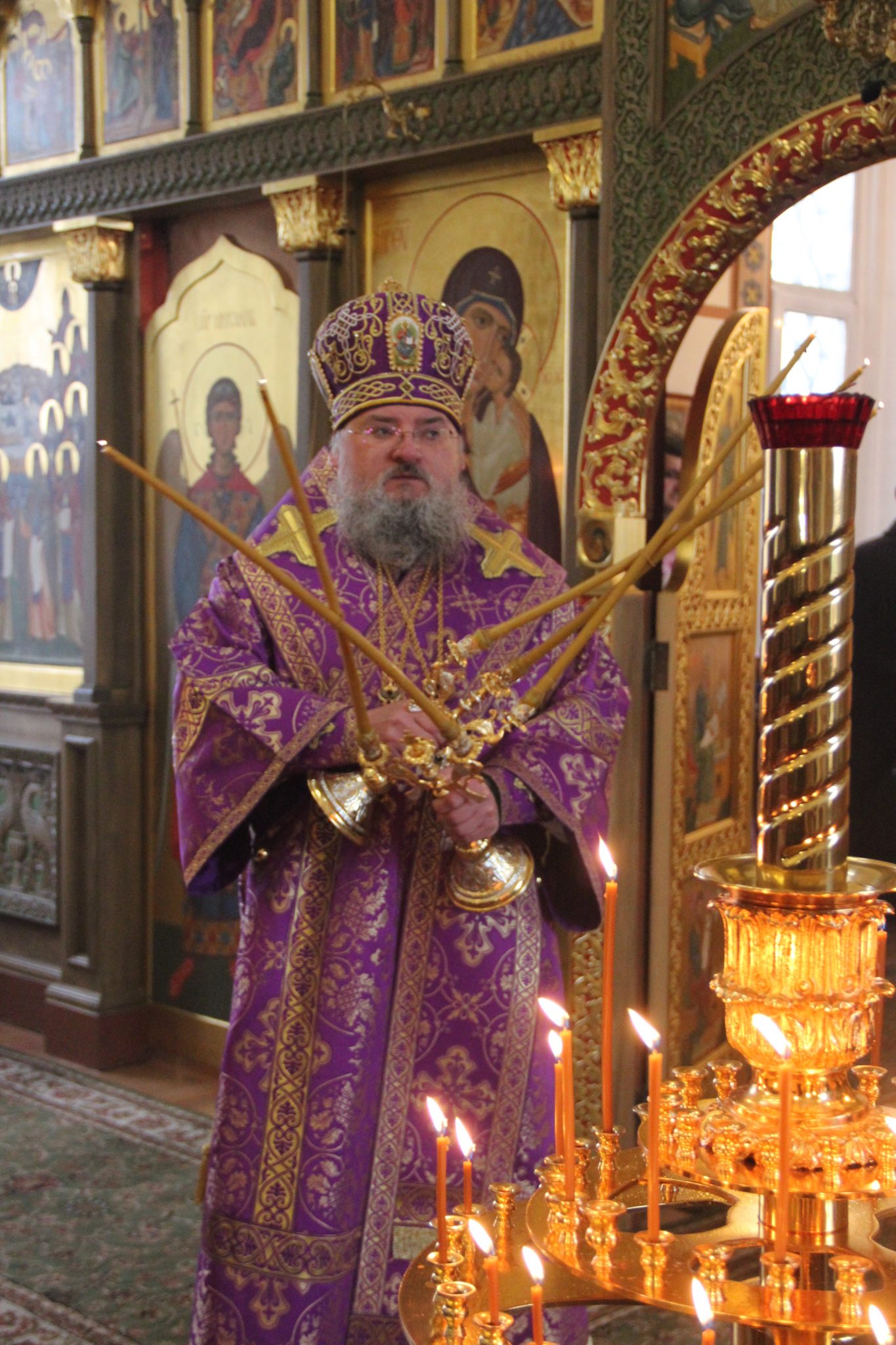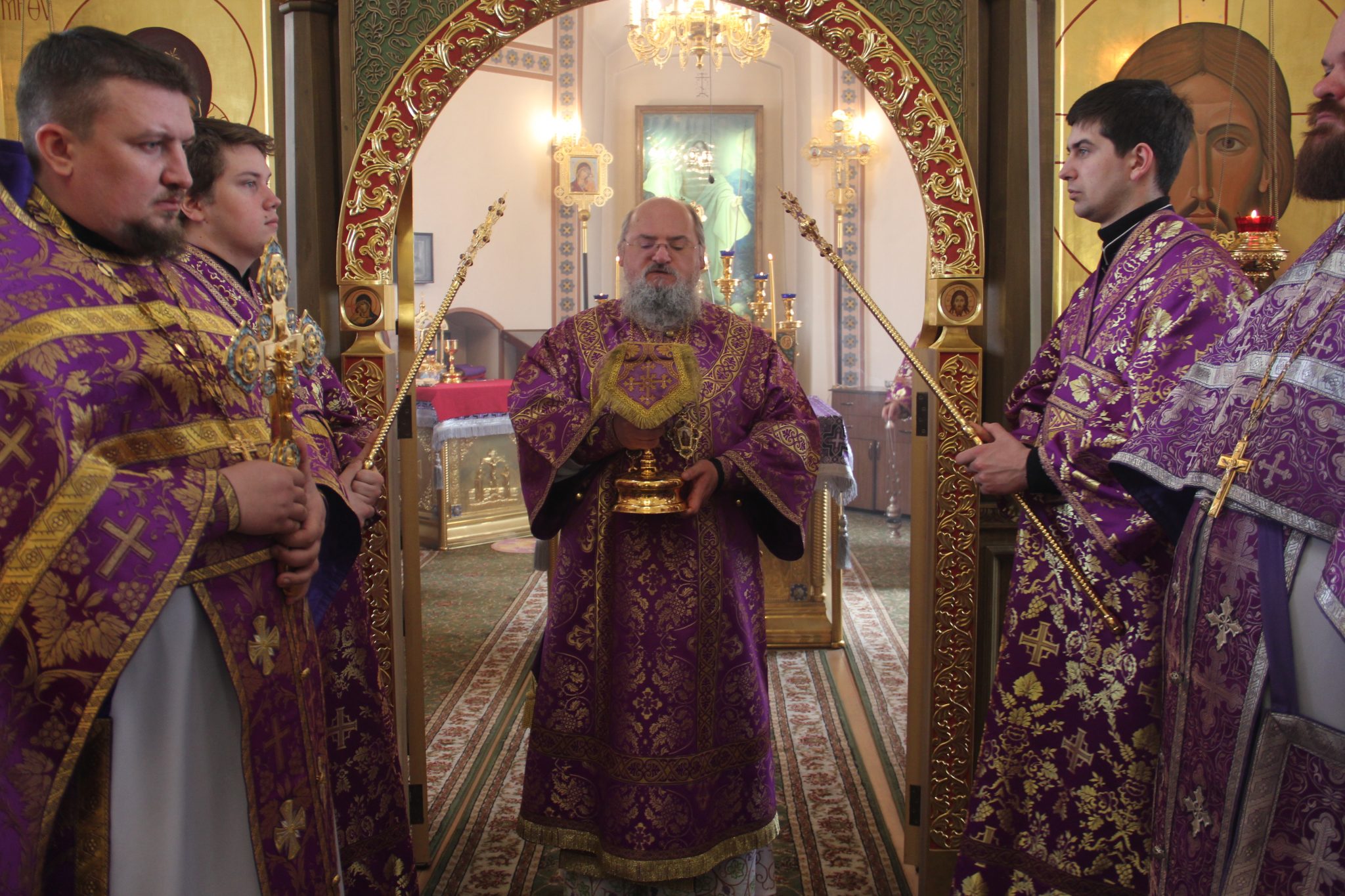 Его Преосвященству сослужили: протоиерей Сергий Сычев – настоятель храма, протоиерей Антоний Хатунцев, иерей Виктор Носов, диакон Евгений Ковригин и иеродиакон Виталий (Павленко).