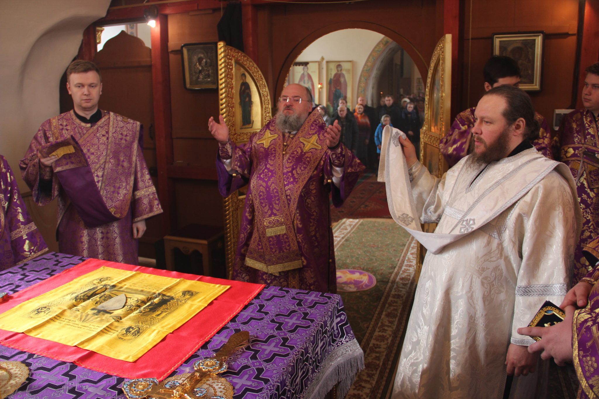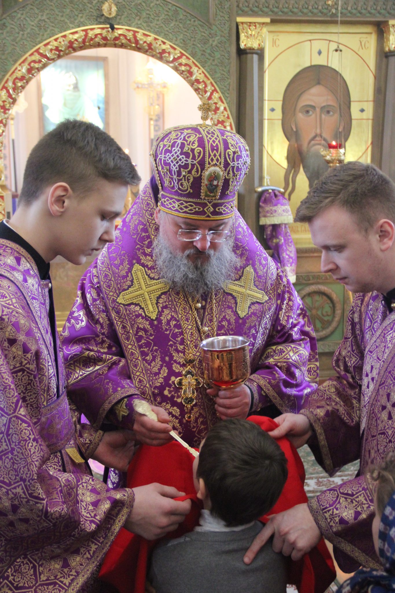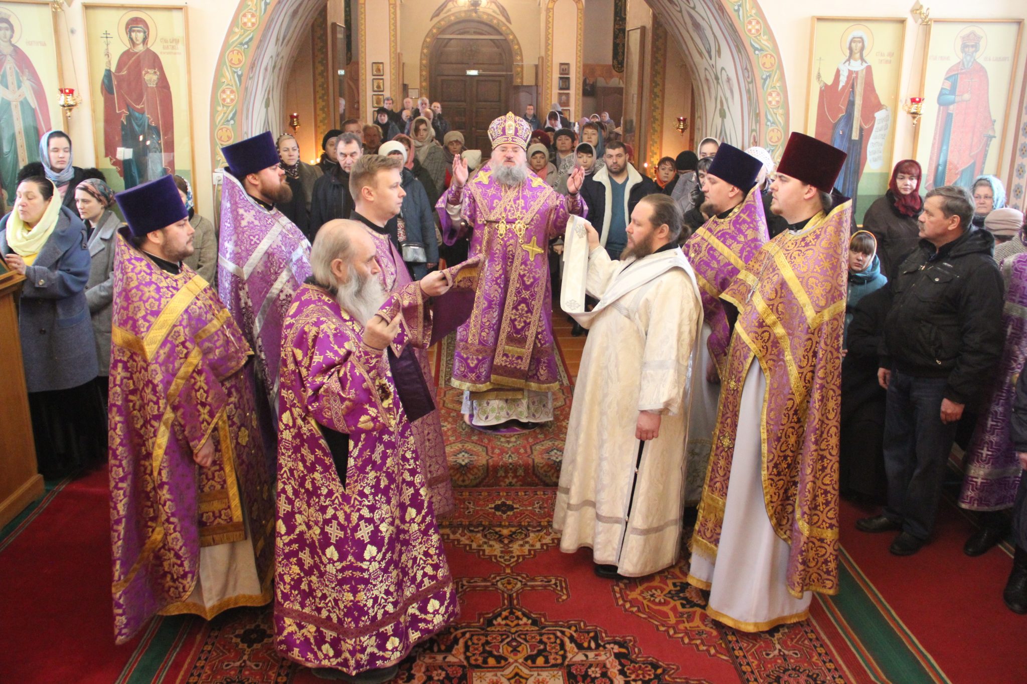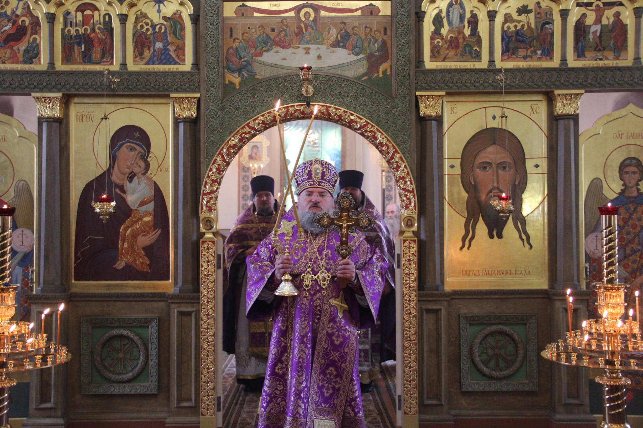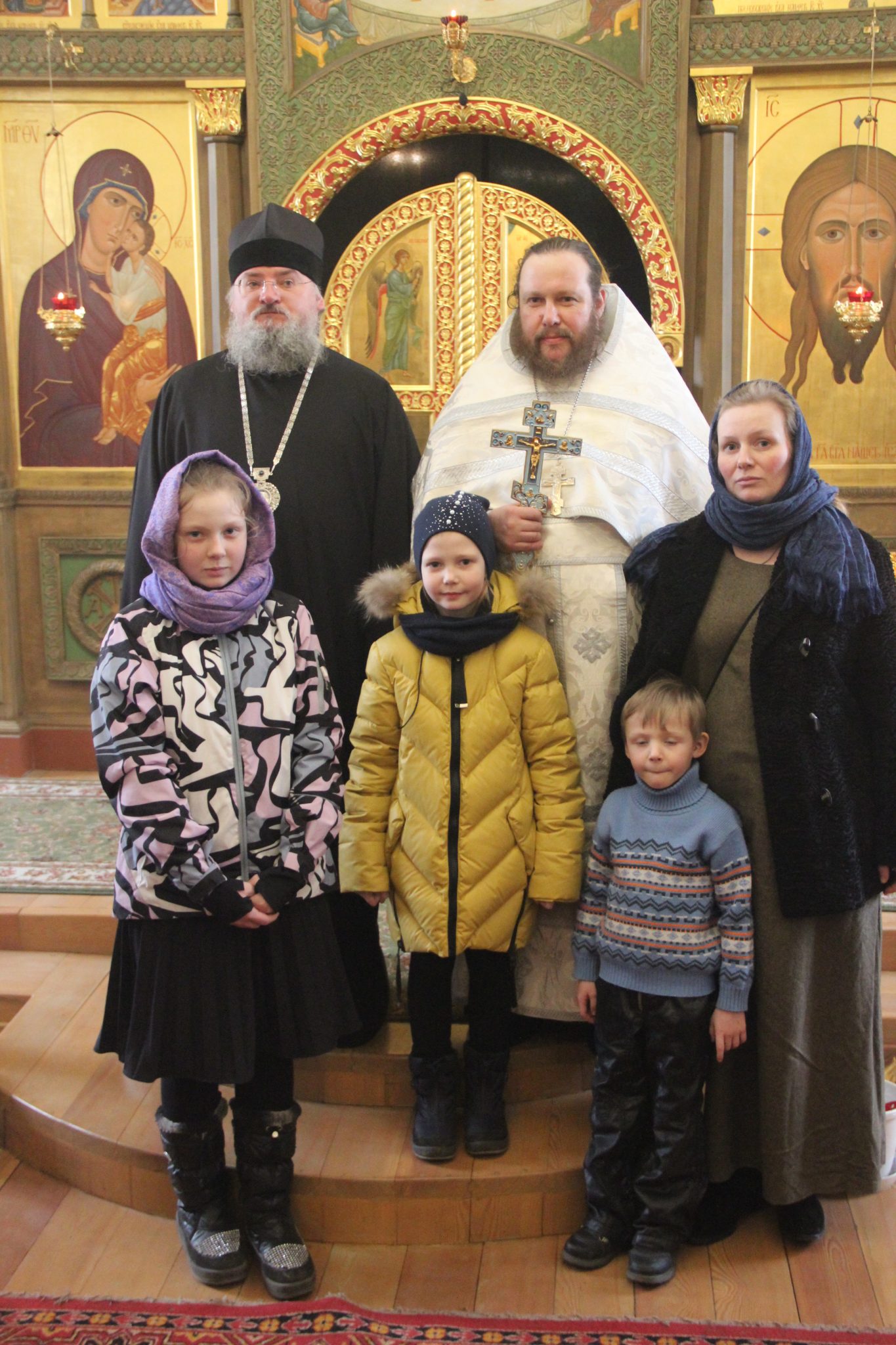 Его Преосвященству сослужили: протоиерей Сергий Сычев – настоятель храма, протоиерей Антоний Хатунцев, иерей Виктор Носов, диакон Евгений Ковригин и иеродиакон Виталий (Павленко).
