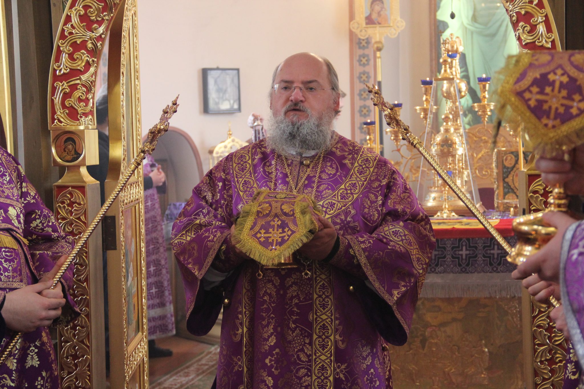 В конце богослужения владыка Никита поздравил верующих с воскресным днем и произнес проповедь.