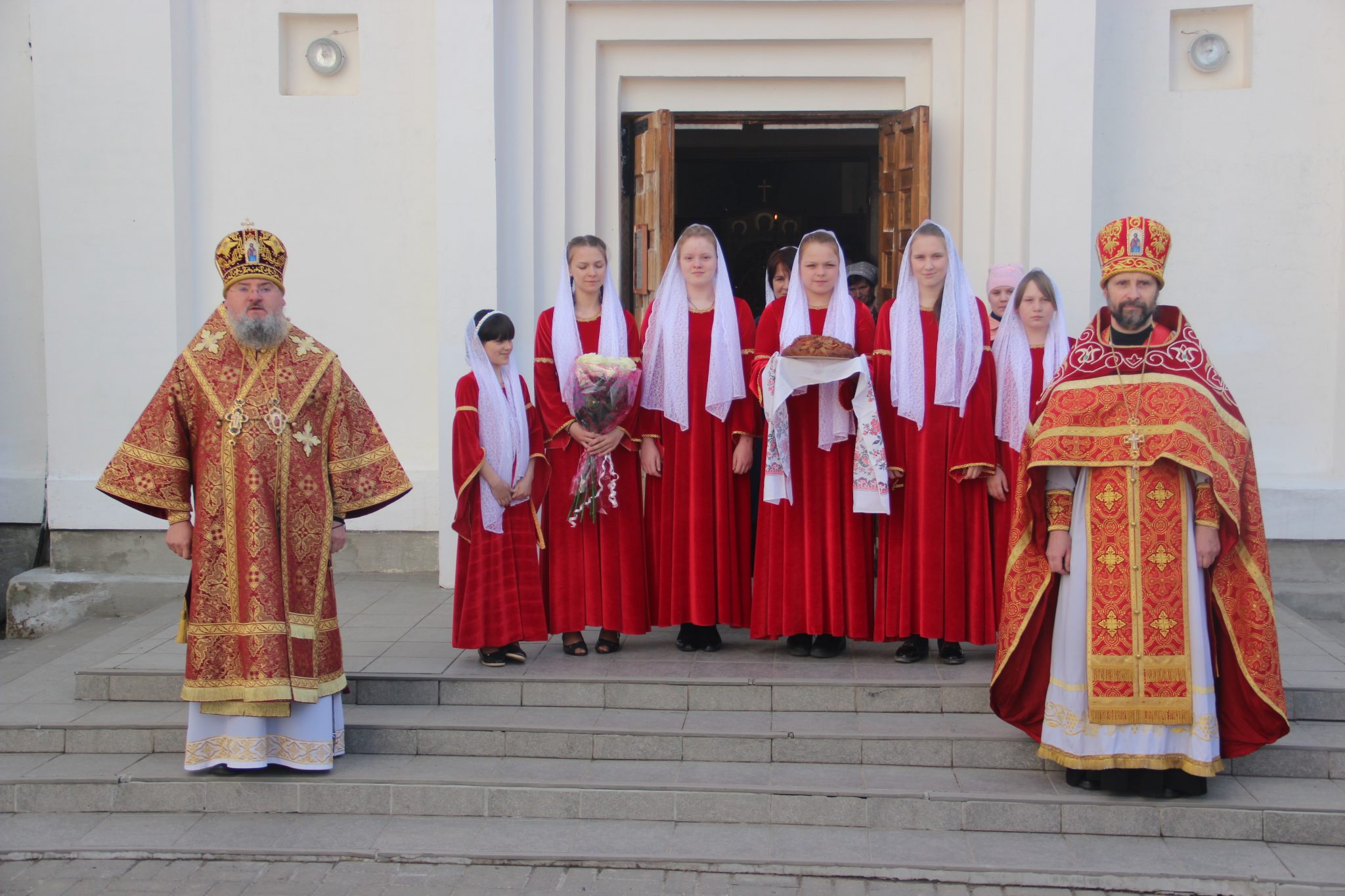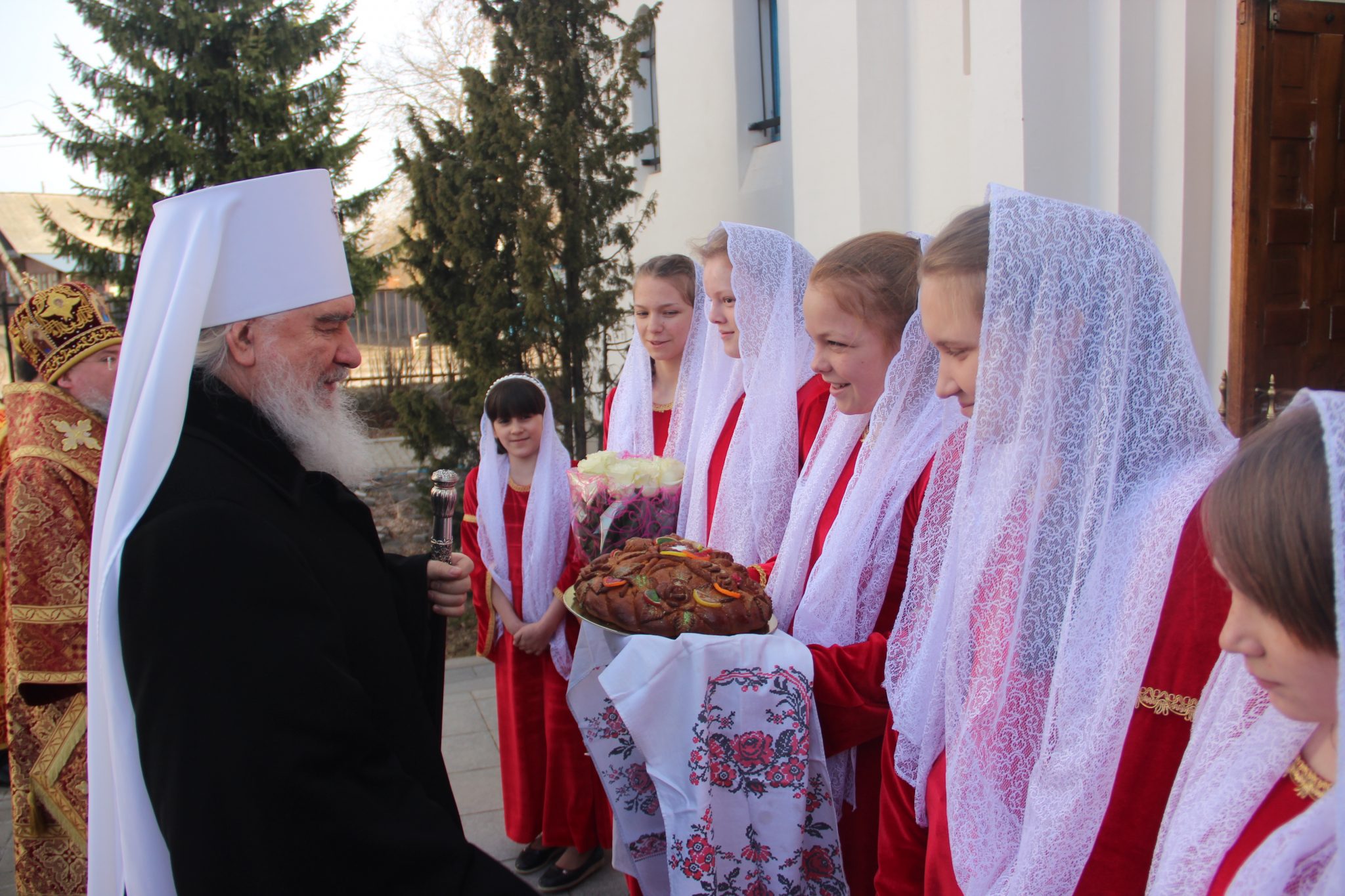 Владыка Никита также обратился со словами поздравления и благодарности к отцу Константину, отметившему в начале марта тридцатилетие иерейской хиротонии, и преподнес ему памятный наперстный крест с украшениями и букет цветов.