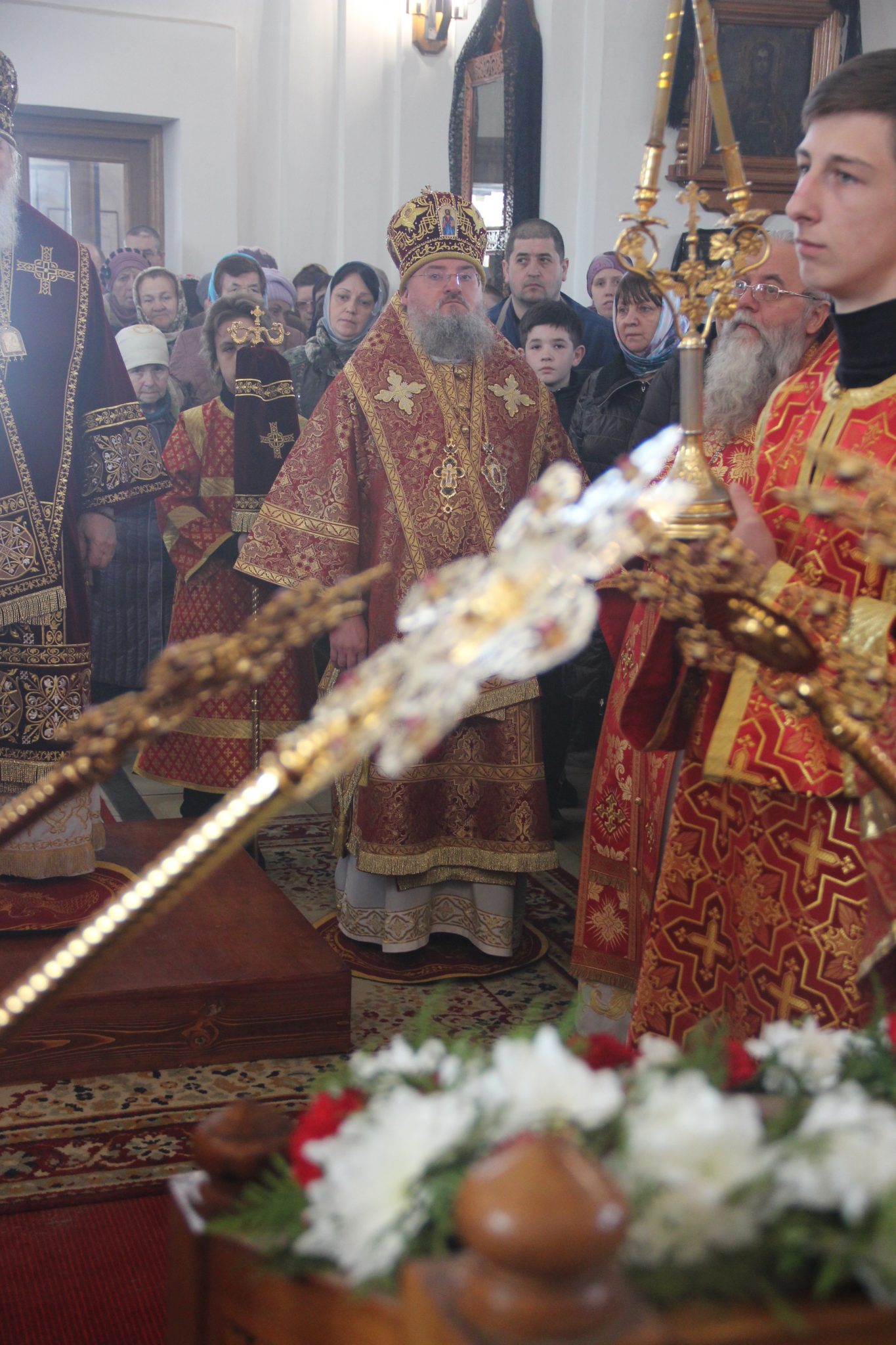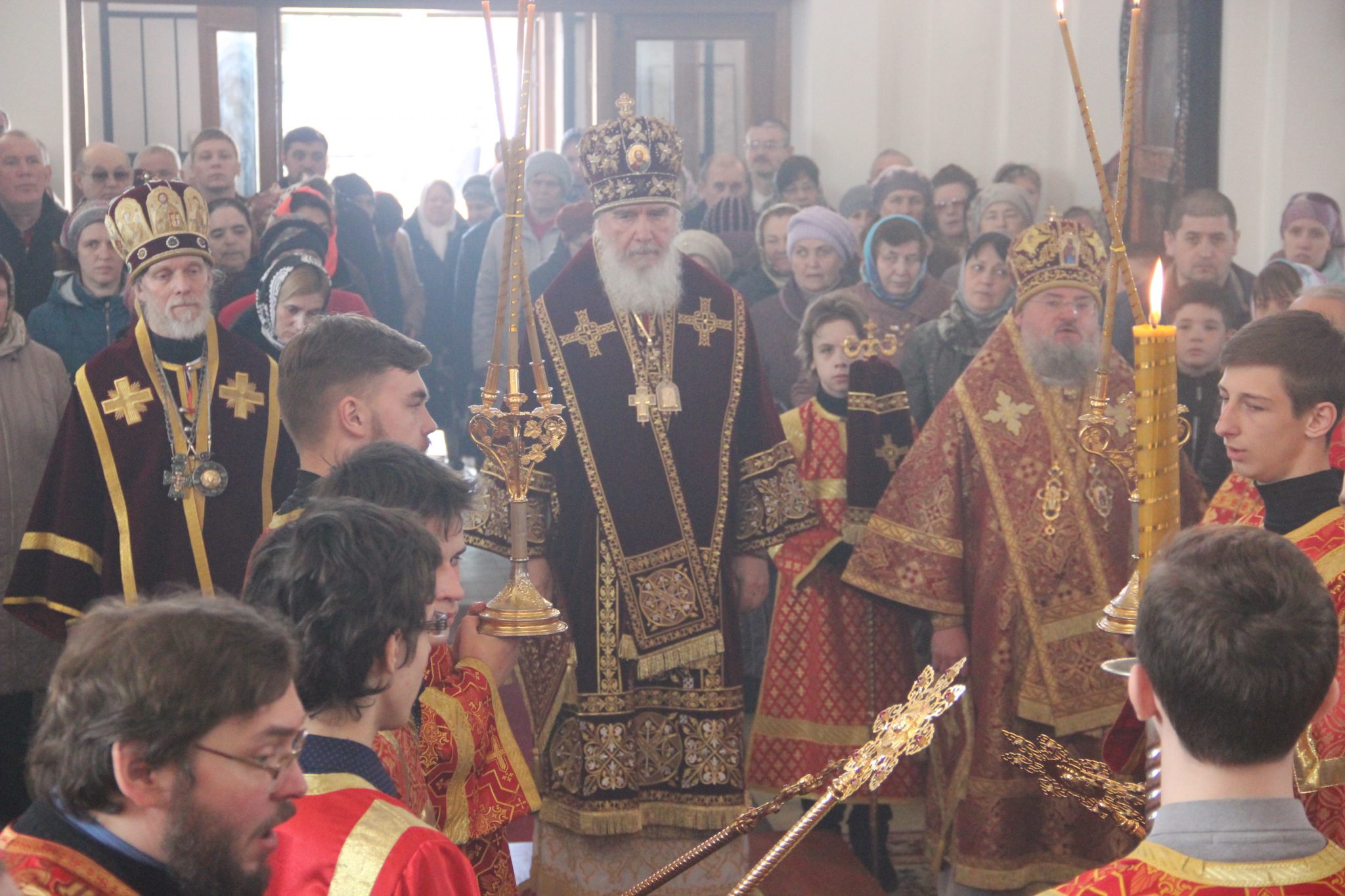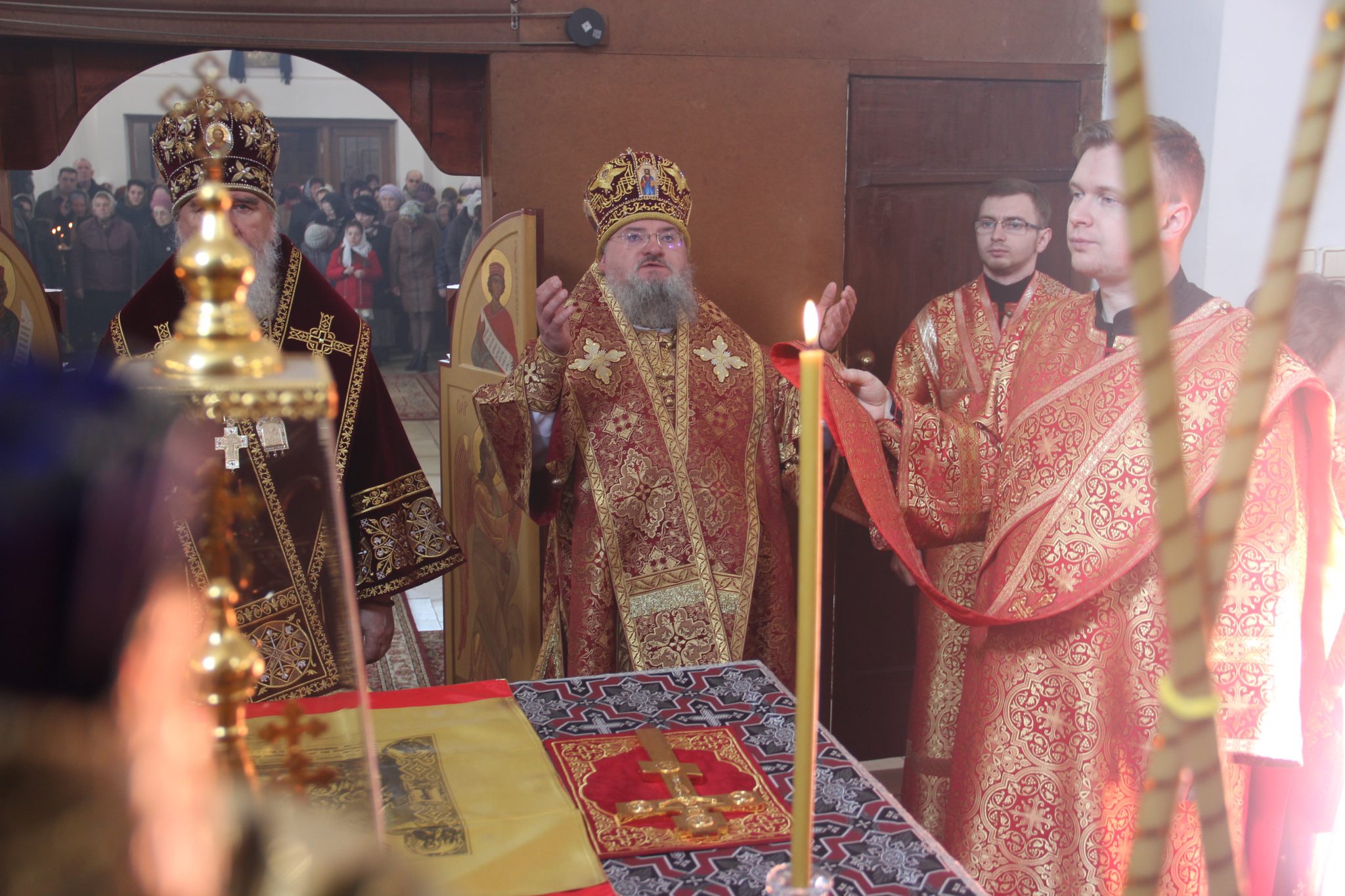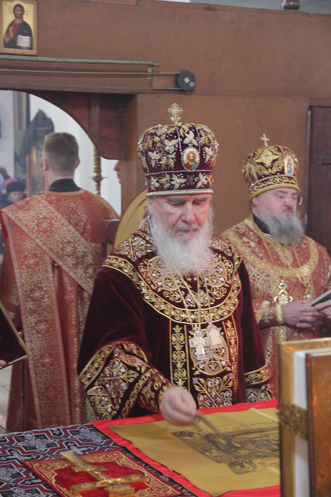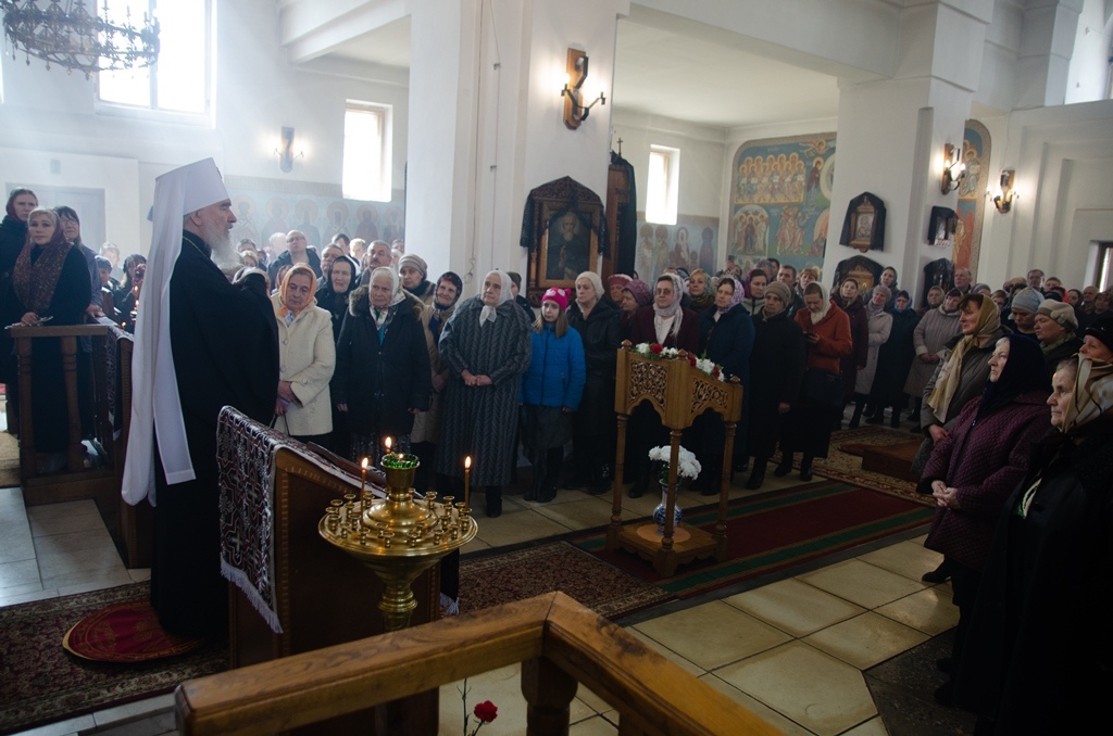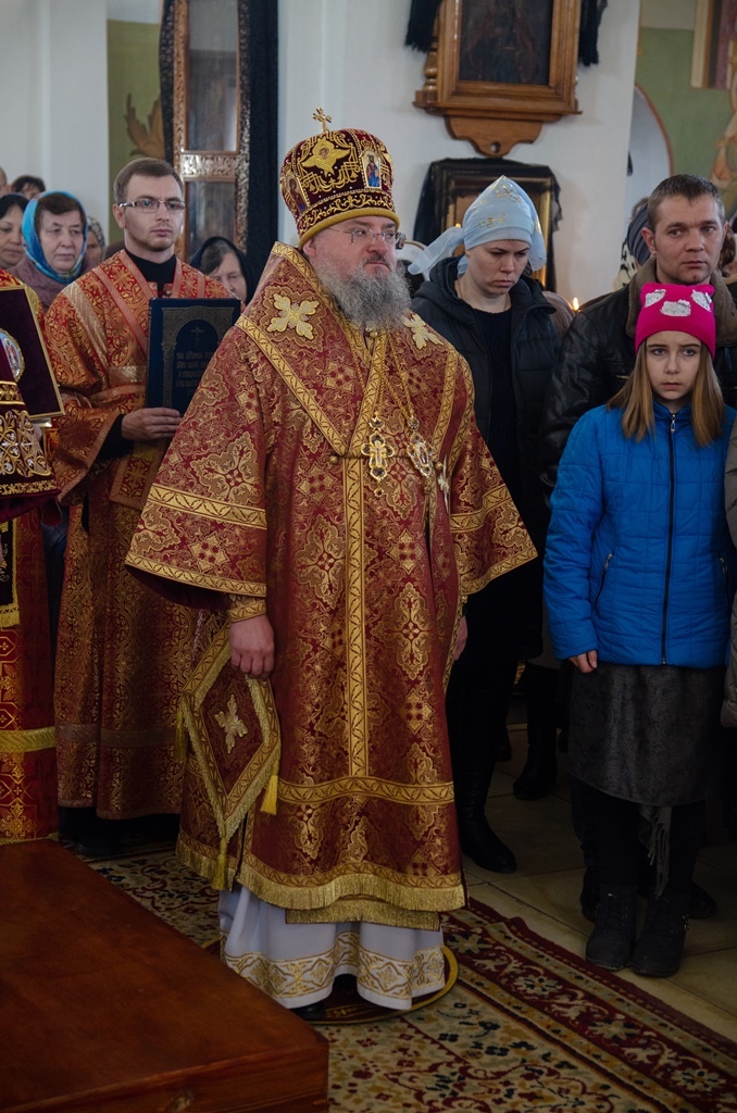 На сугубой ектенье были произнесены особые прошения «о единстве Святого Православия», после чего глава Калужской митрополии вознес молитву о мире на Украине.