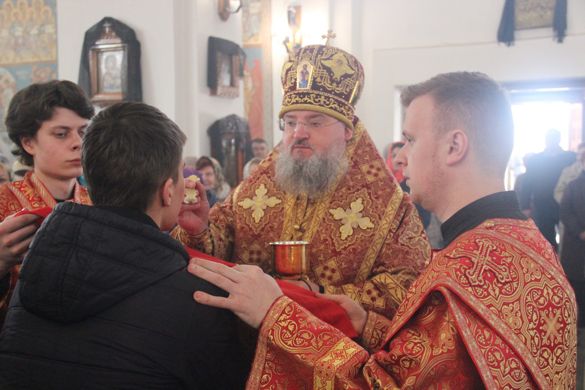 Проповедь перед причастием произнес иерей Алексий Ефименков, клирик Покровского храма города Жиздры.