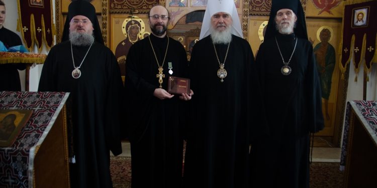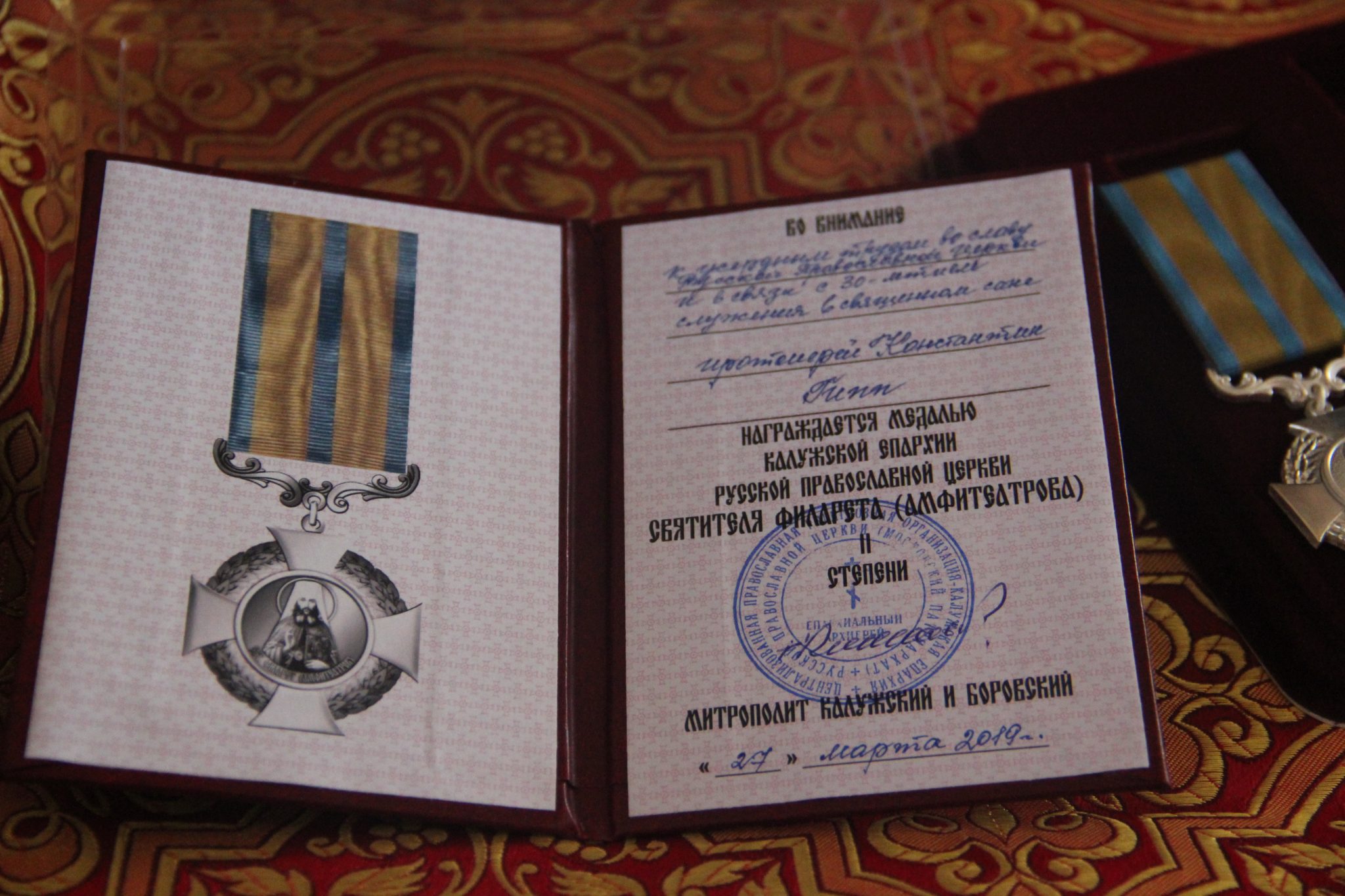 Митрополит Климент поздравил протоиерея Константина Гиппа с 30-ти летием иерейской хиротонии и вручил медаль святителя Филарета (Амфитеатрова) II степени.