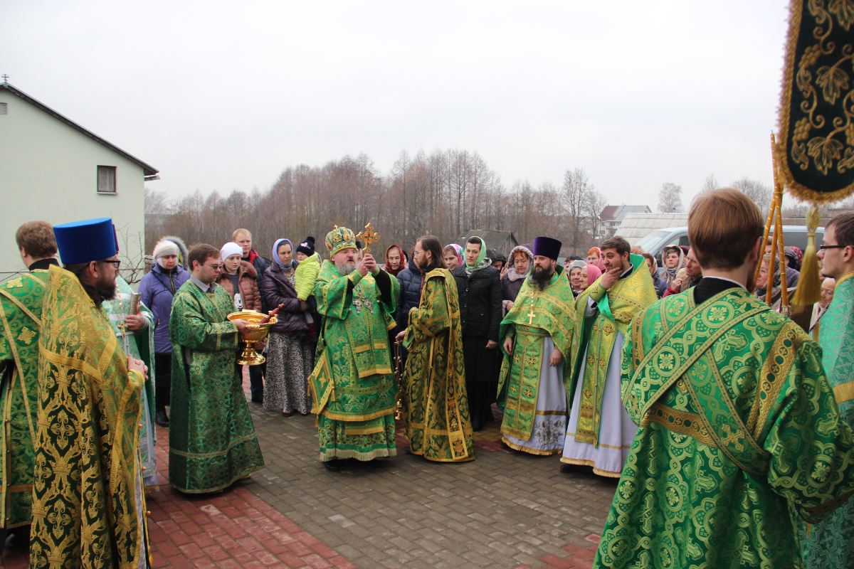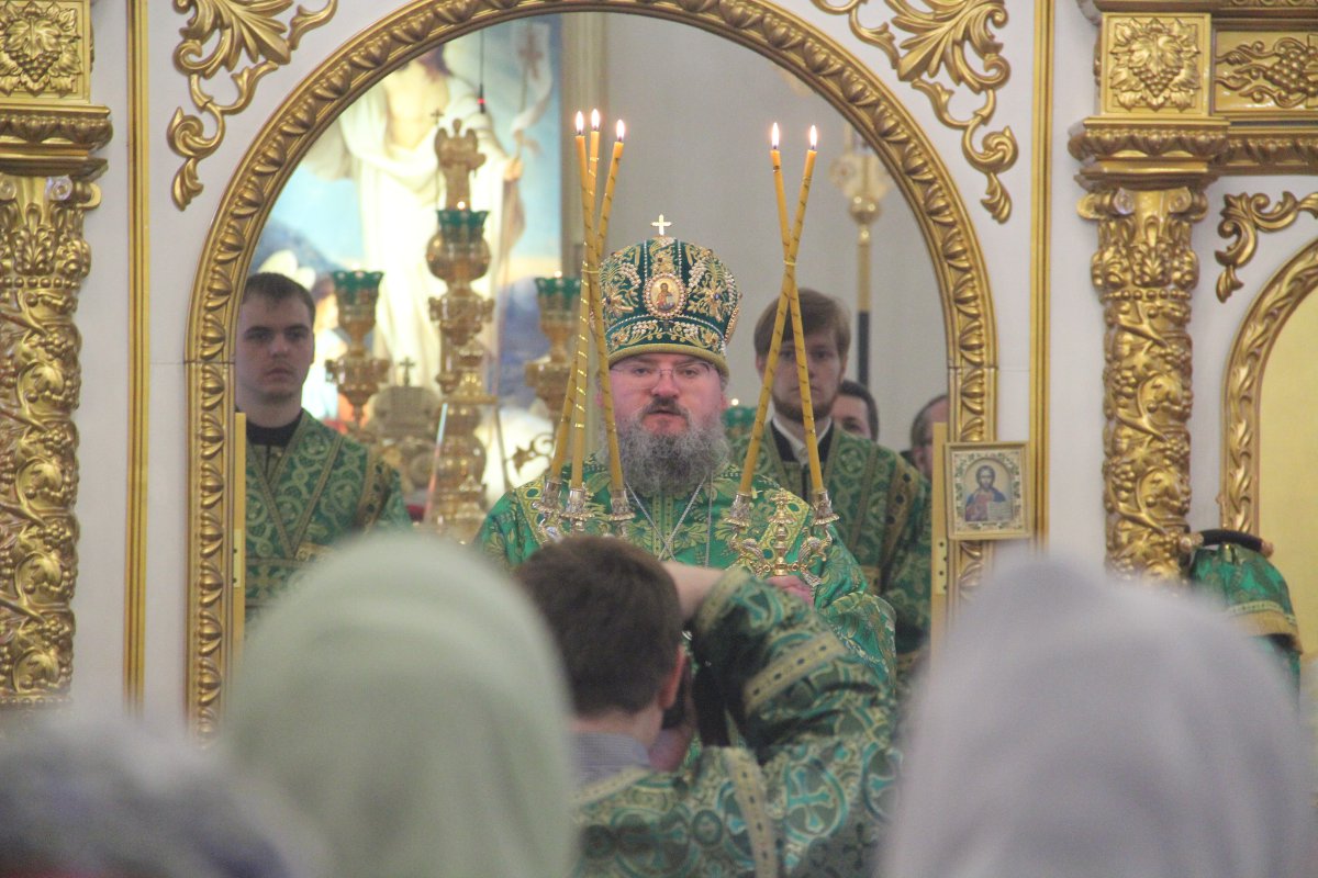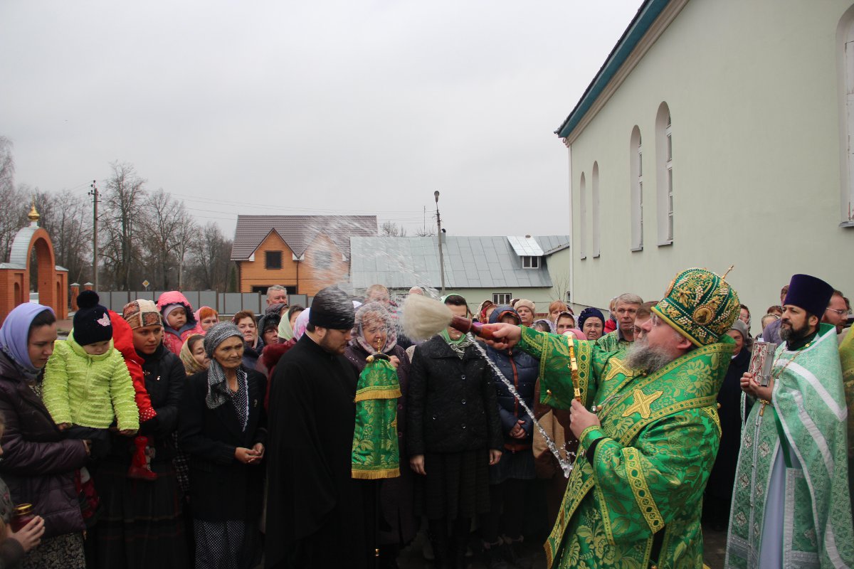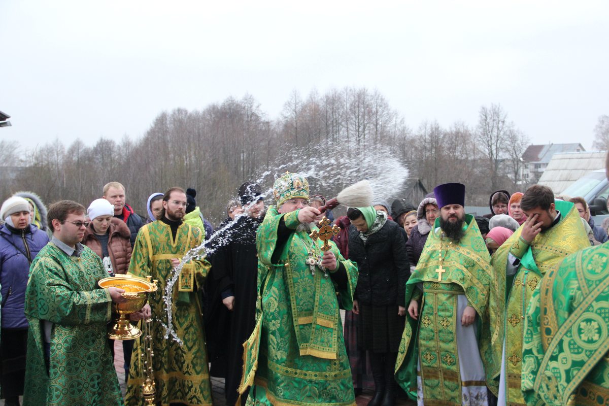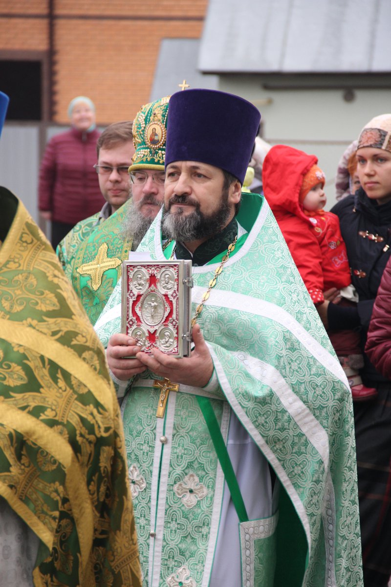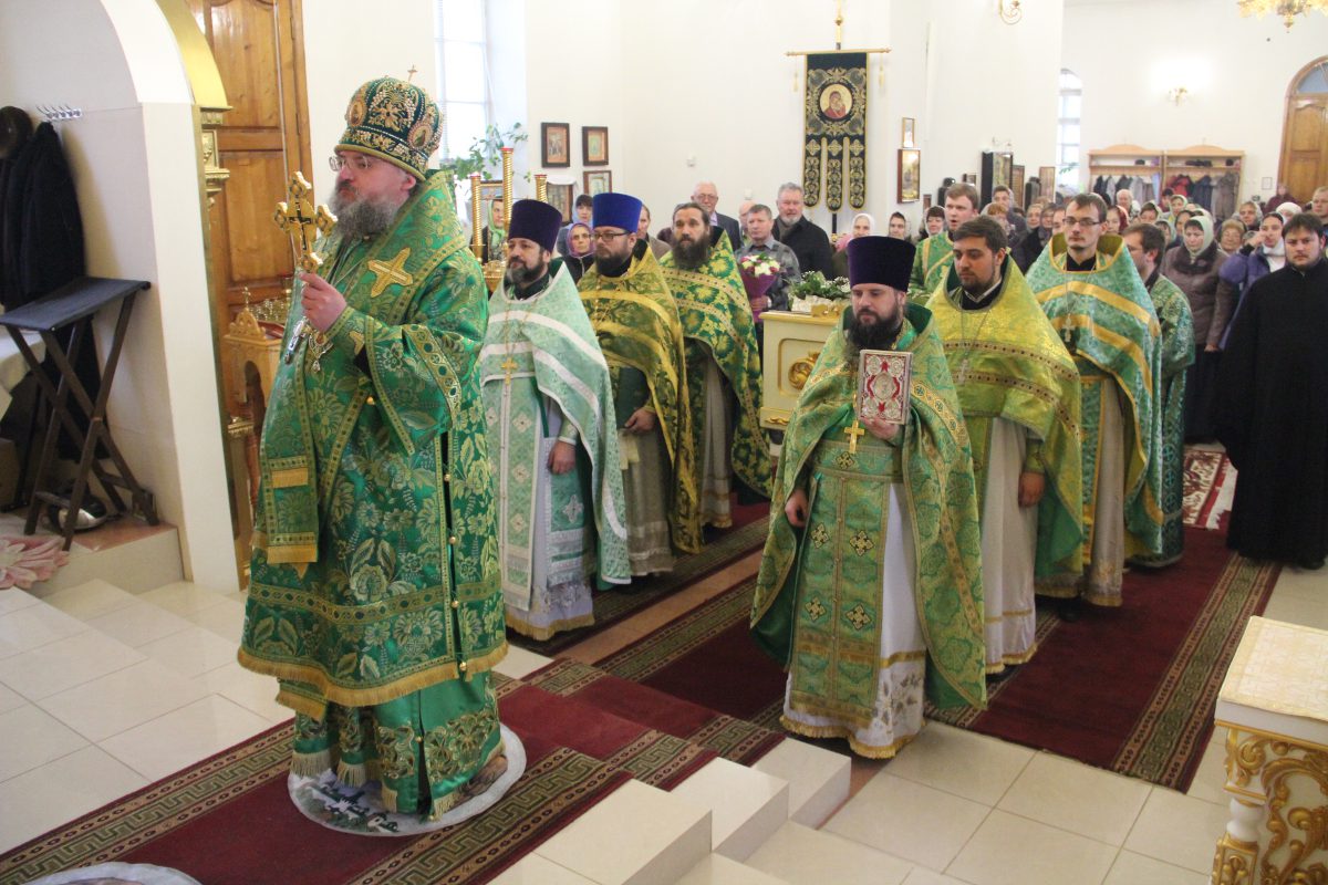 После отпуста литургии священнослужители совершили праздничный молебен и крестный ход вокруг храма, а затем владыка обратился к молящимся с проповедью.