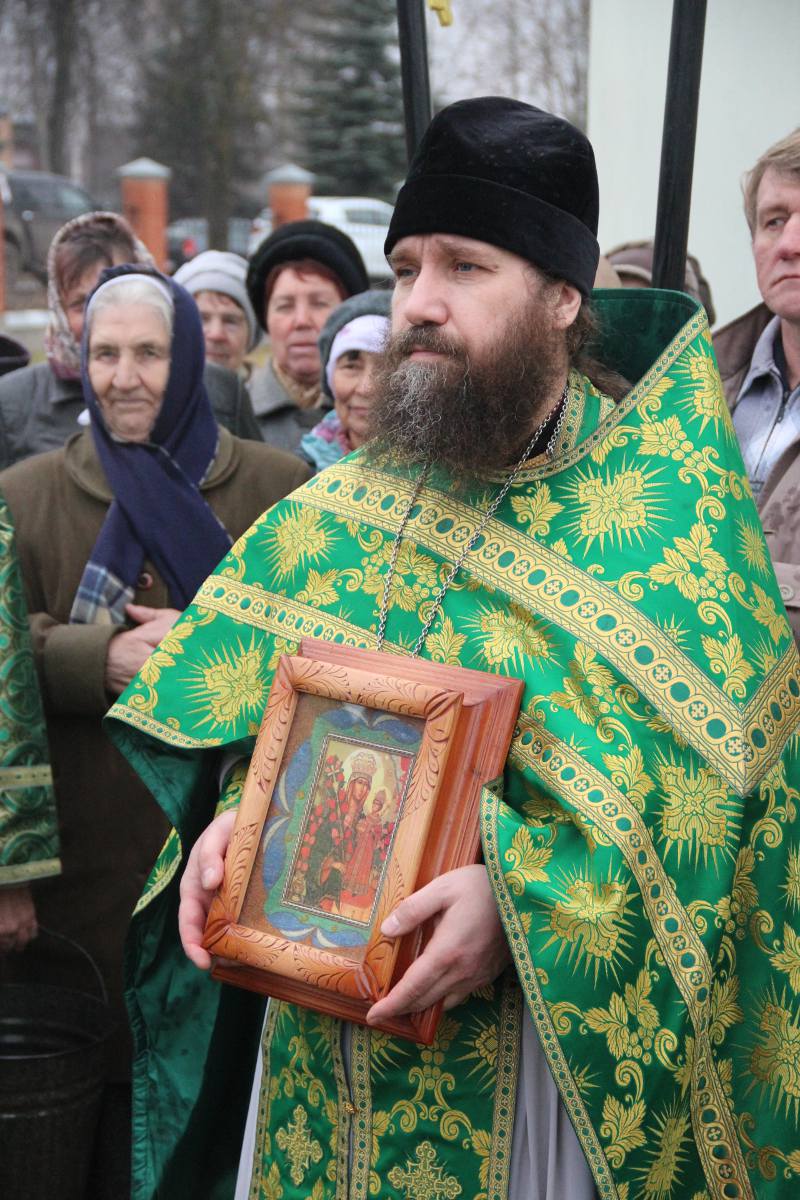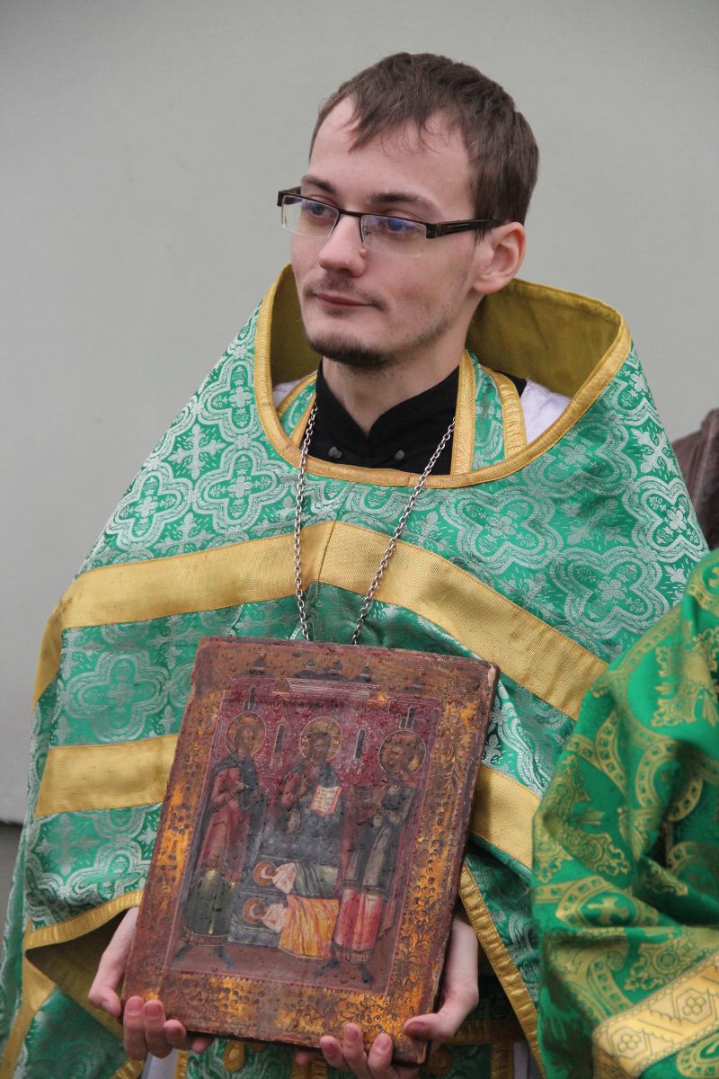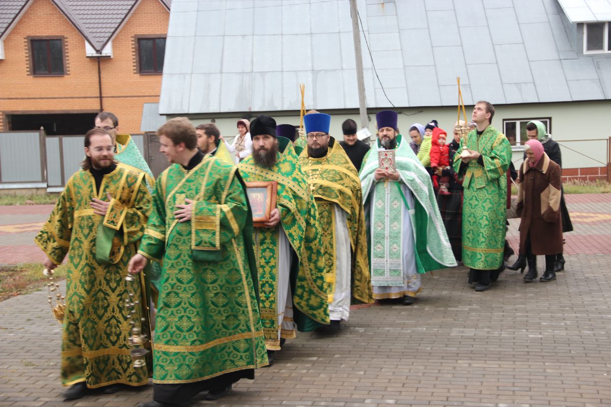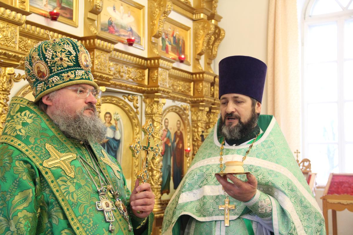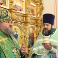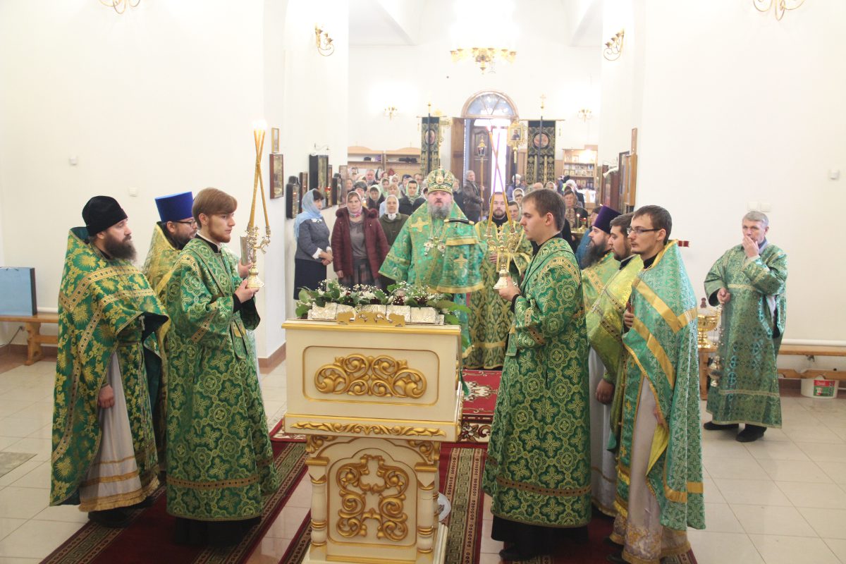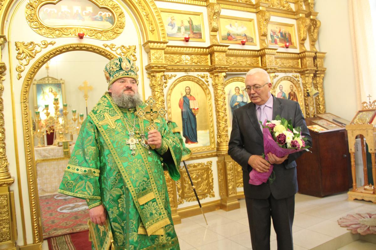 После отпуста литургии священнослужители совершили праздничный молебен и крестный ход вокруг храма, а затем владыка обратился к молящимся с проповедью.