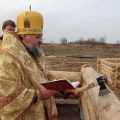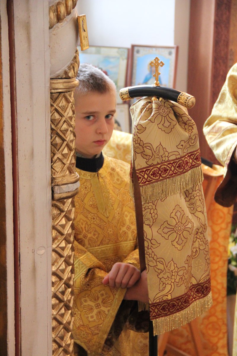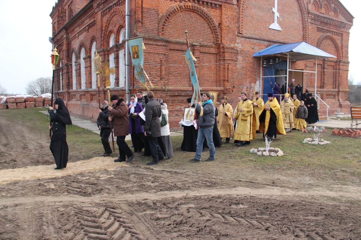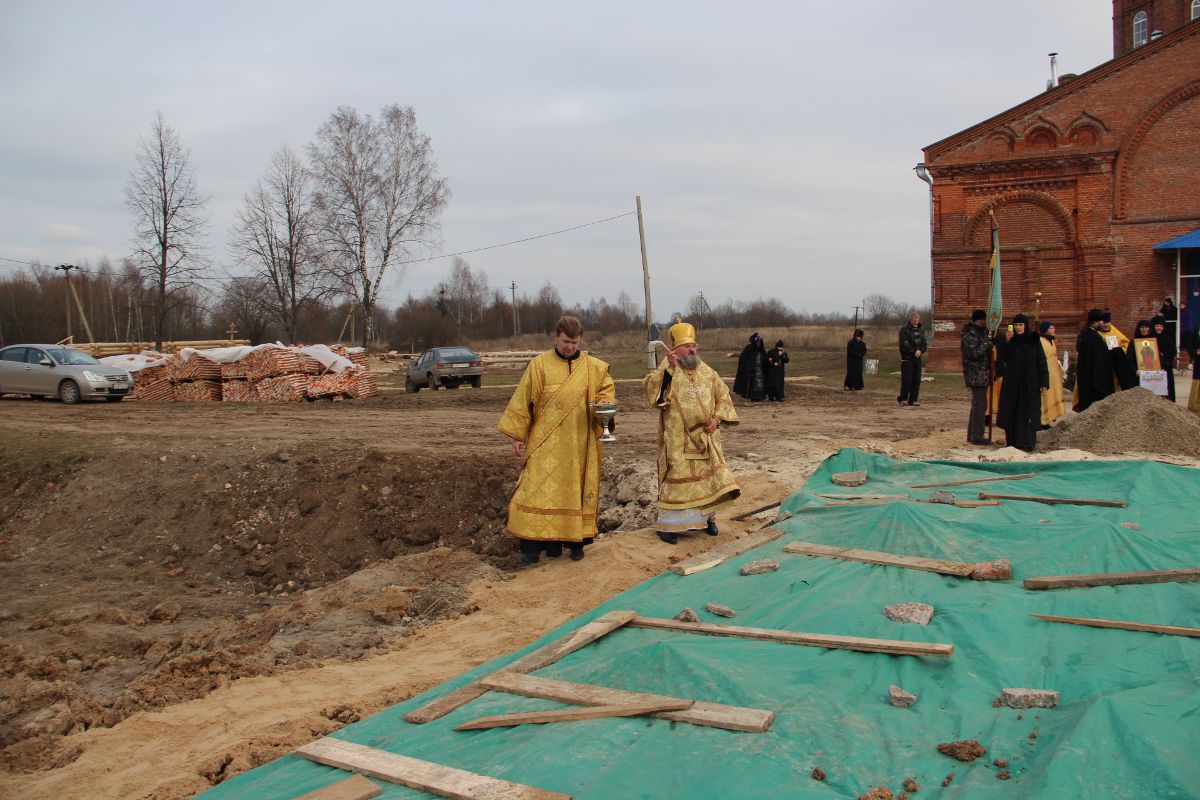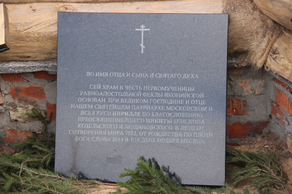Его Преосвященству сослужили: иерей Антоний Хатунцев, иерей Антоний Лунин – директор Козельской православной гимназии и диакон Евгений Ковригин – заведующий канцелярией епархии. После отпуста литургии состоялся крестный ход и последование основания храма в честь святой первомученицы равноапостольной Феклы, а также освящение фундамента будущей колокольни. По завершении богослужения архипастырь обратился к молящимся со словом назидания.