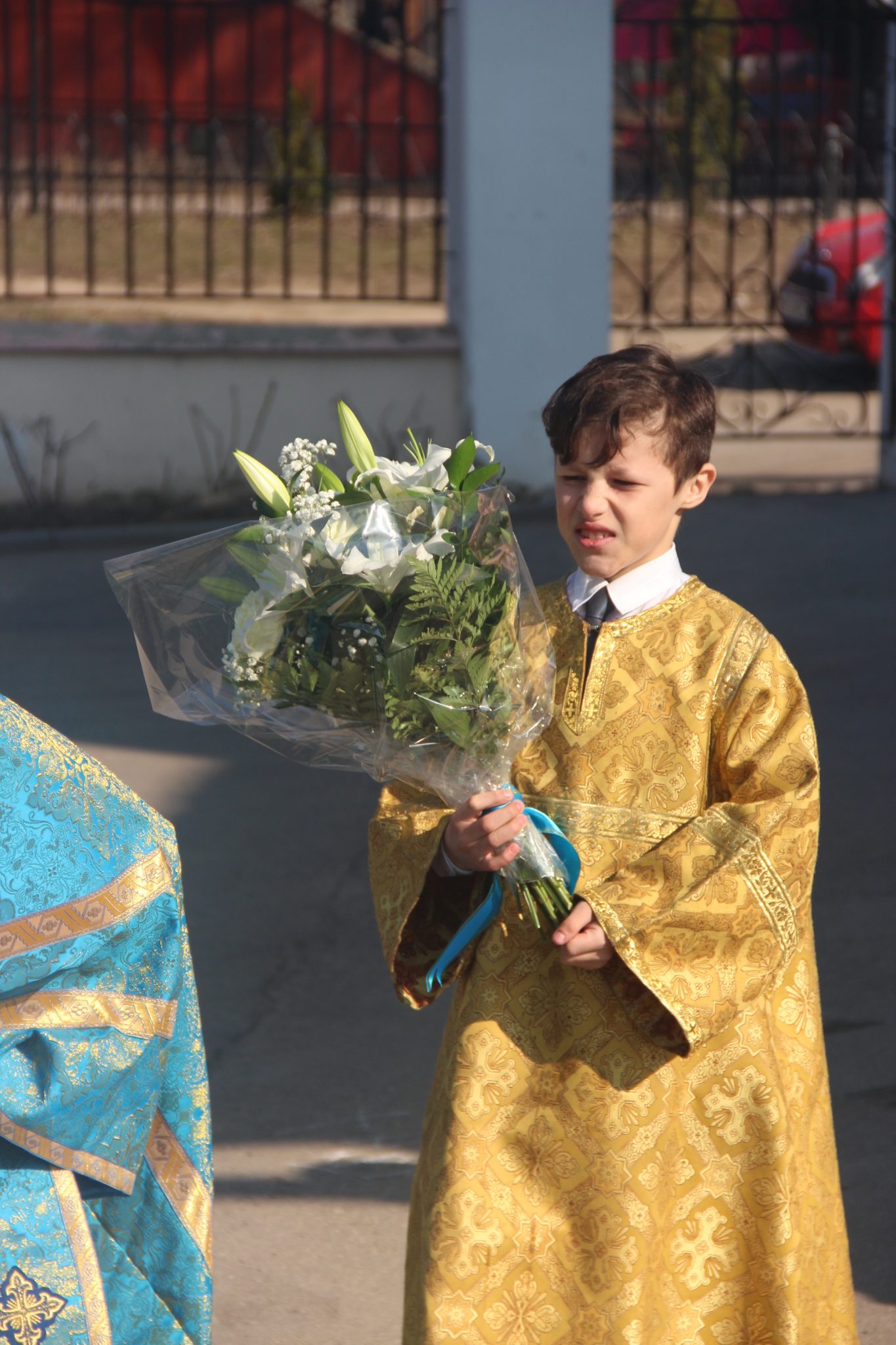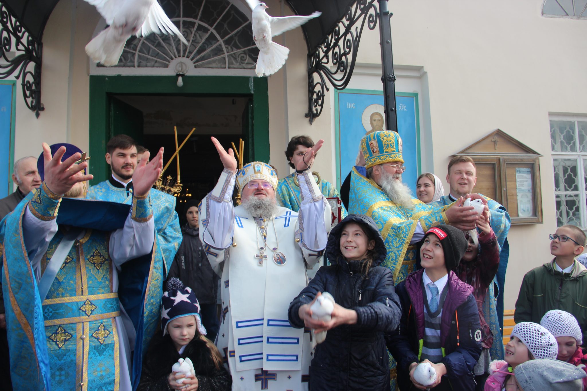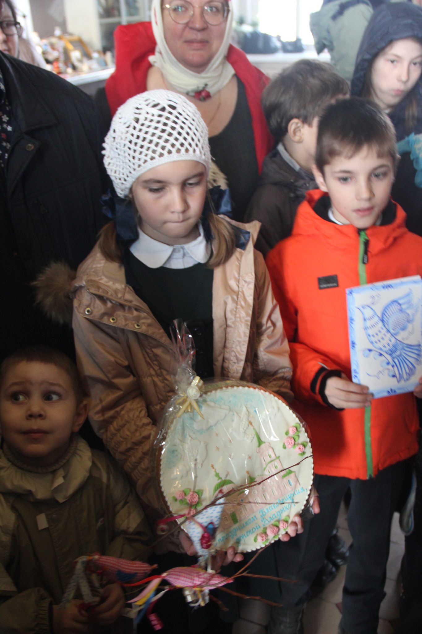 Воспитанники воскресной школы храма поздравили владыку с престольным праздником и преподнесли ему, изготовленные своими руками, поделки.