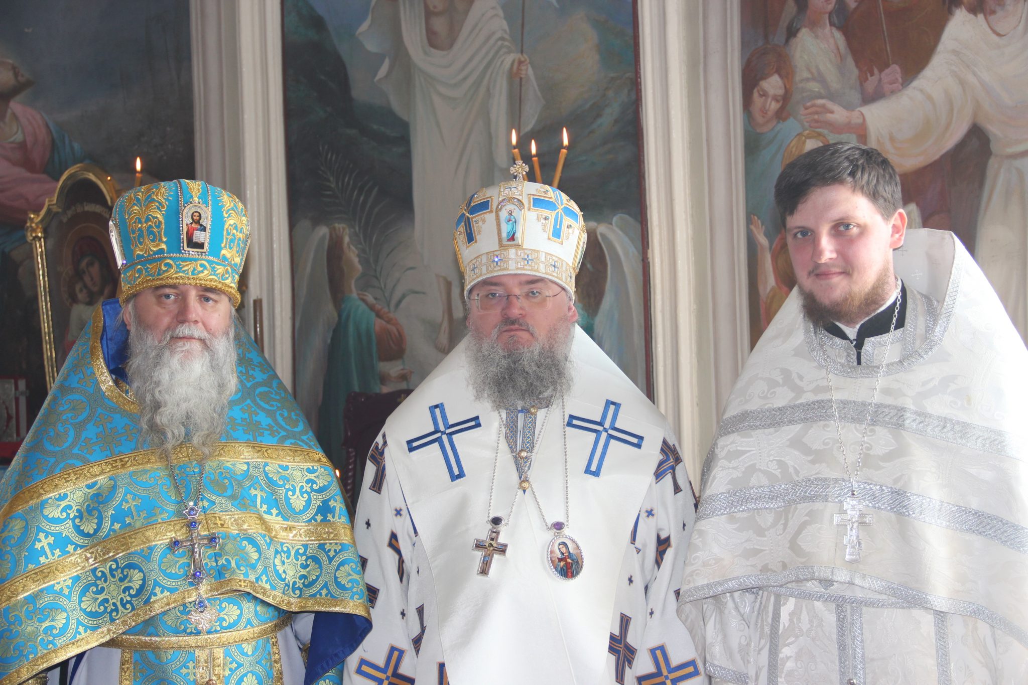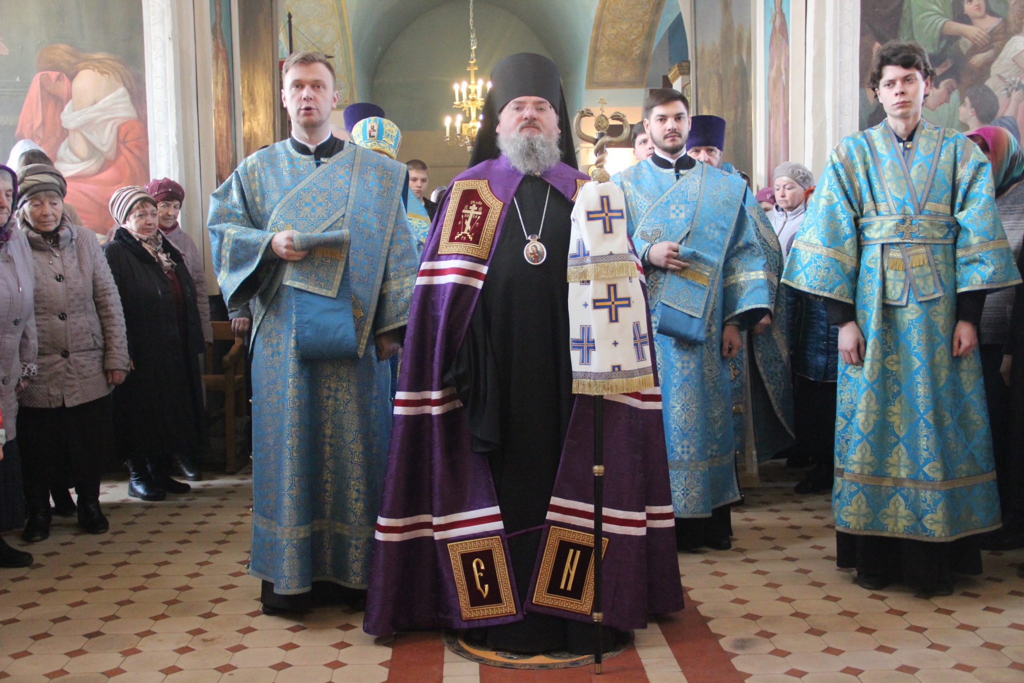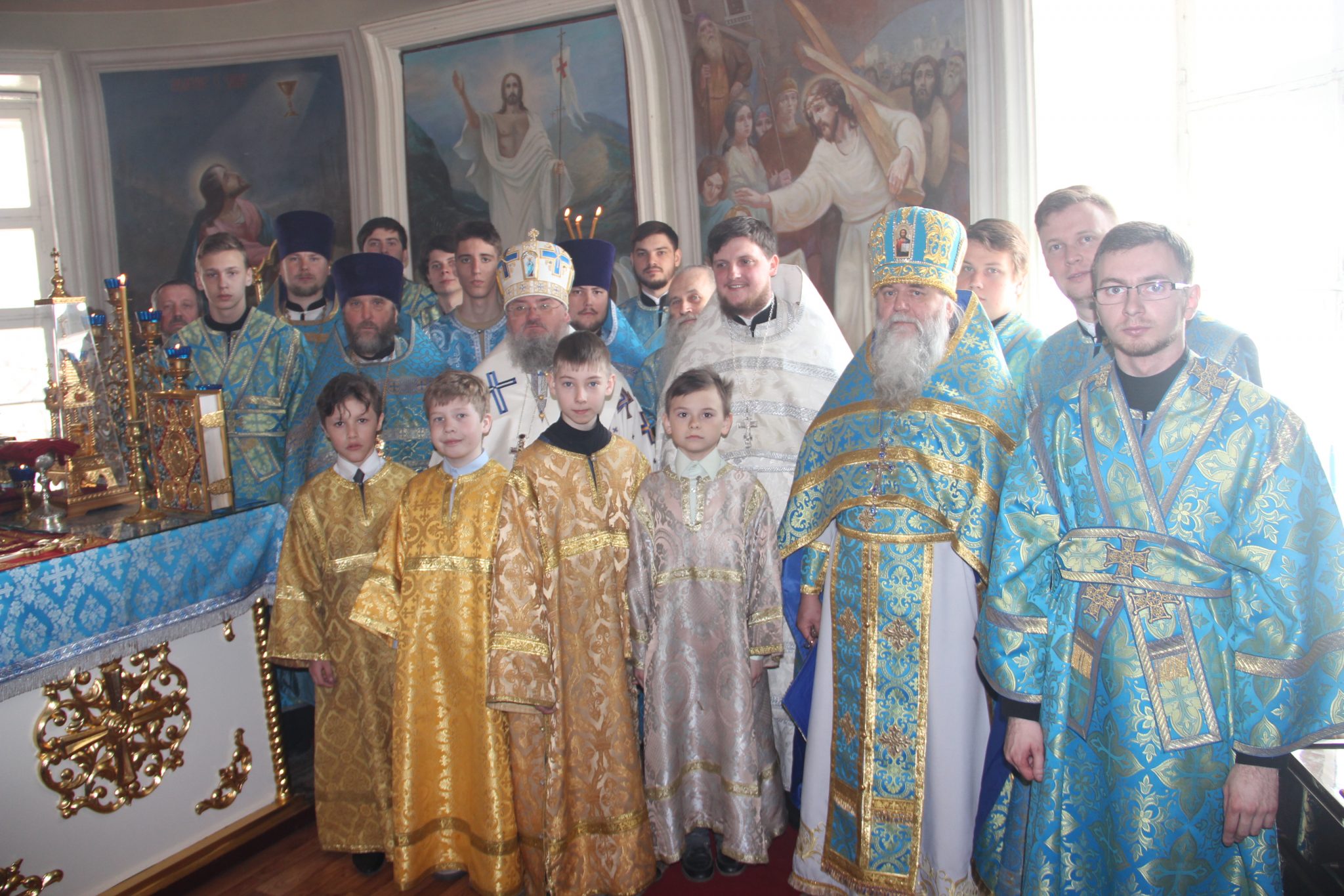 Архипастырю сослужили: духовник епархии митрофорный протоиерей Алексий Жиганов – настоятель кафедрального собора Казанской иконы Божией Матери в городе Людиново, протоиерей Павел Морозов, протоиерей Антоний Хатунцев, иерей Сергий Барыкин – настоятель храма.