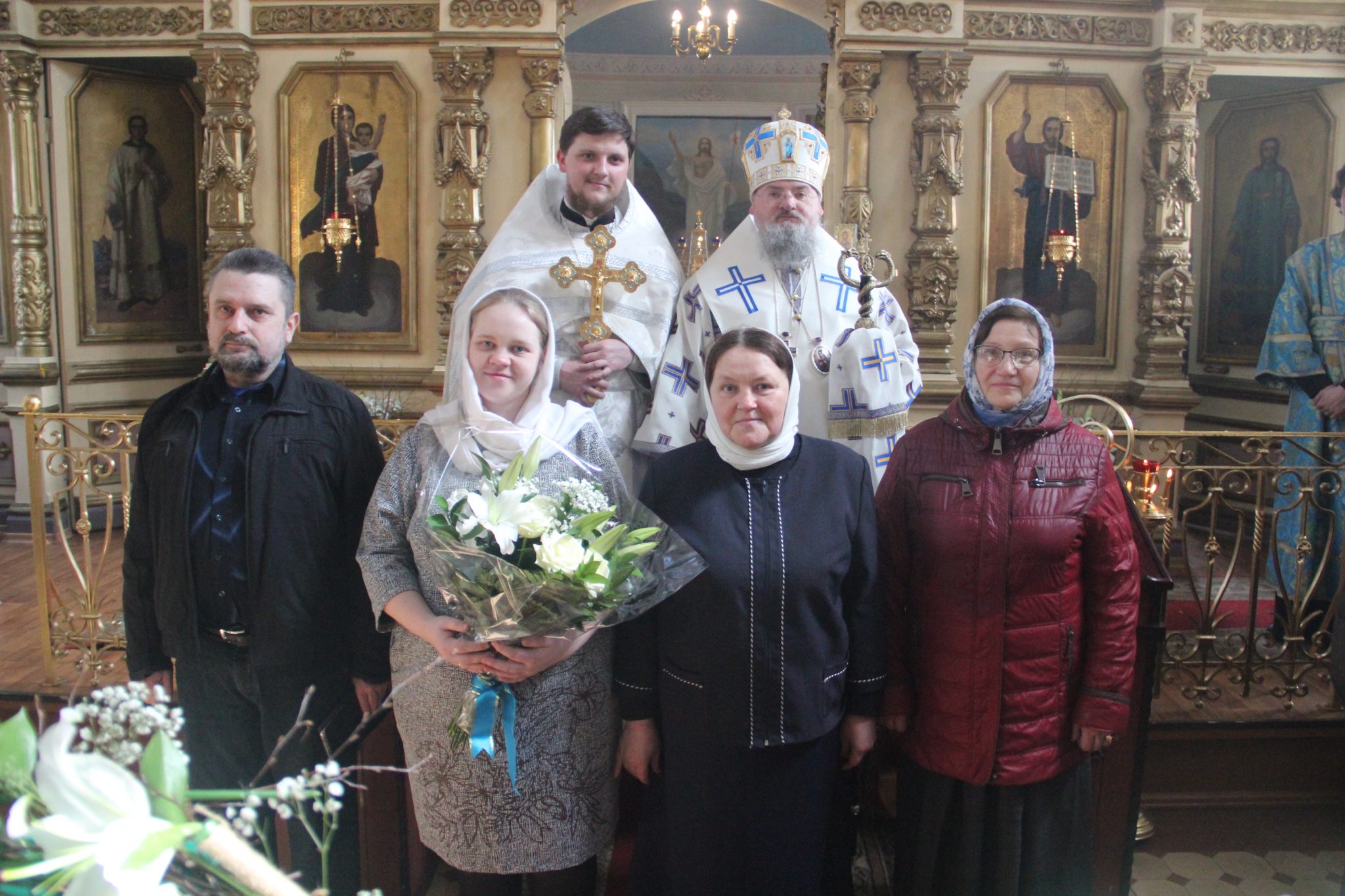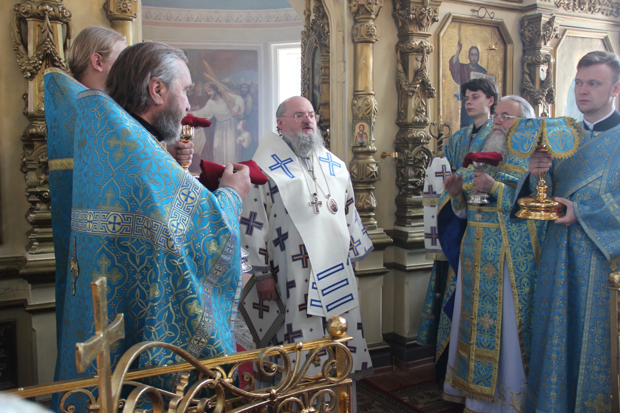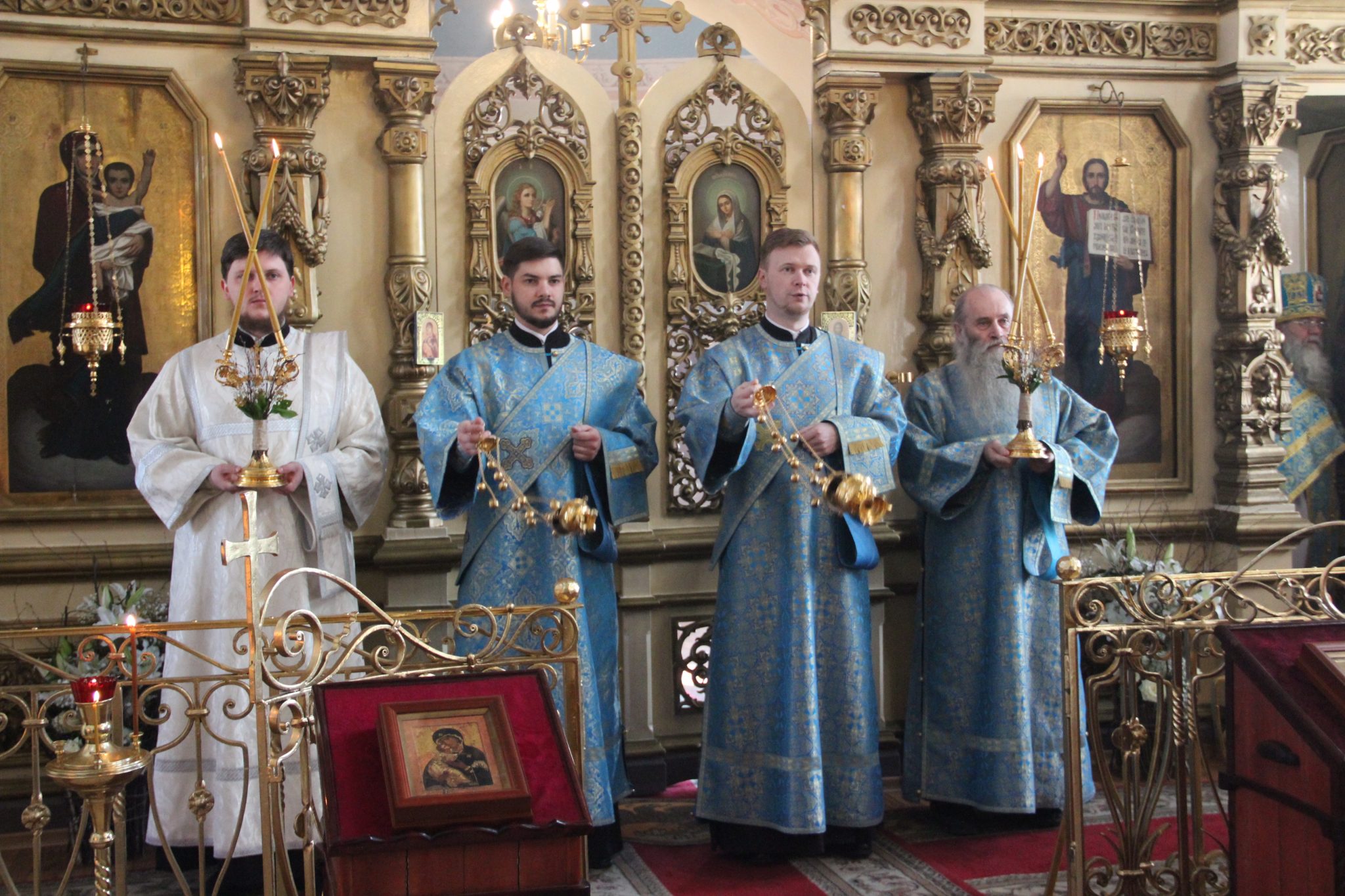 Архипастырю сослужили: духовник епархии митрофорный протоиерей Алексий Жиганов – настоятель кафедрального собора Казанской иконы Божией Матери в городе Людиново, протоиерей Павел Морозов, протоиерей Антоний Хатунцев, иерей Сергий Барыкин – настоятель храма.