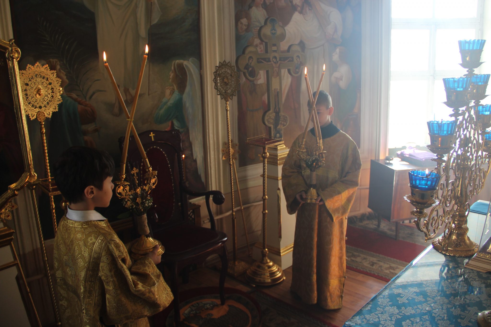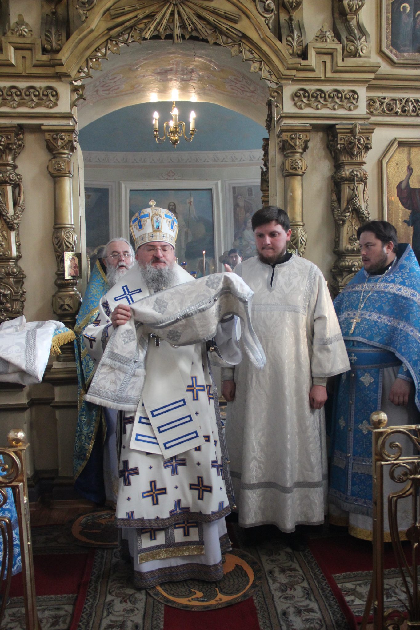 На сугубой ектенье были произнесены особые прошения «о единстве Святого Православия», после чего владыка вознес молитву о мире на Украине.