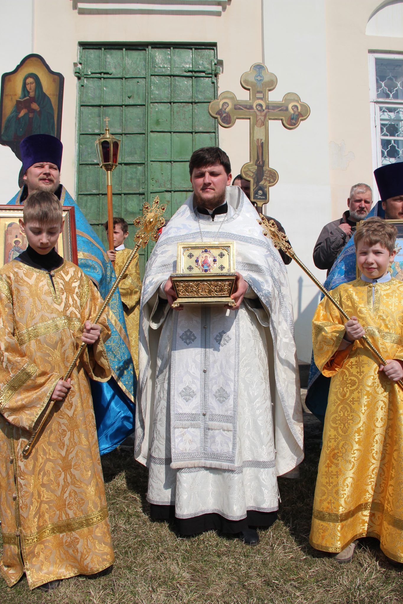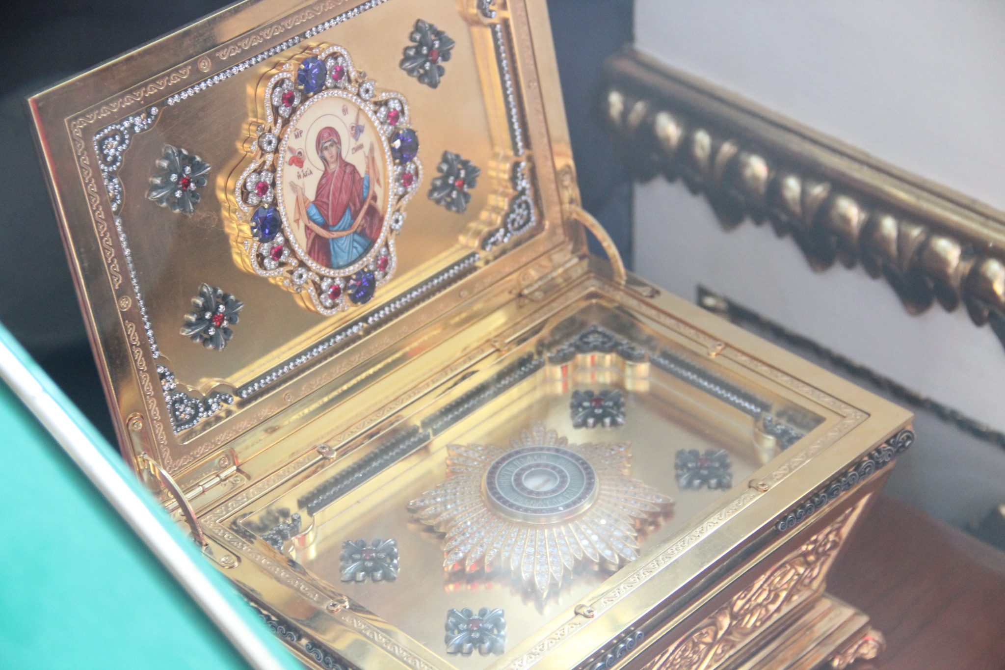 Перед богослужением настоятель храма иерей Сергий Барыкин принес в храм для поклонения ковчег с частицей Пояса Пресвятой Богородицы, хранящийся в Епархиальном управлении.