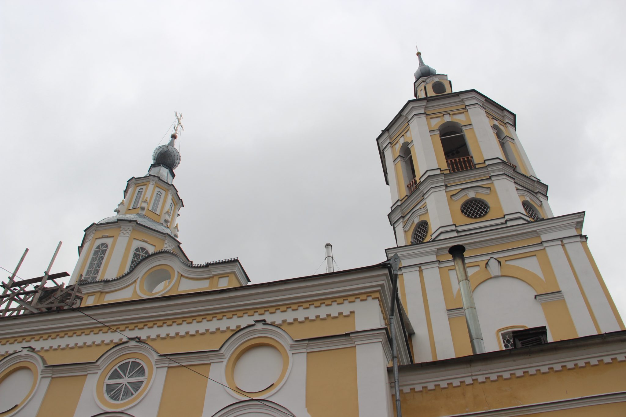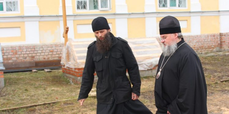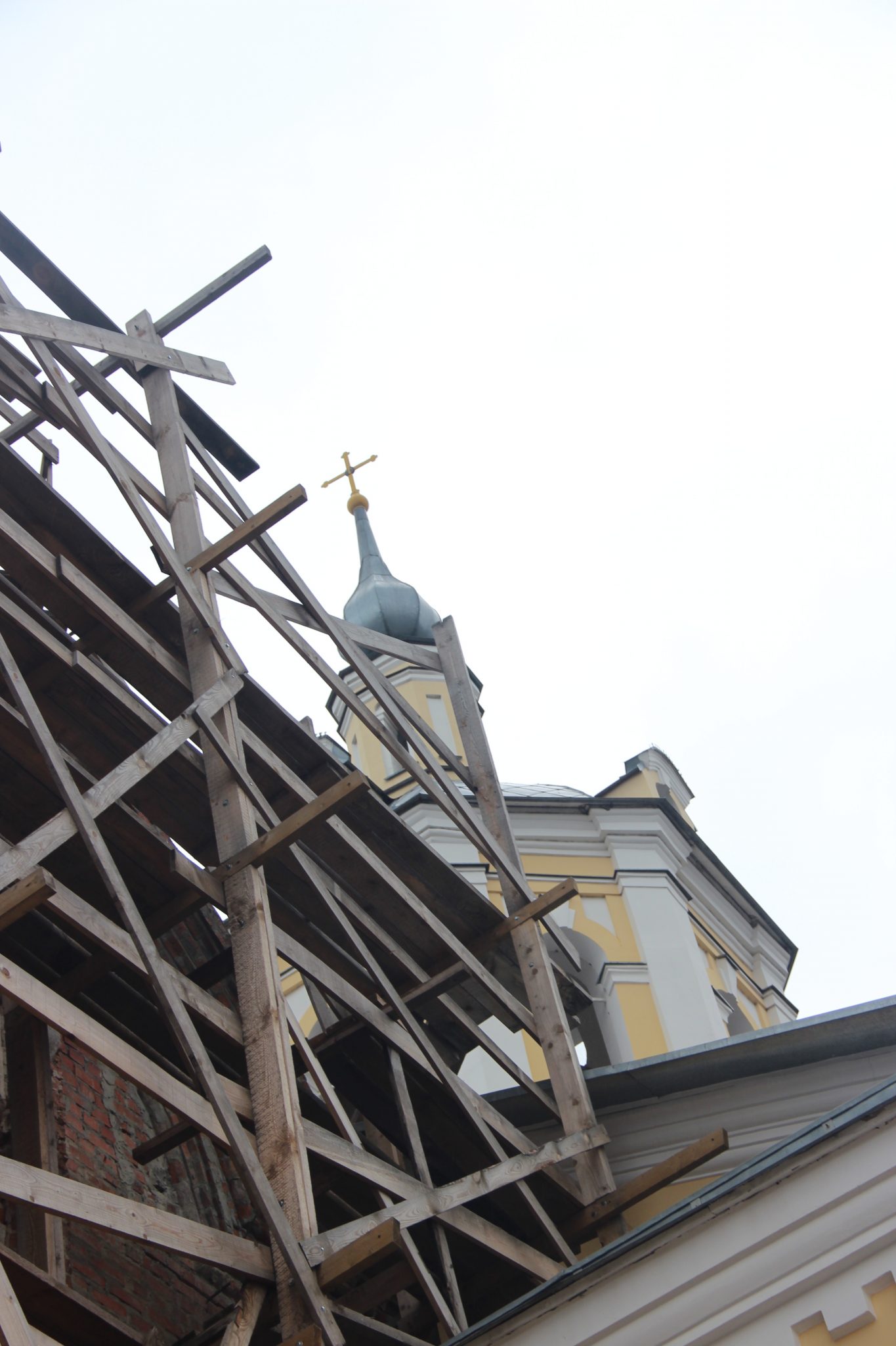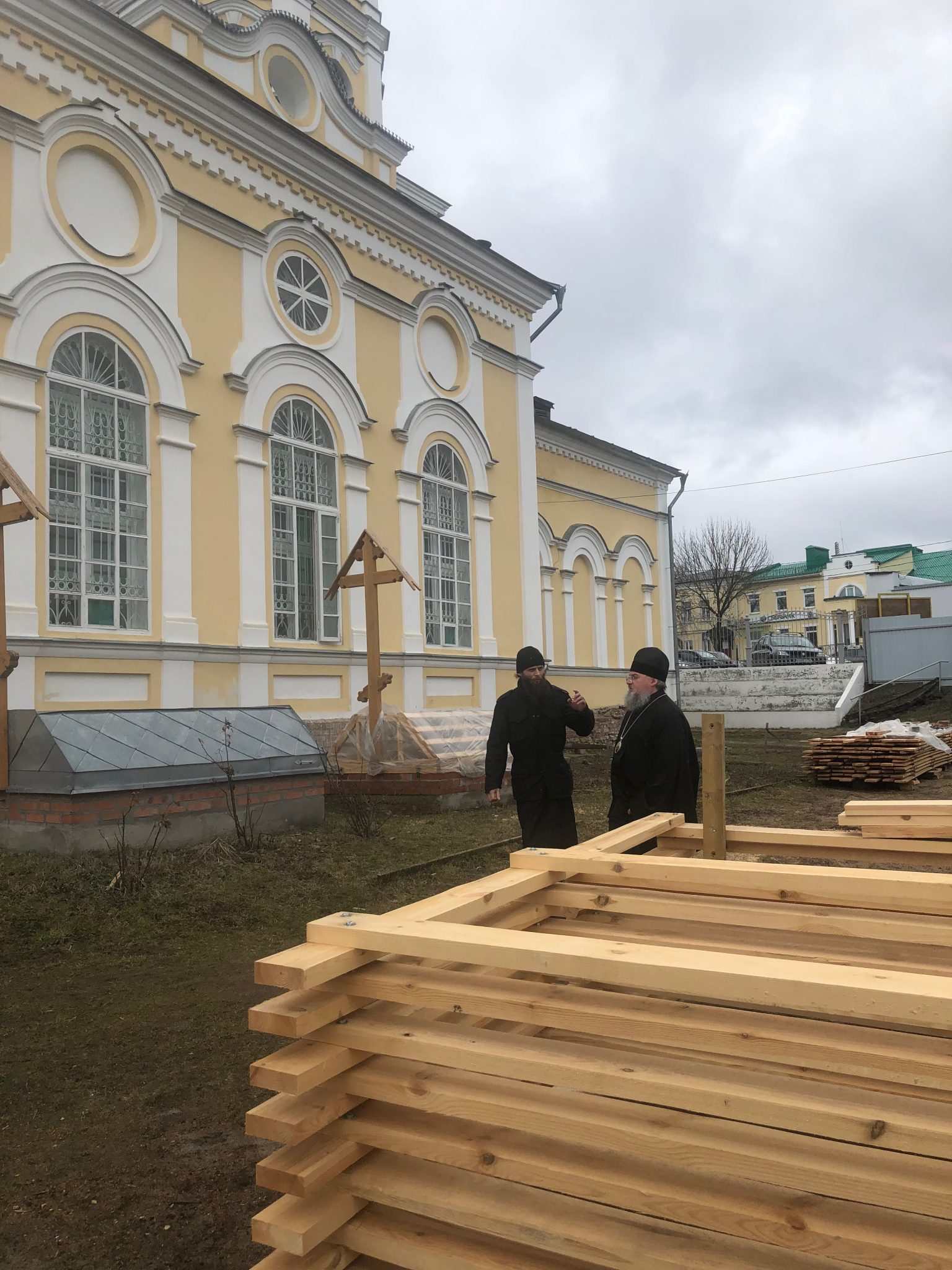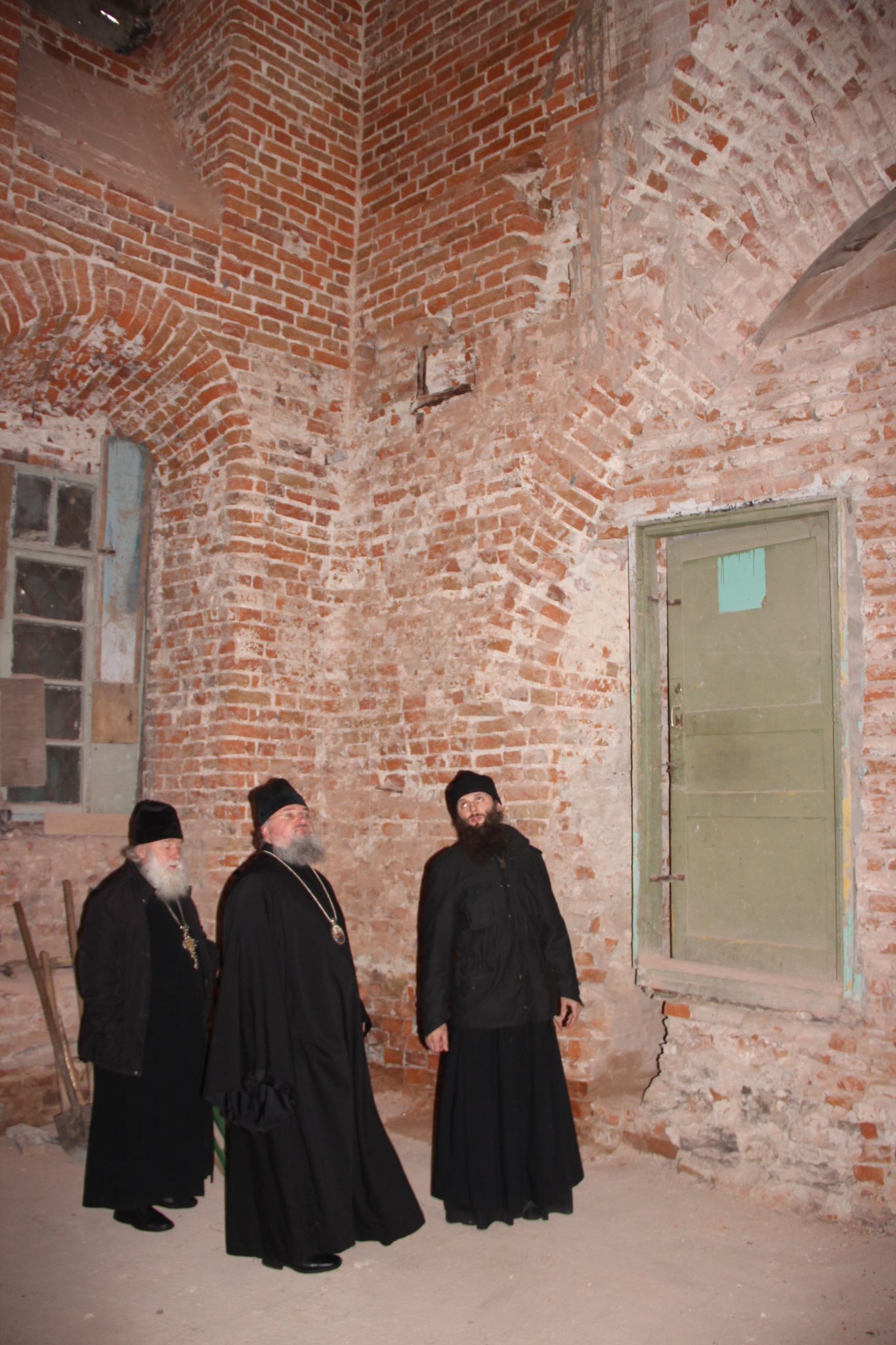 После богослужения настоятель ознакомил архиерея с ходом реставрационных работ в центральной части храма.