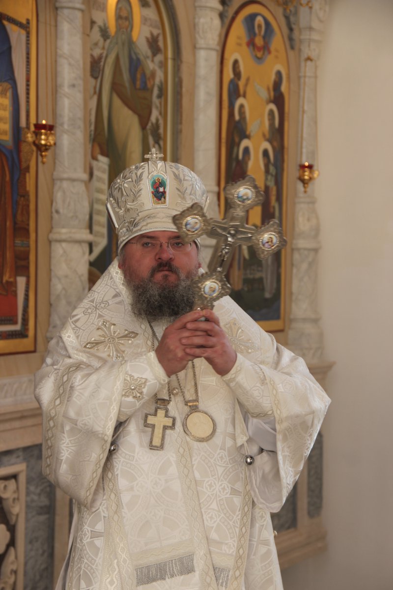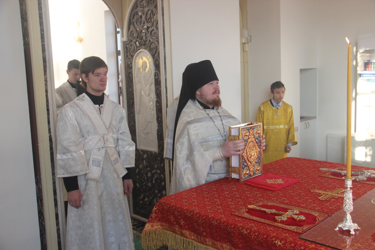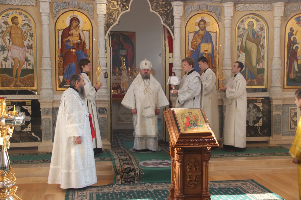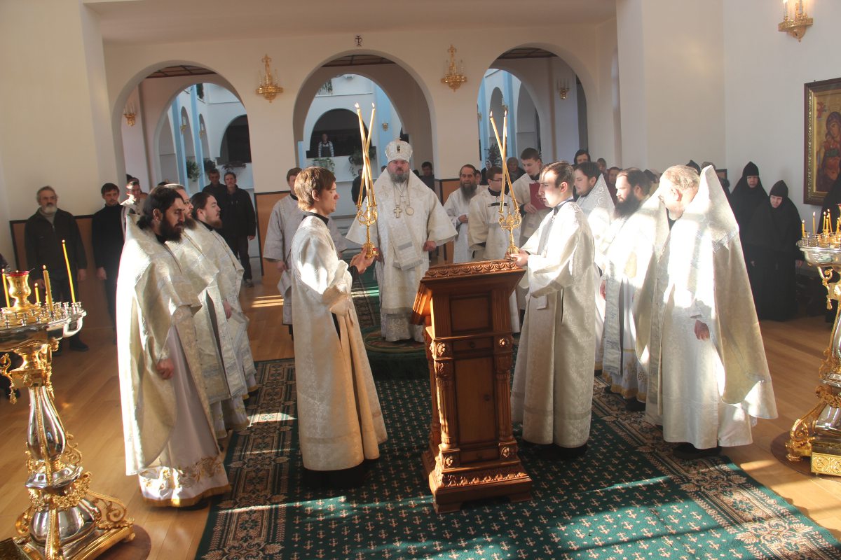 Архипастырю сослужили клирики святой обители. После отпуста литургии священнослужители совершили праздничный молебен пред образом святого архангела Михаила, а затем владыка обратился к молящимся со словом назидания. Завершив богослужение в монастыре, епископ Никита совершил чин освящения двух поклонных крестов на въездах в село Каменка Козельского района.