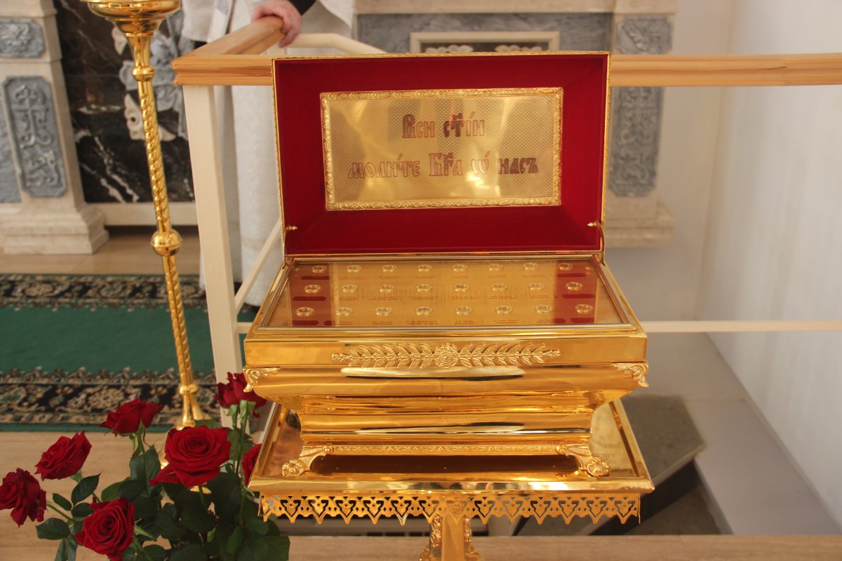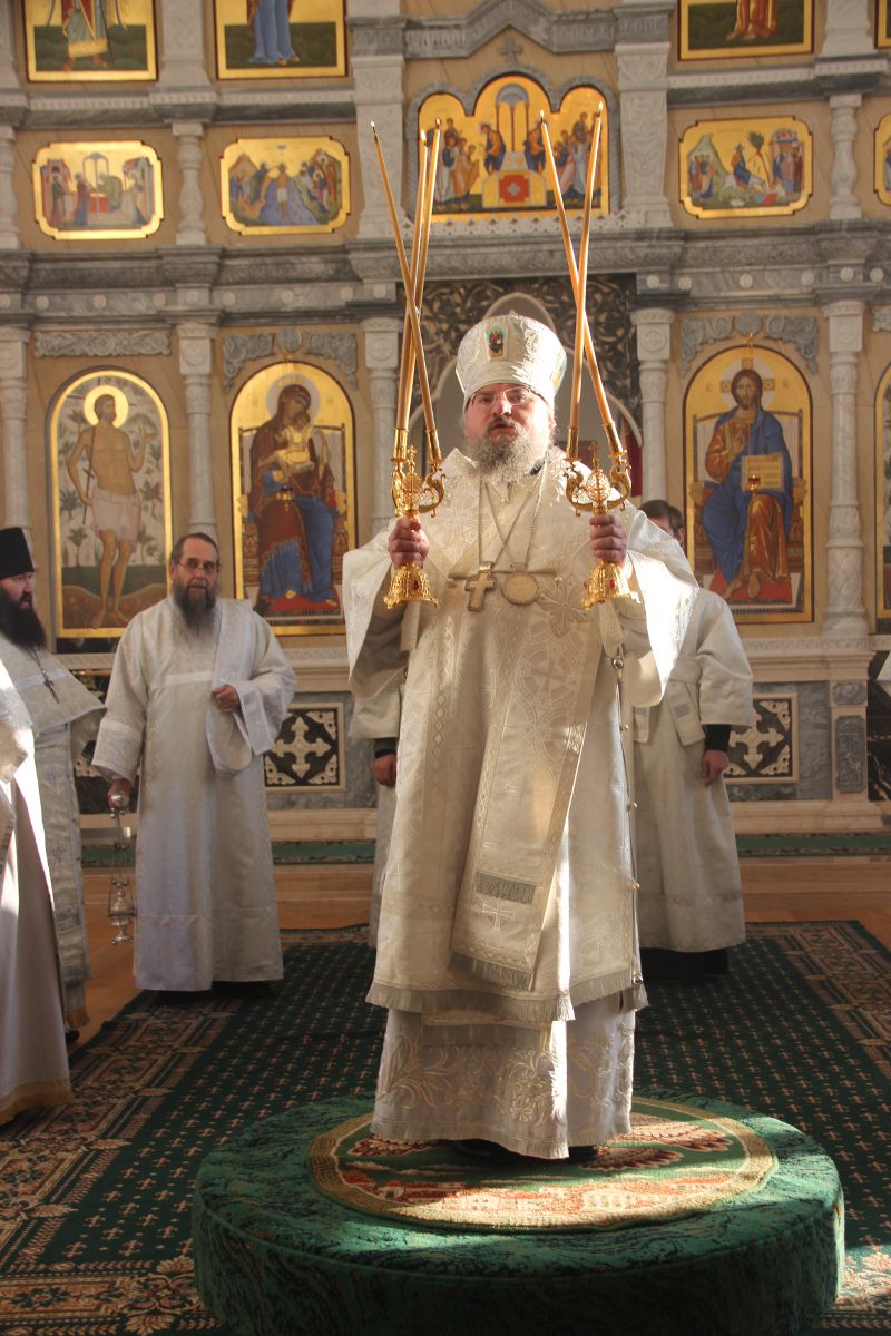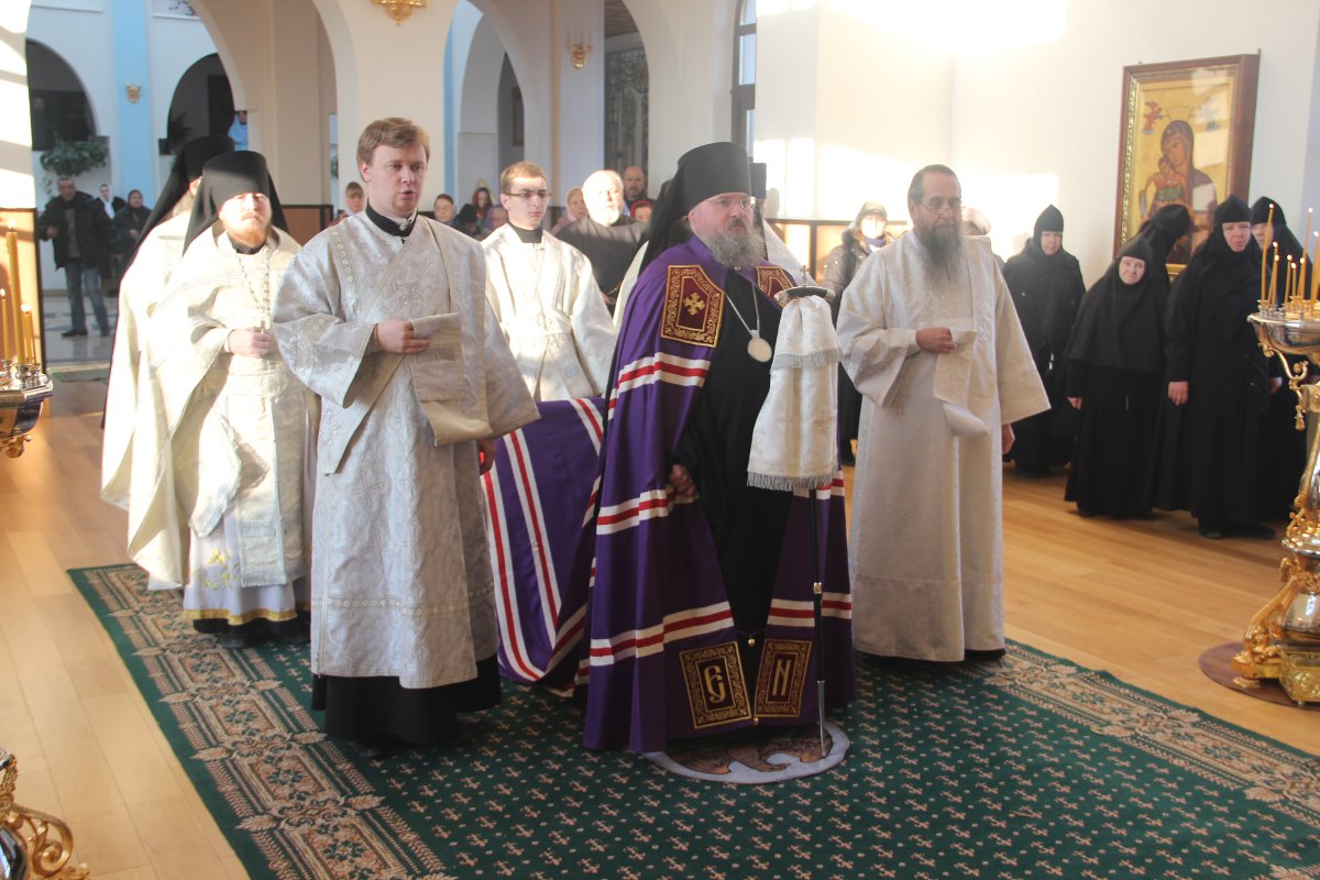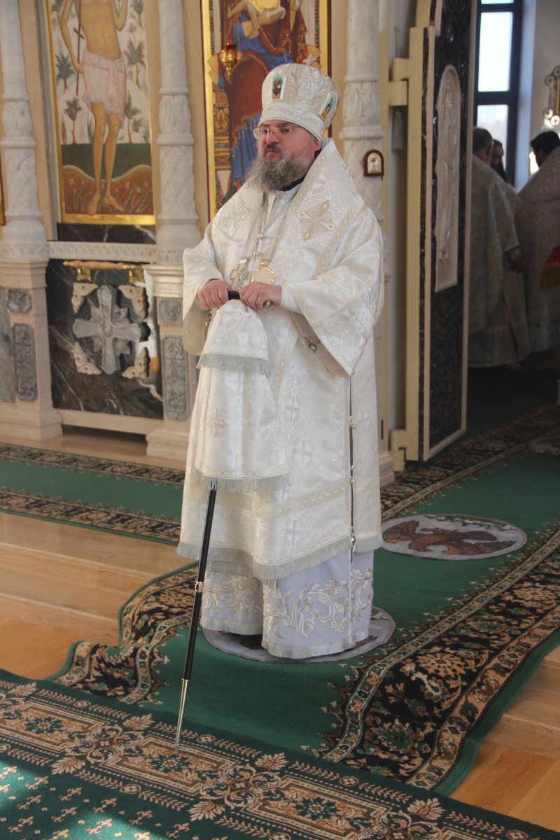 Архипастырю сослужили клирики святой обители. После отпуста литургии священнослужители совершили праздничный молебен пред образом святого архангела Михаила, а затем владыка обратился к молящимся со словом назидания. Завершив богослужение в монастыре, епископ Никита совершил чин освящения двух поклонных крестов на въездах в село Каменка Козельского района.