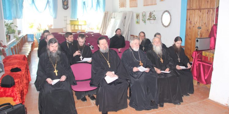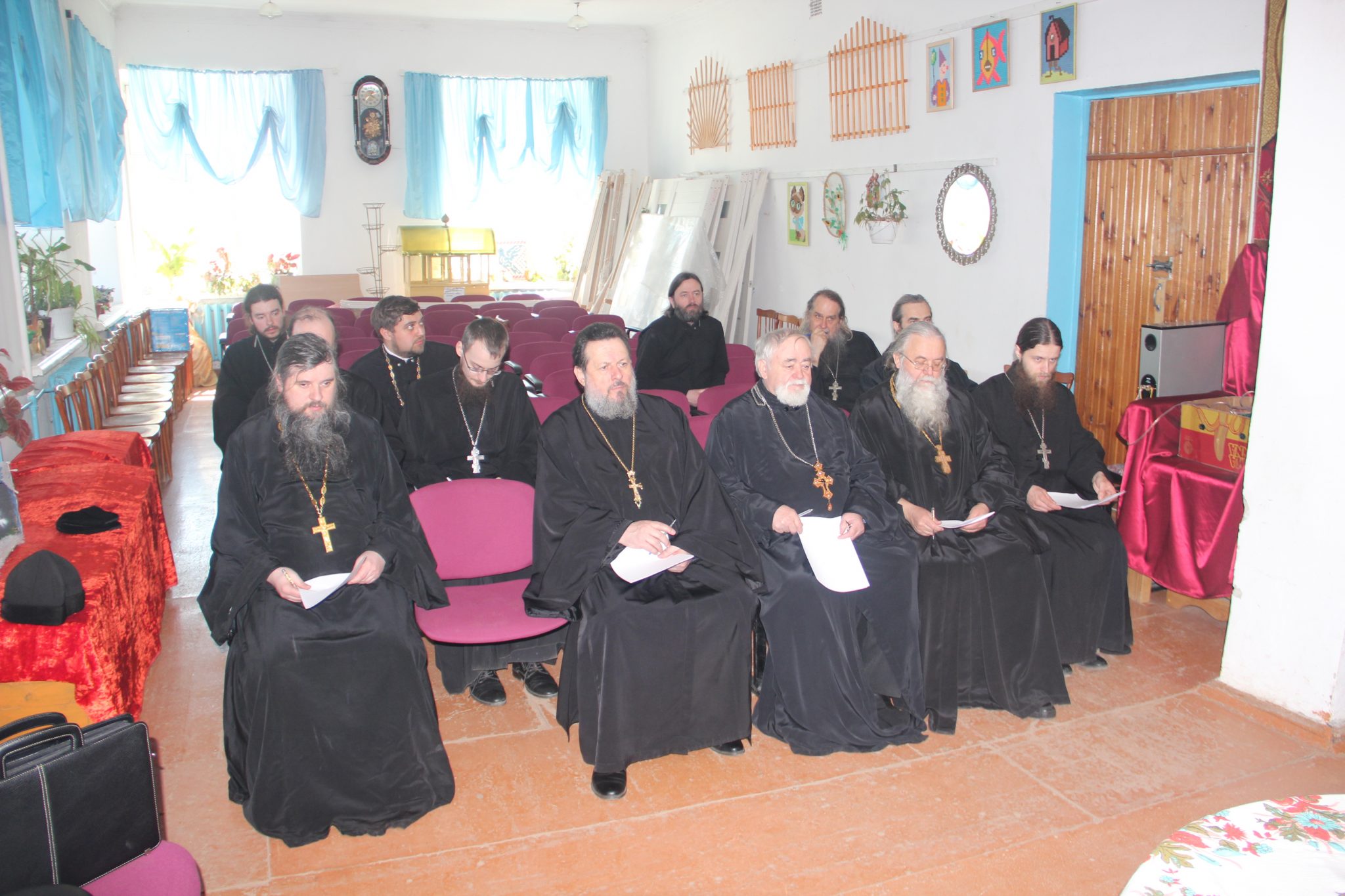 На собрании, которое возглавил епископ Козельский и Людиновский Никита, присутствовали протоиерей Василий Биляк – благочинный Людиновского округа и иерей Алексий Ефименков – благочинный Жиздринского округа, а также все клирики этих двух благочиний.