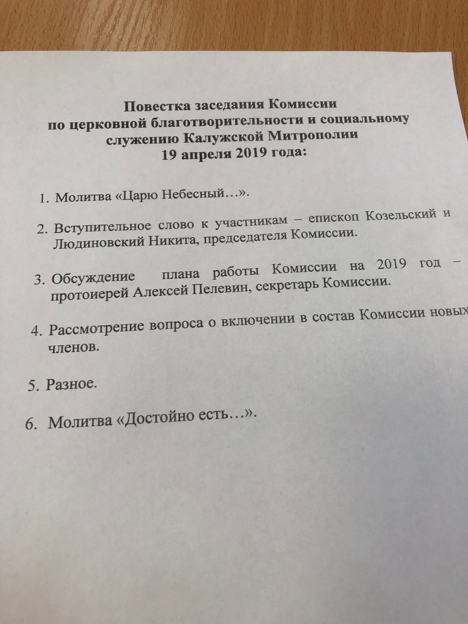 19 апреля 2019 года, в зале совещаний Калужского епархиального управления состоялось заседание Комиссии по благотворительности Калужской Митрополии.