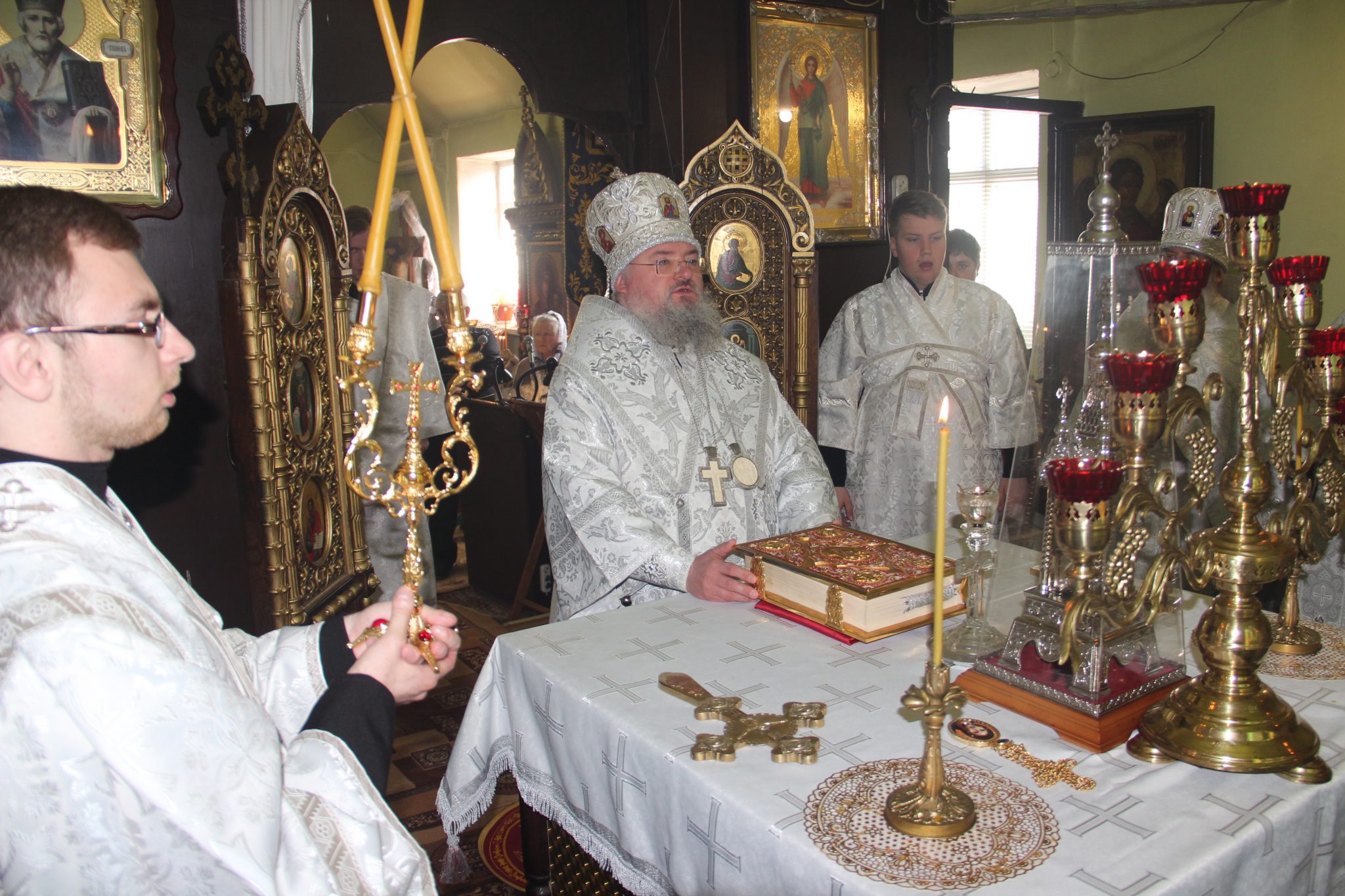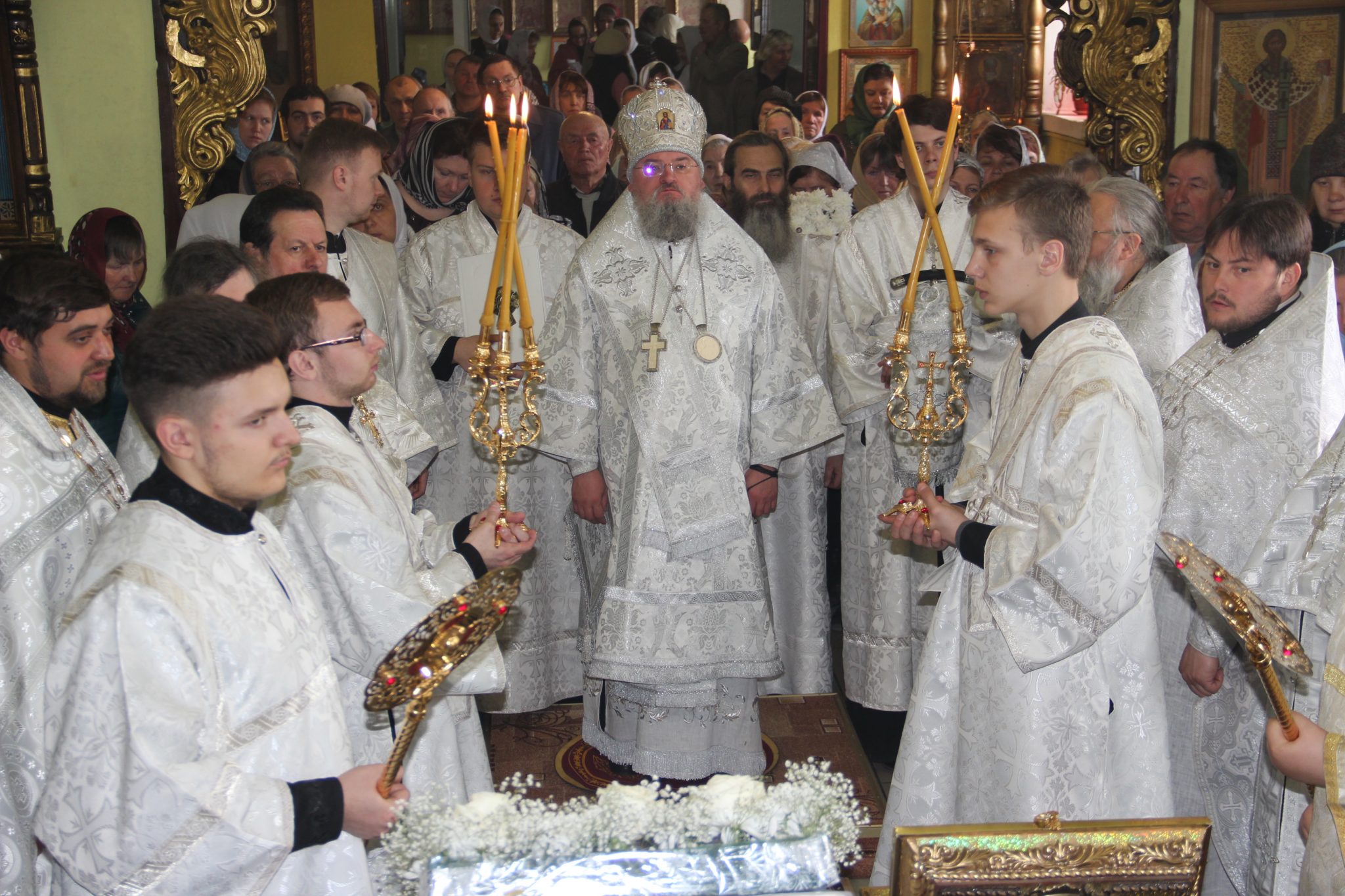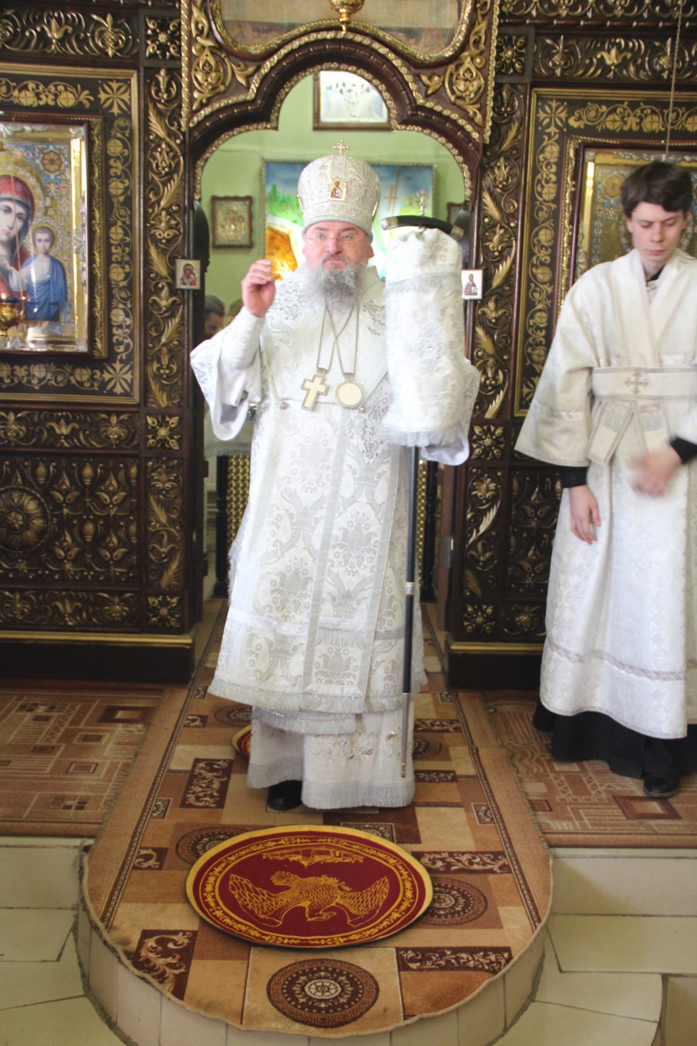 Его Преосвященству сослужили: протоиерей Василий Биляк – благочинный округа, протоиерей Алексий Жиганов – духовник епархии, протоиерей Михаил Карпенко – настоятель храма, протоиерей Антоний Хатунцев, иерей Артемий Арутюнян, диакон Евгений Ковригин и диакон Андрей Соколов.