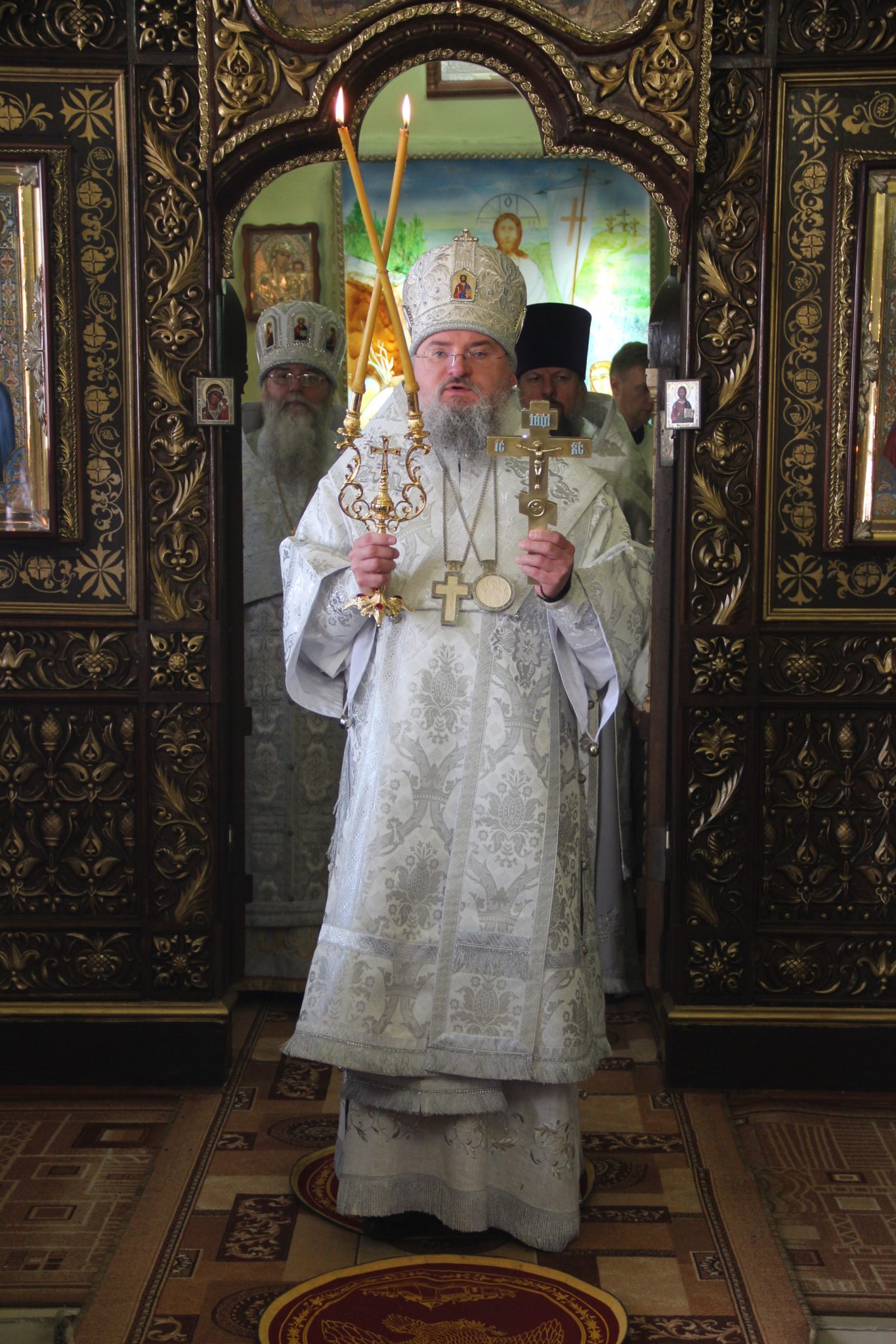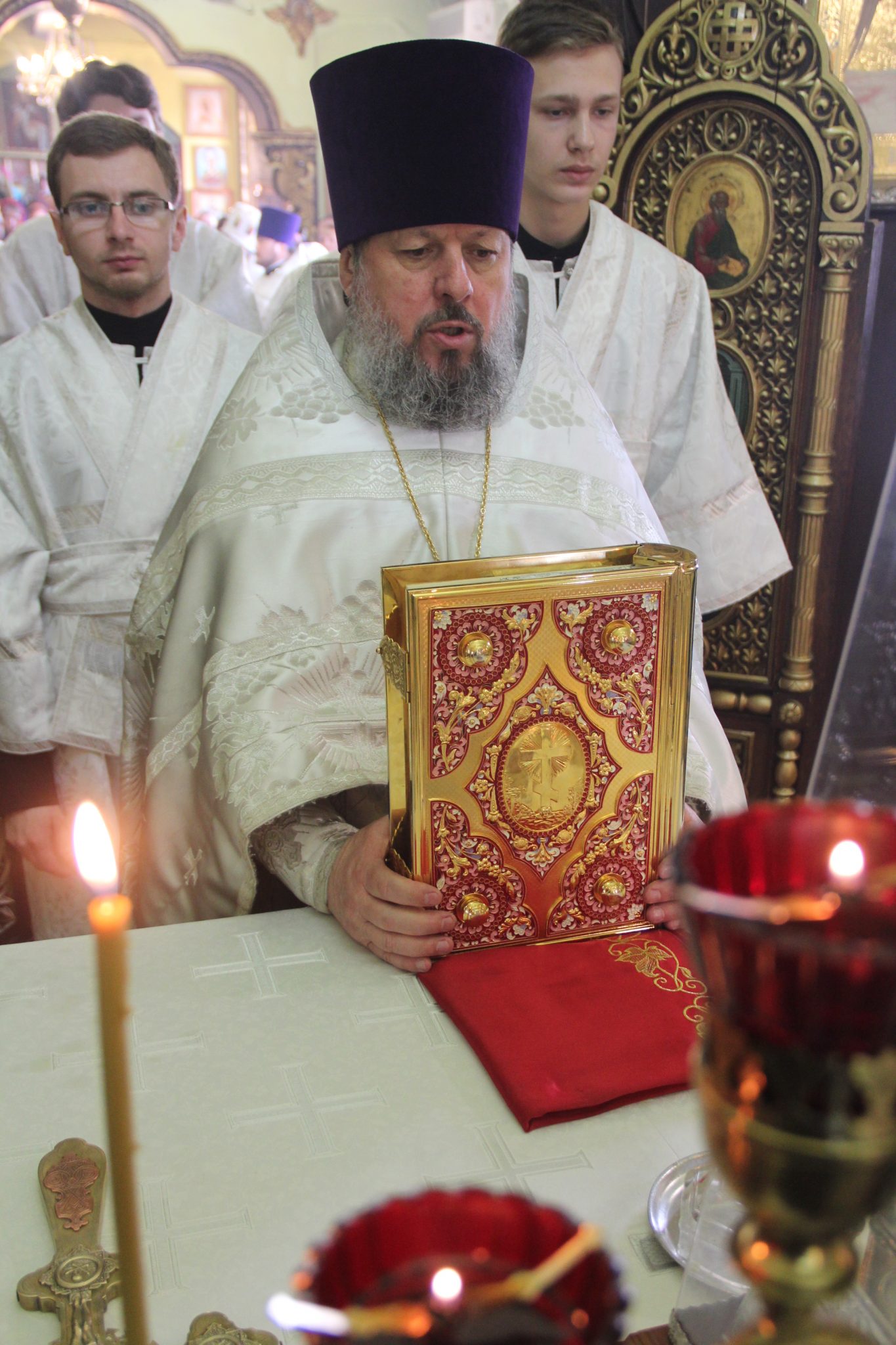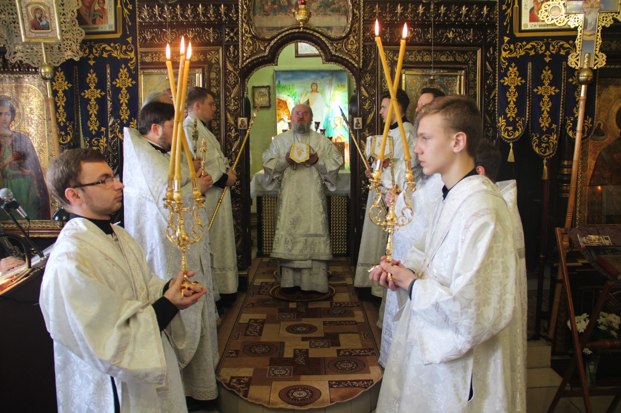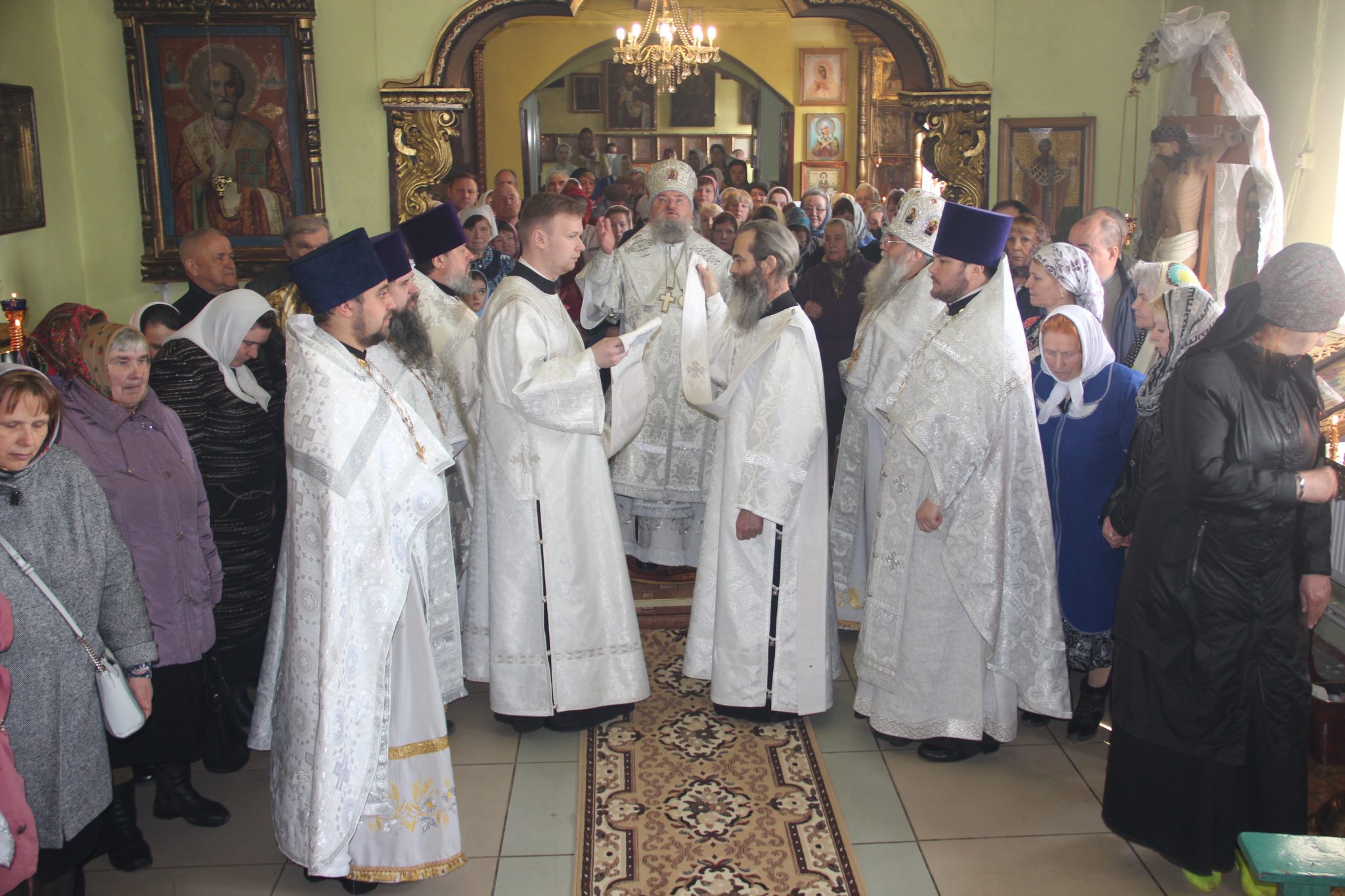 Его Преосвященству сослужили: протоиерей Василий Биляк – благочинный округа, протоиерей Алексий Жиганов – духовник епархии, протоиерей Михаил Карпенко – настоятель храма, протоиерей Антоний Хатунцев, иерей Артемий Арутюнян, диакон Евгений Ковригин и диакон Андрей Соколов.