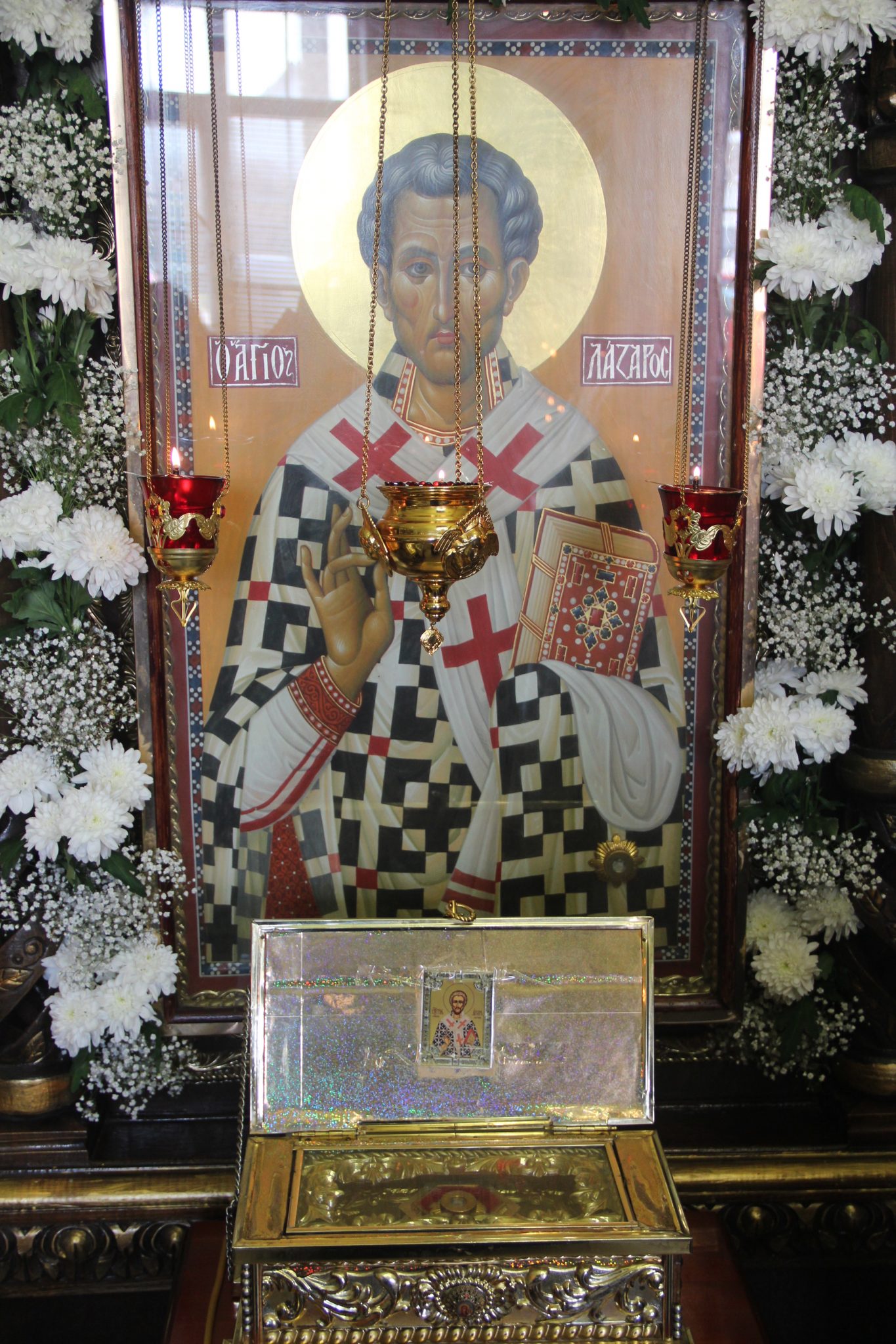 По отпусте литургии священнослужители совершили славление праведному Лазарю Четверодневному, в завершении которого, вознеся молитву угоднику Божию, владыка обратился к богомольцам с проповедью.