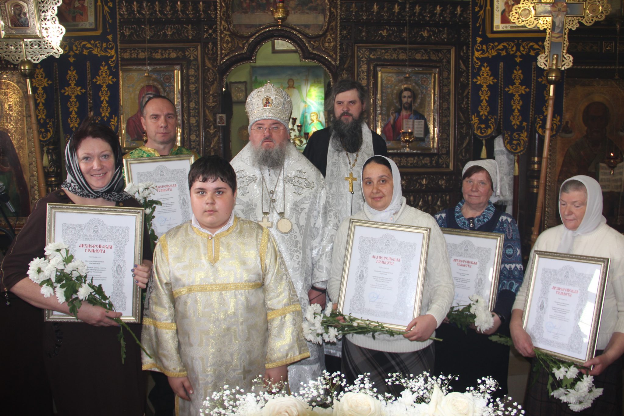 Во внимание к усердным трудам во славу святой Церкви ряд прихожан храма были удостоены архиерейских грамот.