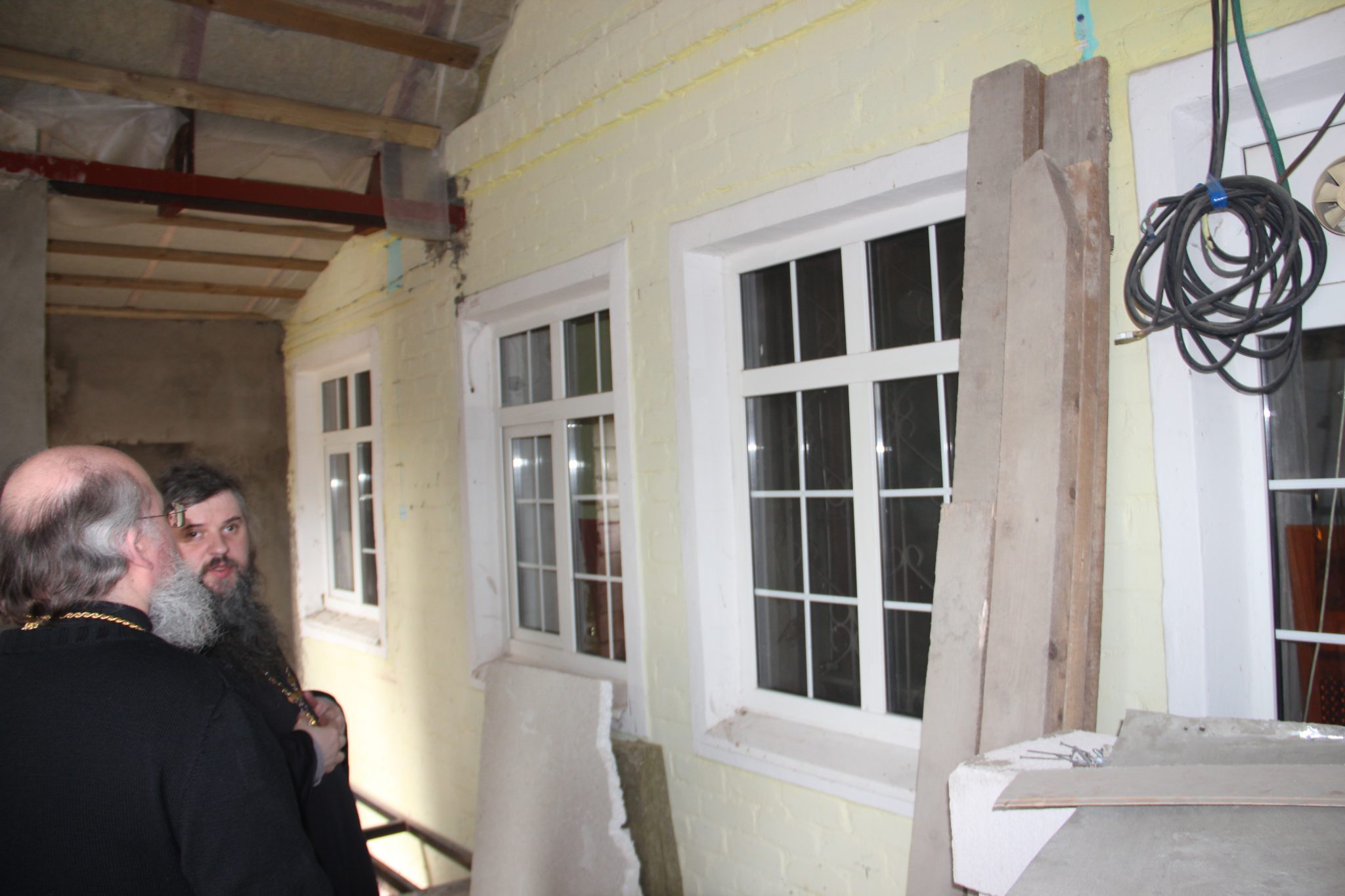 После богослужения настоятель прихода протоиерей Михаил Карпенко познакомил владыку с ремонтными работами, проходящими в храме.