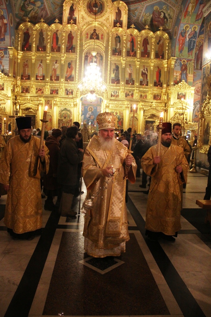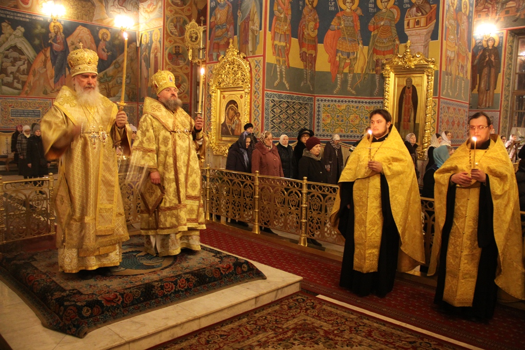 23 ноября. Неделя 24-я по Пятидесятнице. Память сщмч. Августина, архиеп. Калужского. Накануне воскресного дня в Свято-Троицком кафедральном соборе г. Калуги было совершено праздничное всенощное бдение.