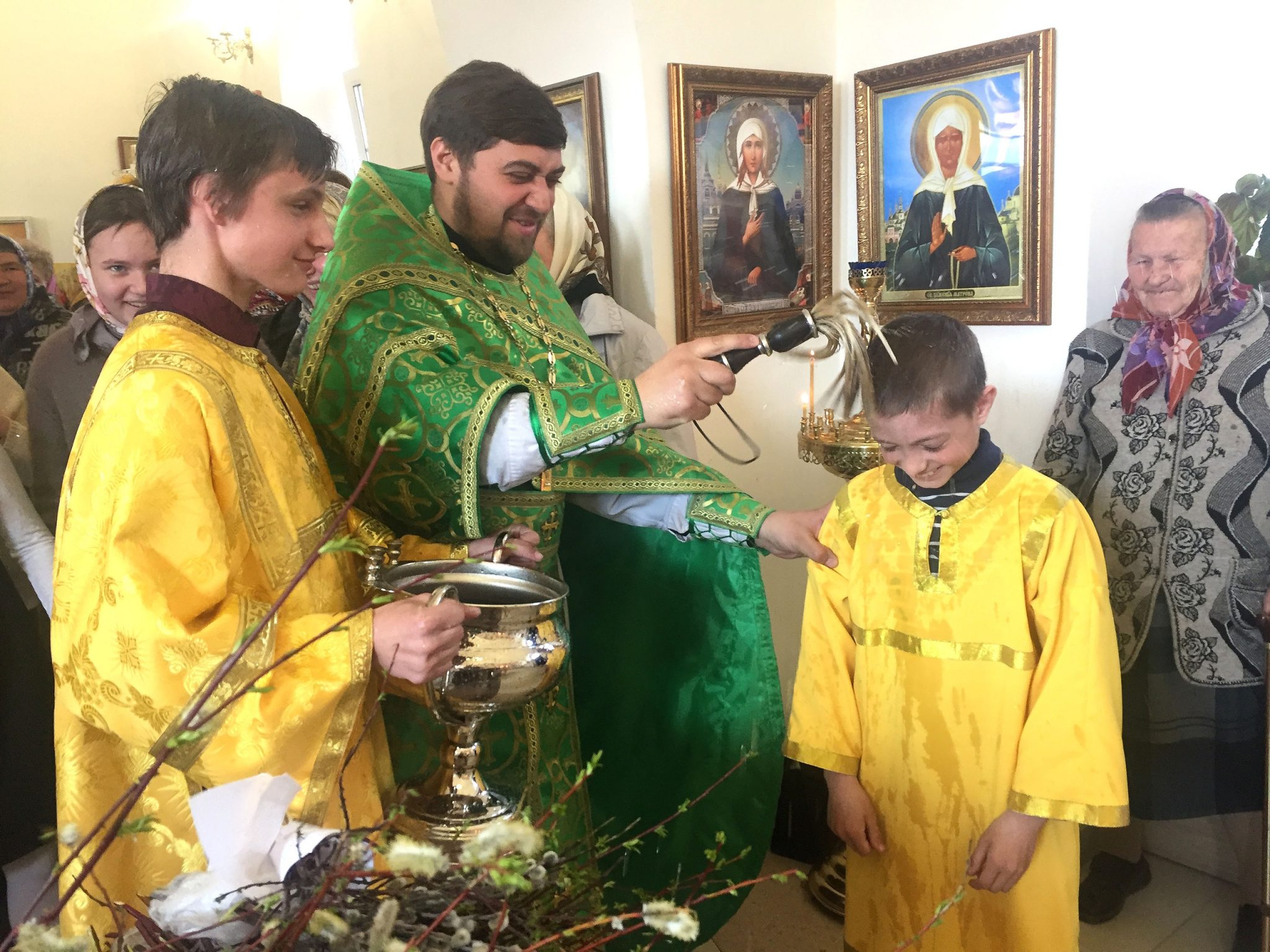 Затем в храме освященные веточки вербы были розданы всем желающим.