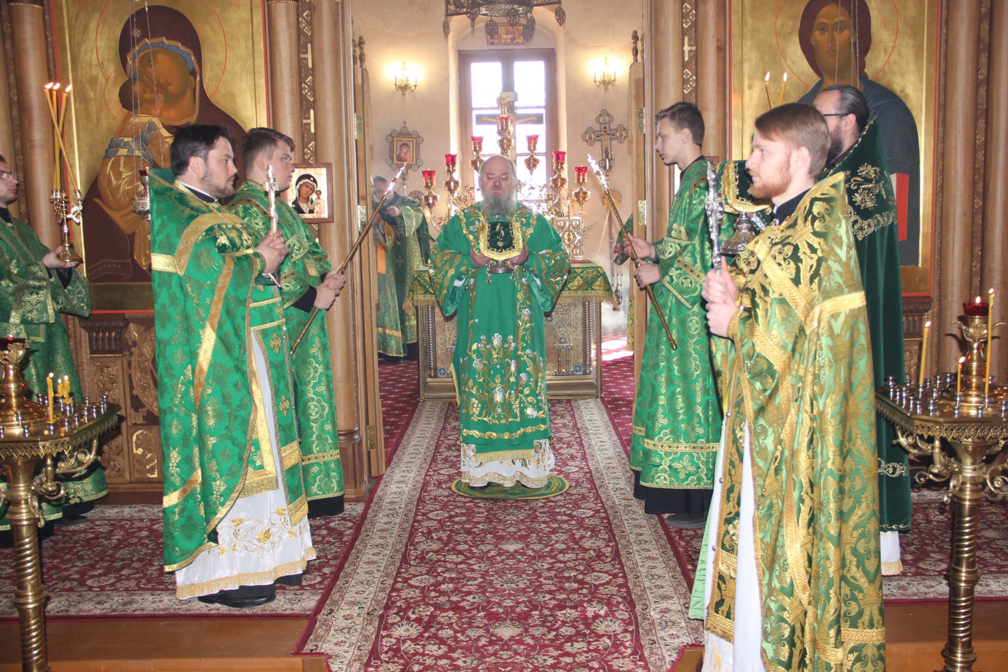 Его Преосвященству сослужили: иеромонах Паисий (Курмаз) – настоятель собора, протоиерей Антоний Хатунцев, иерей Елисей Тимофеев, диакон Евгений Ковригин, диакон Димитрий Лутков и иеродиакон Виталий (Павленко).