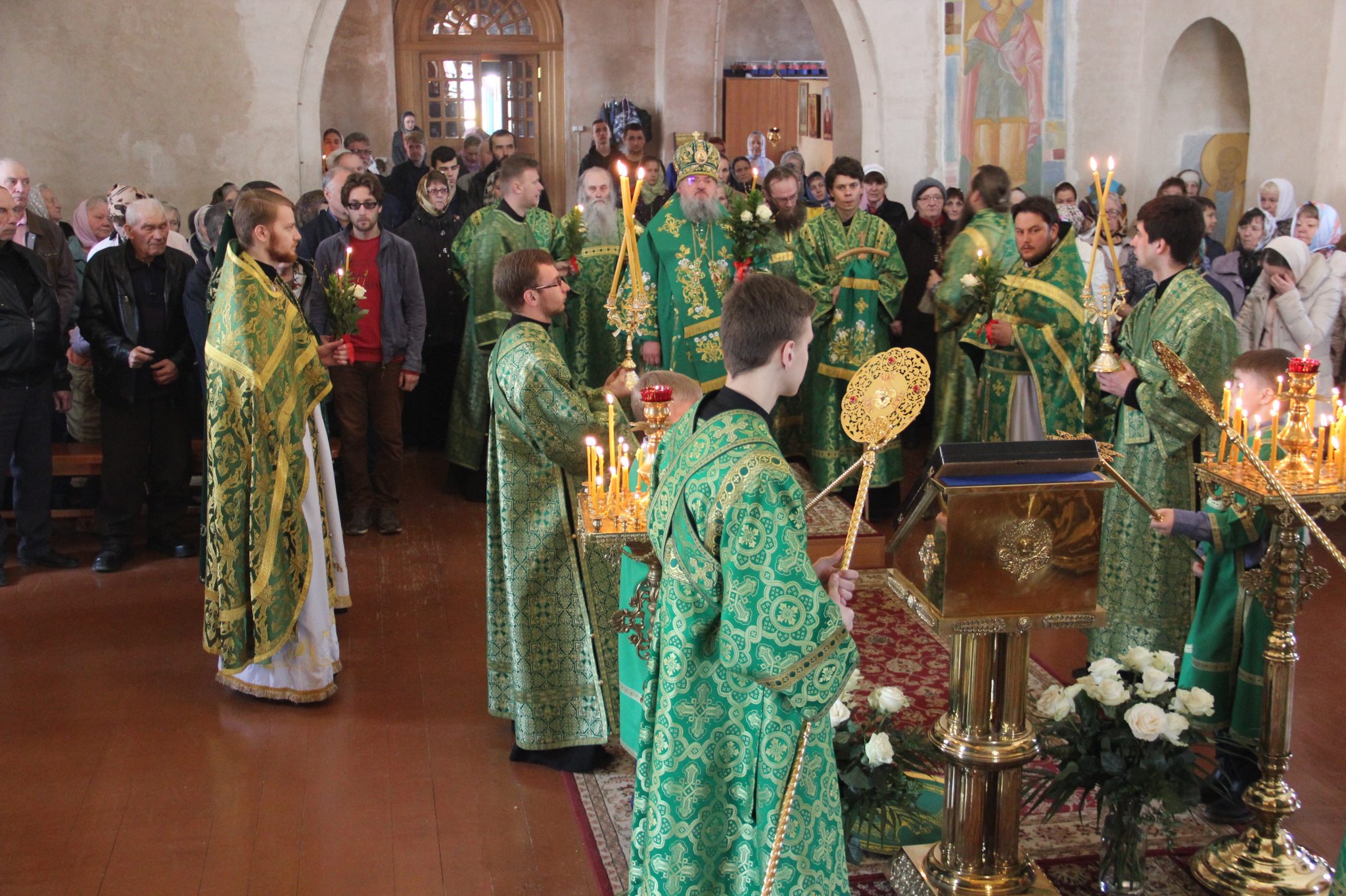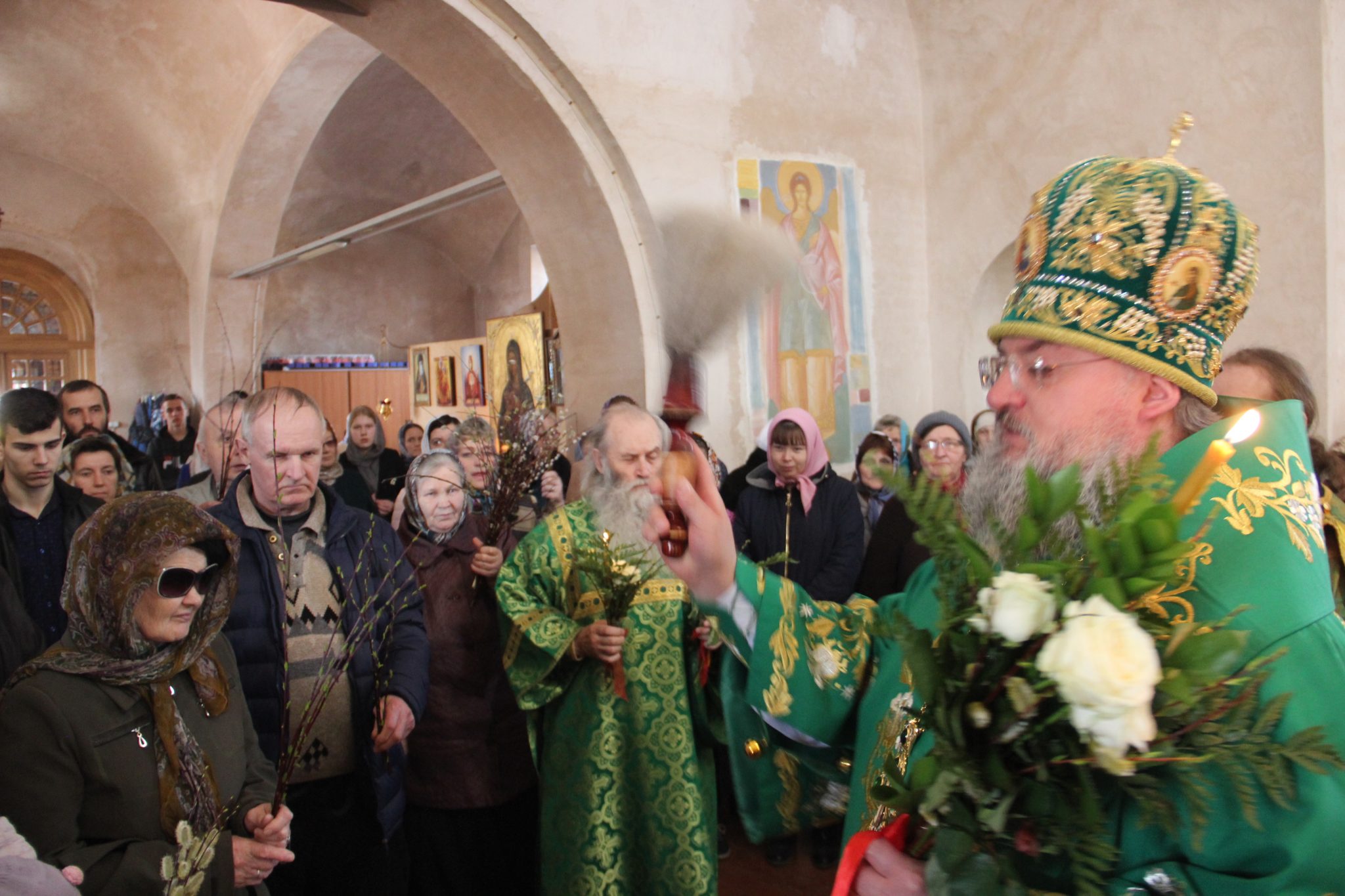 По отпусте литургии священнослужители совершили славление праздника, а затем, окропив святой водой ветви вербы, принесенные прихожанами, владыка обратился к богомольцам с архипастырским словом.