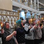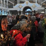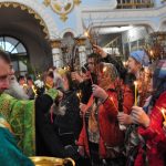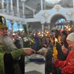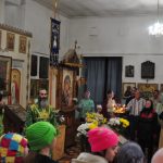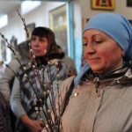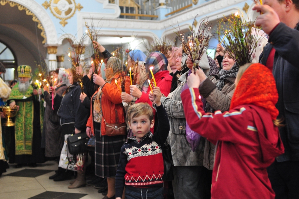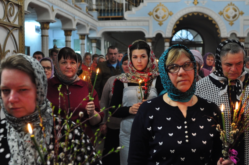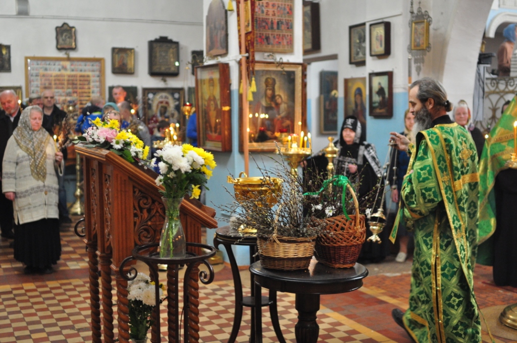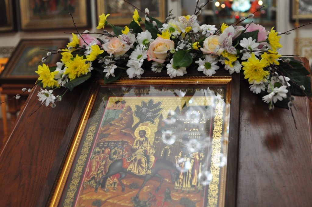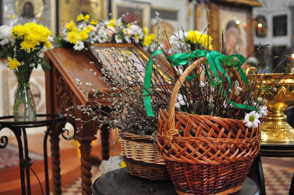 На утрене, после чтения Евангелия, совершили традиционное освящение «ваий» — вербных веток, чтобы с ними в воскресенье на Литургии встретить Господа. Стояние с ветвями и зажженными свечами — это воспоминание торжественного Входа Царя Славы на вольные страдания за несколько дней до крестных страстей Его. Молящиеся как бы встречают невидимо грядущего Господа и приветствуют Его, как победителя ада и смерти.