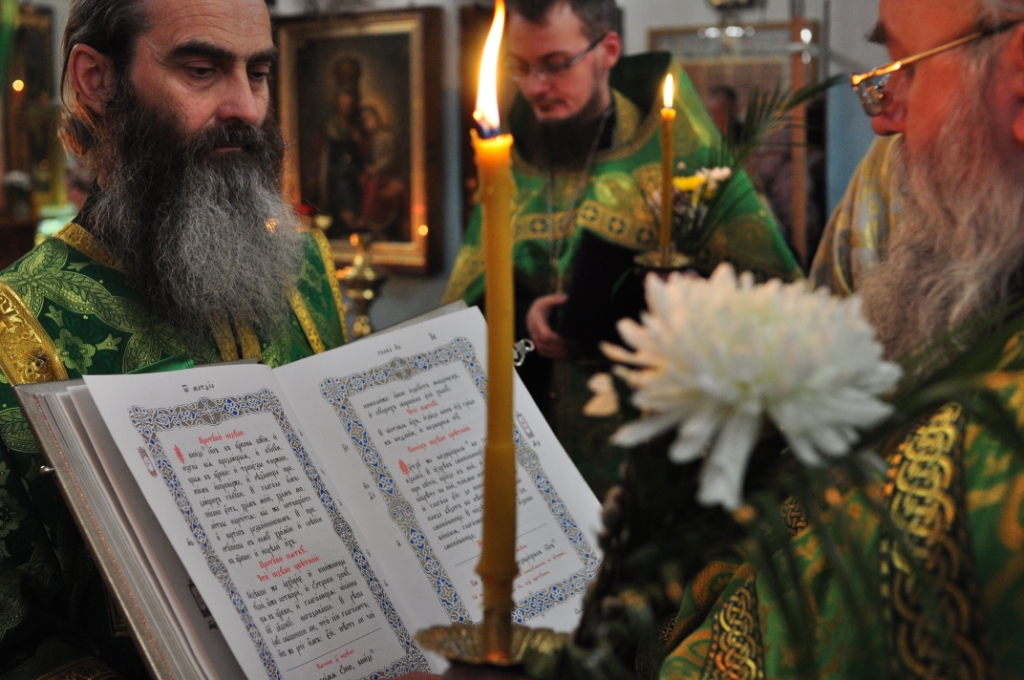 По окончании Литургии священнослужители пропели славление празднику. Затем настоятель обратился к верующим с пастырским словом.