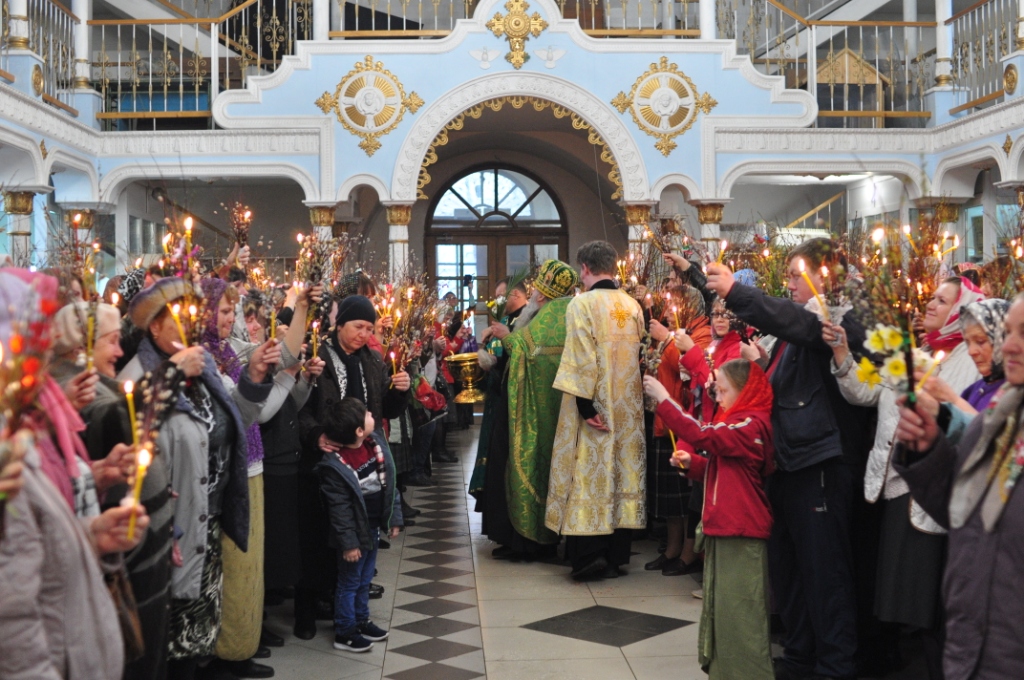 20 апреля 2019 года, в канун недели 6-й Великого поста (ваий), празднования Входа Господня в Иерусалим, настоятель протоиерей Алексий Жиганов в сослужении клириков собора совершил всенощное бдение в Казанском кафедральном соборе Людинова.
