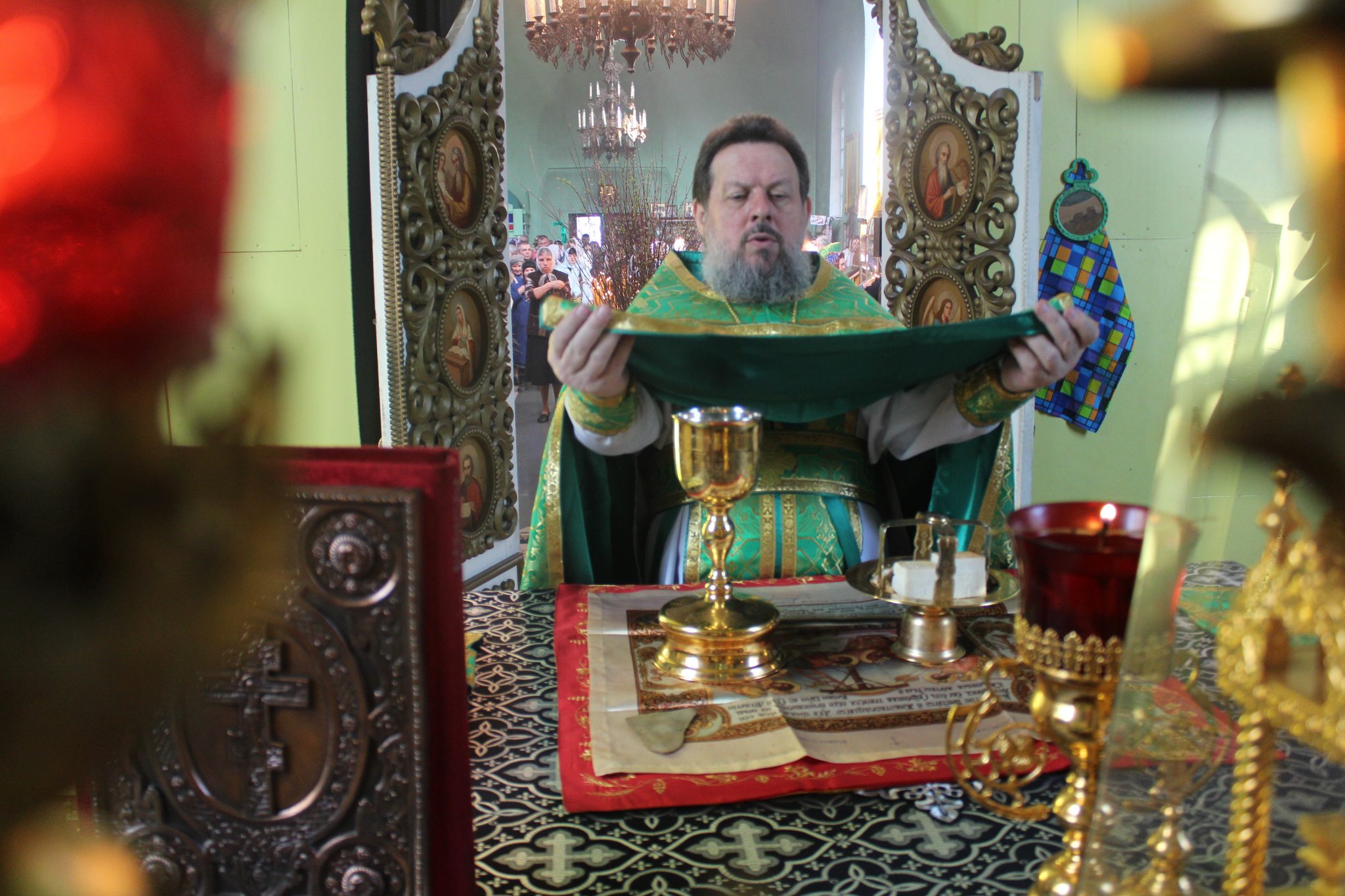 21 апреля. Святая Церковь празднует Вербное воскресенье или Вход Господень в Иерусалим. В этот день в храме преподобного Сергия Радонежского города Людиново всенощное бдение и Божественную литургию  совершил благочинный 6 округа  настоятель храма преподобного Сергия Радонежского протоиерей Василий Биляк. Ему сослужил клирик храма протоиерей Димитрий Губаль.