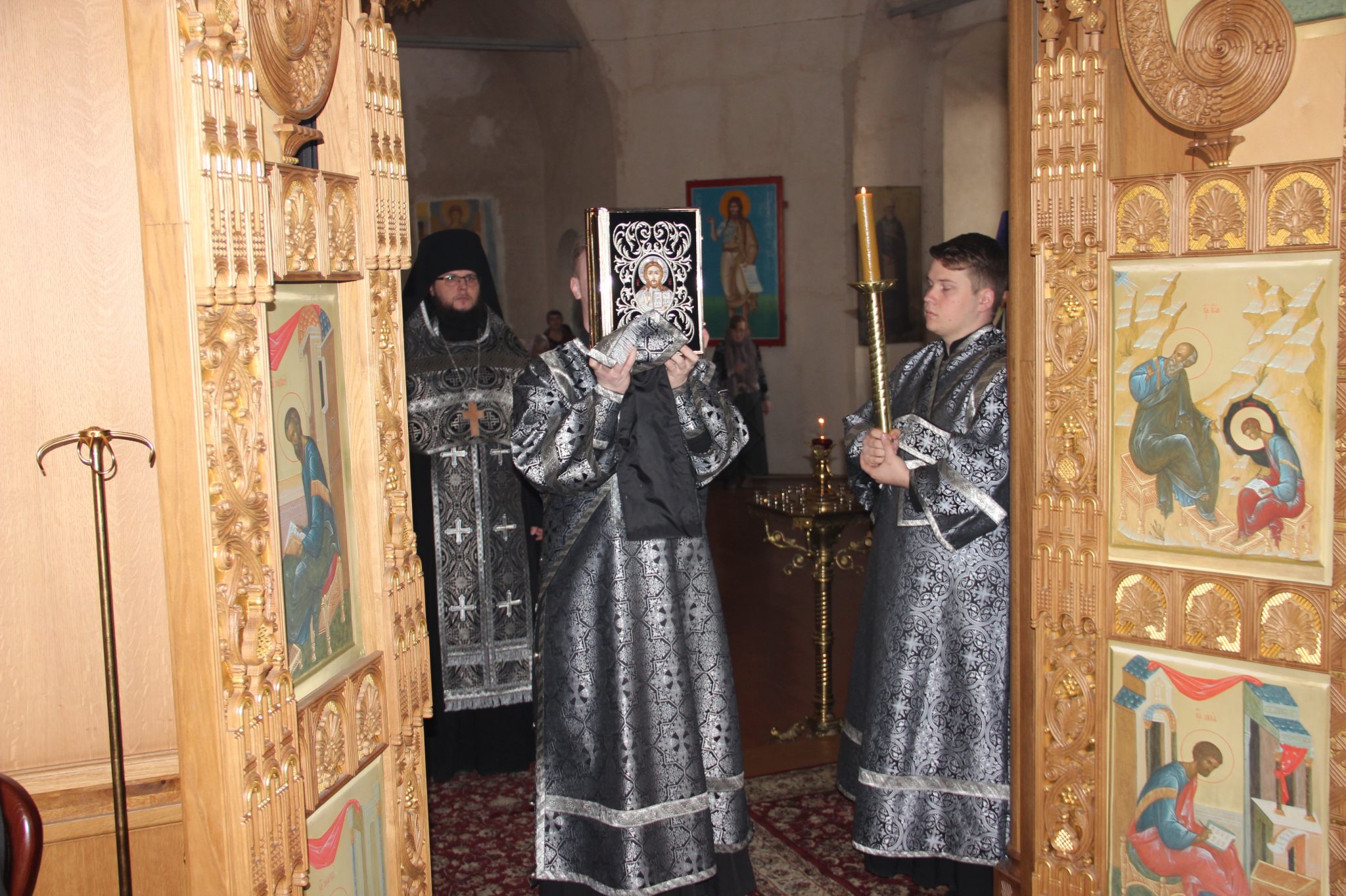 Владыка обратился к богомольцам с архипастырским словом, а затем духовенство пропело канон малого повечерия «О распятии Господа и на плач Пресвятой Богородицы».