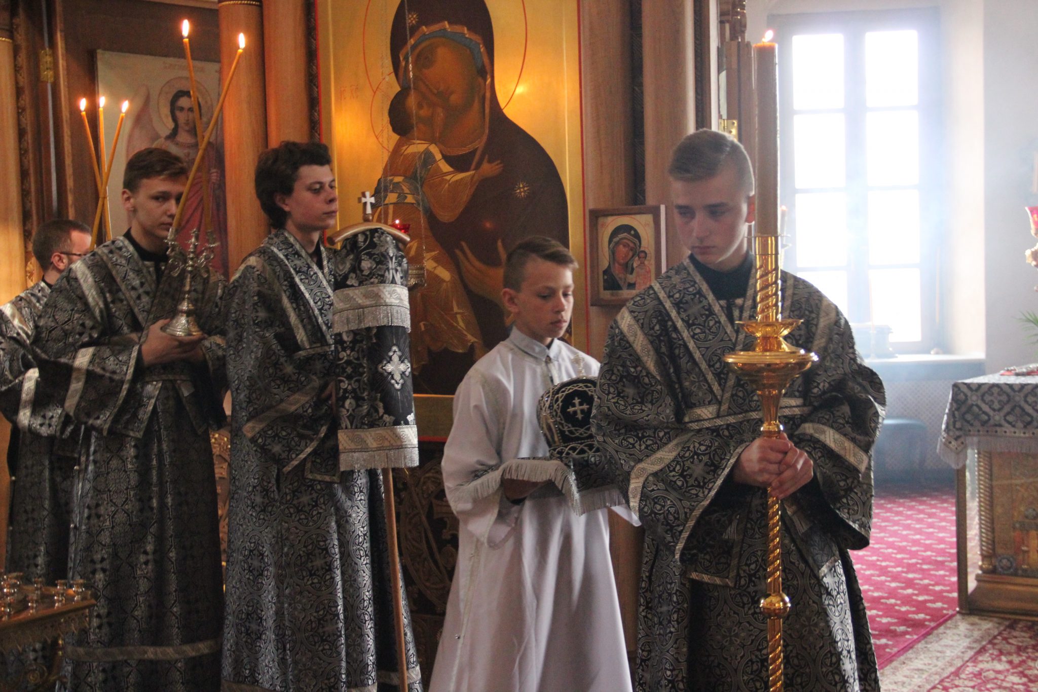 26 апреля 2019 года, Великий Пяток, епископ Козельский и Людиновский Никита совершил вечерню с выносом Плащаницы в Успенском кафедральном соборе города Козельска.