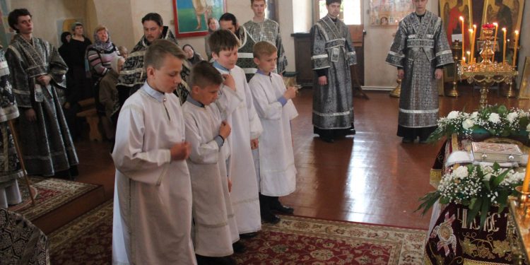 Его Преосвященству сослужили: настоятель собора иеромонах Паисий (Курмаз), протоиерей Антоний Хатунцев, иерей Елисей Тимофеев, иерей Максим Изопов, диакон Евгений Ковригин, диакон Димитрий Лутков и иеродиакон Виталий (Павленко).