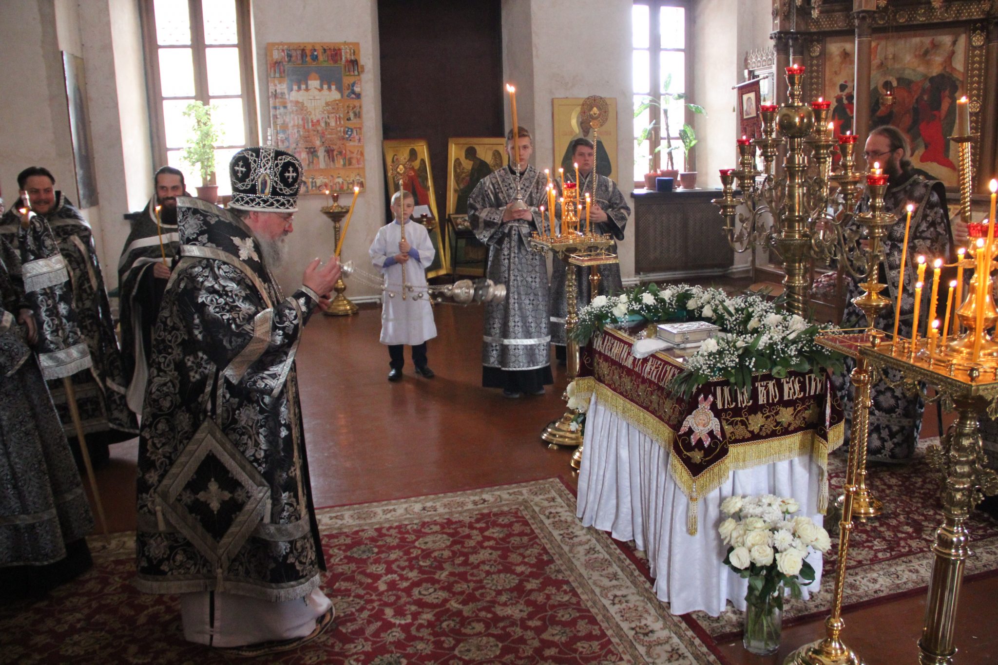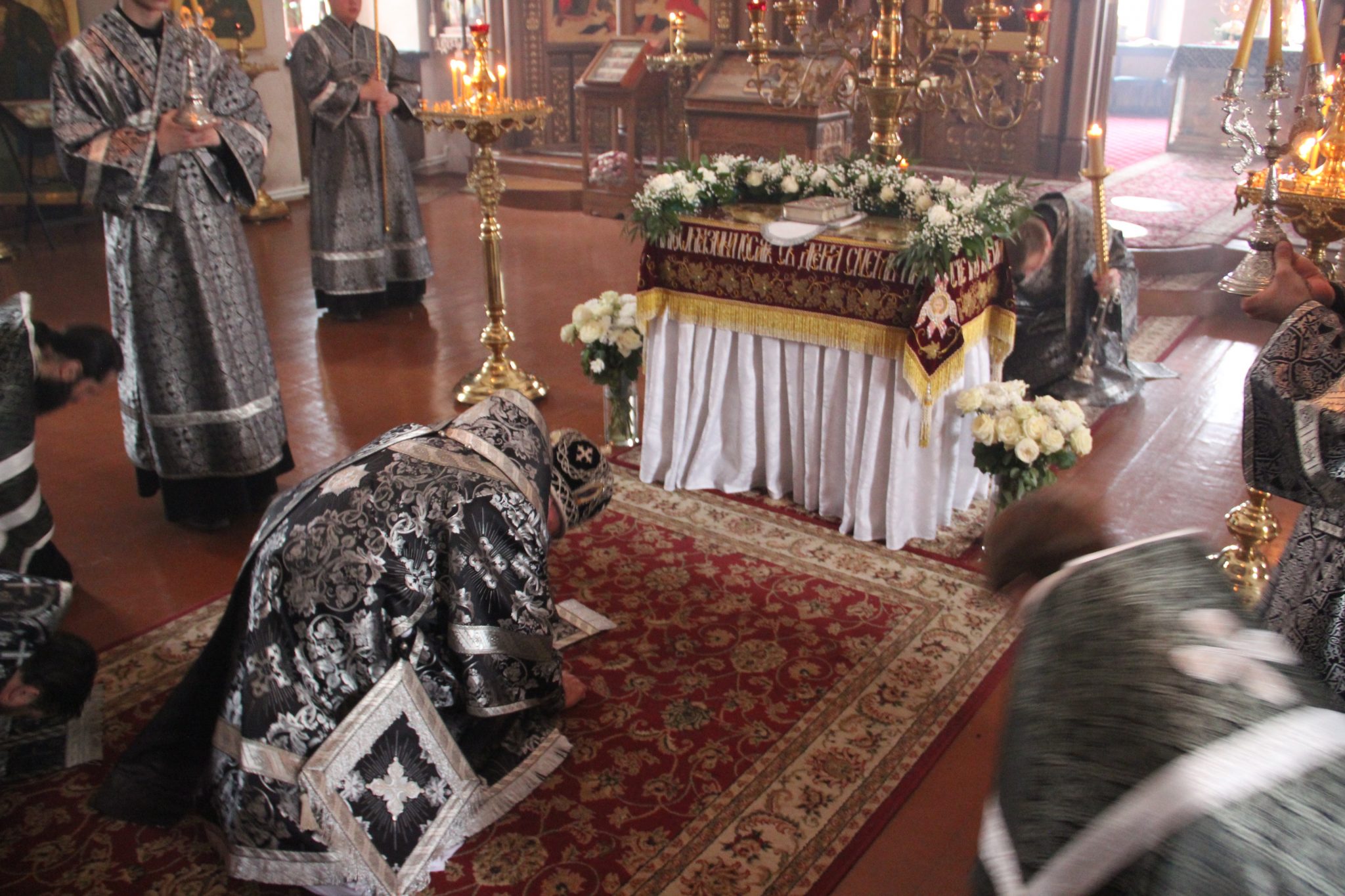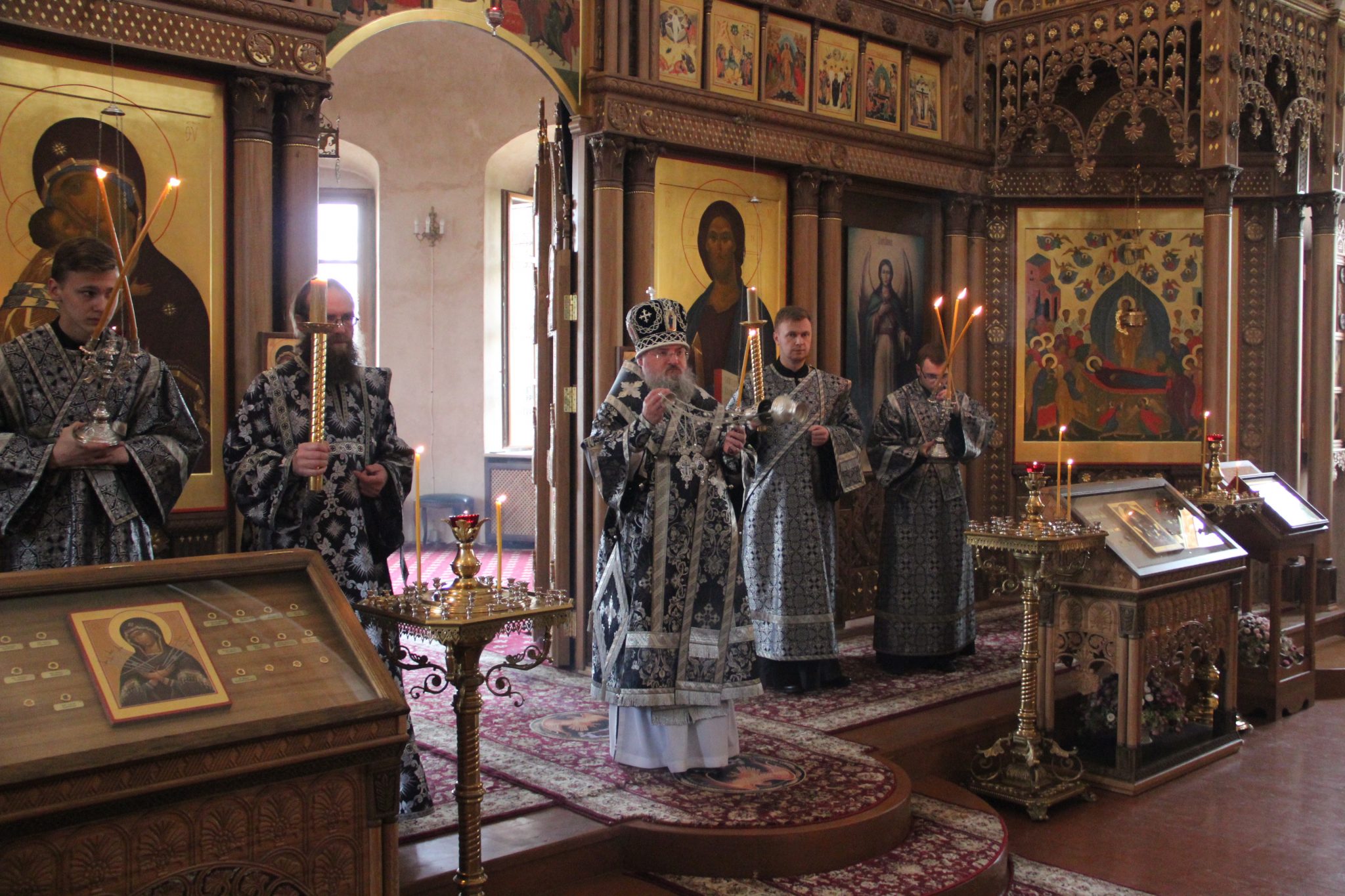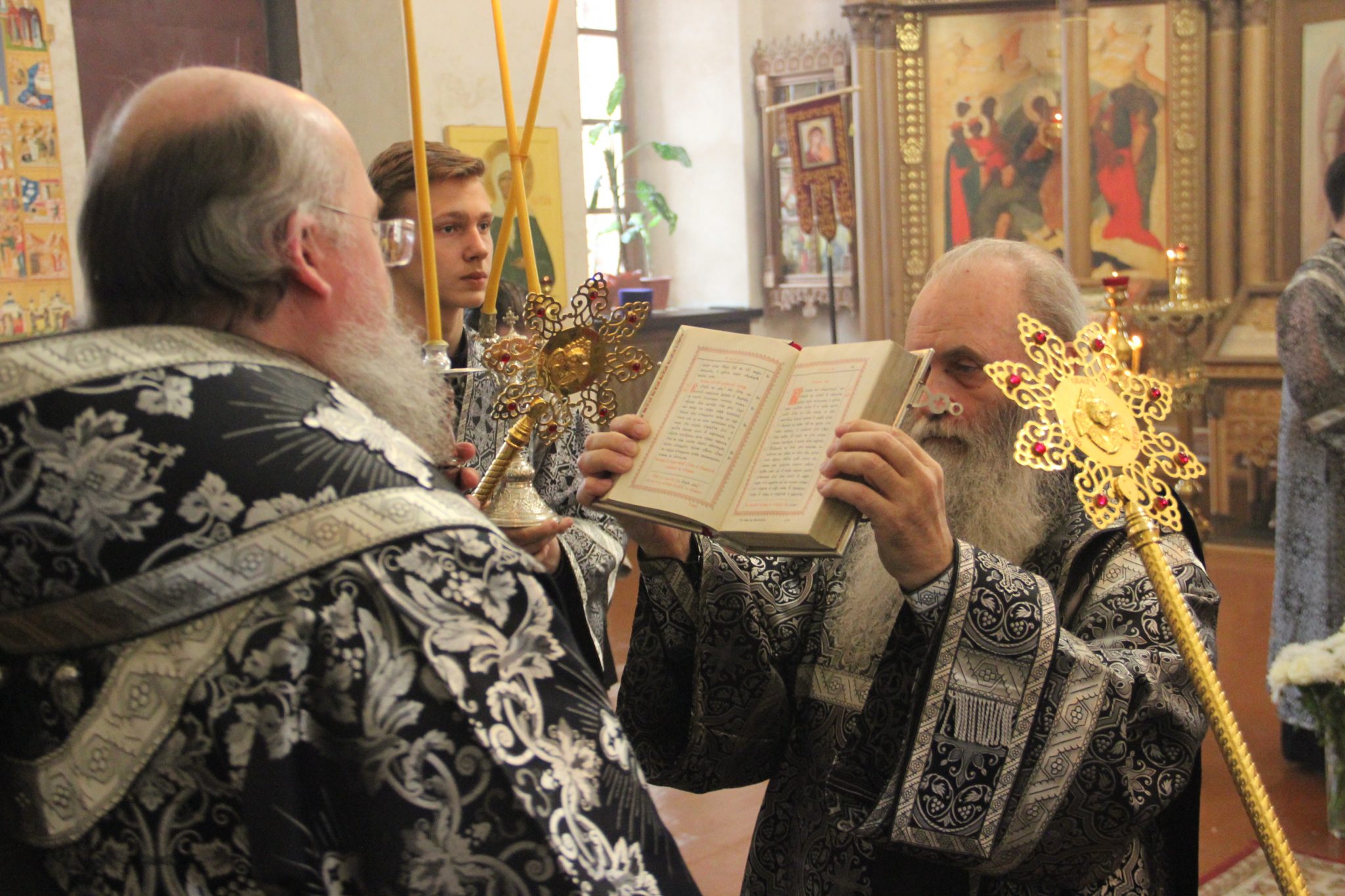 Его Преосвященству сослужили: настоятель собора иеромонах Паисий (Курмаз), протоиерей Антоний Хатунцев, иерей Елисей Тимофеев, иерей Максим Изопов, диакон Евгений Ковригин, диакон Димитрий Лутков и иеродиакон Виталий (Павленко).