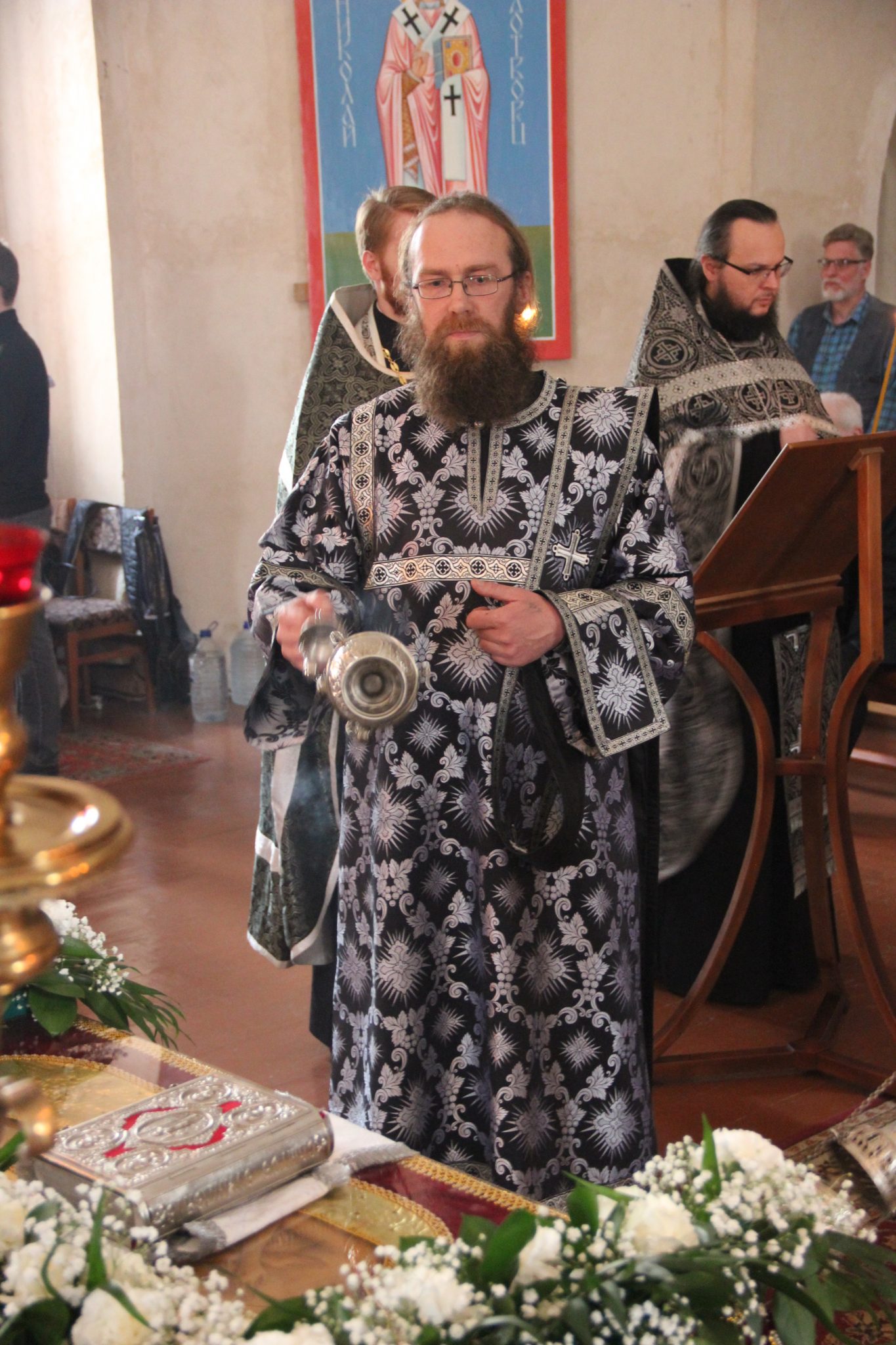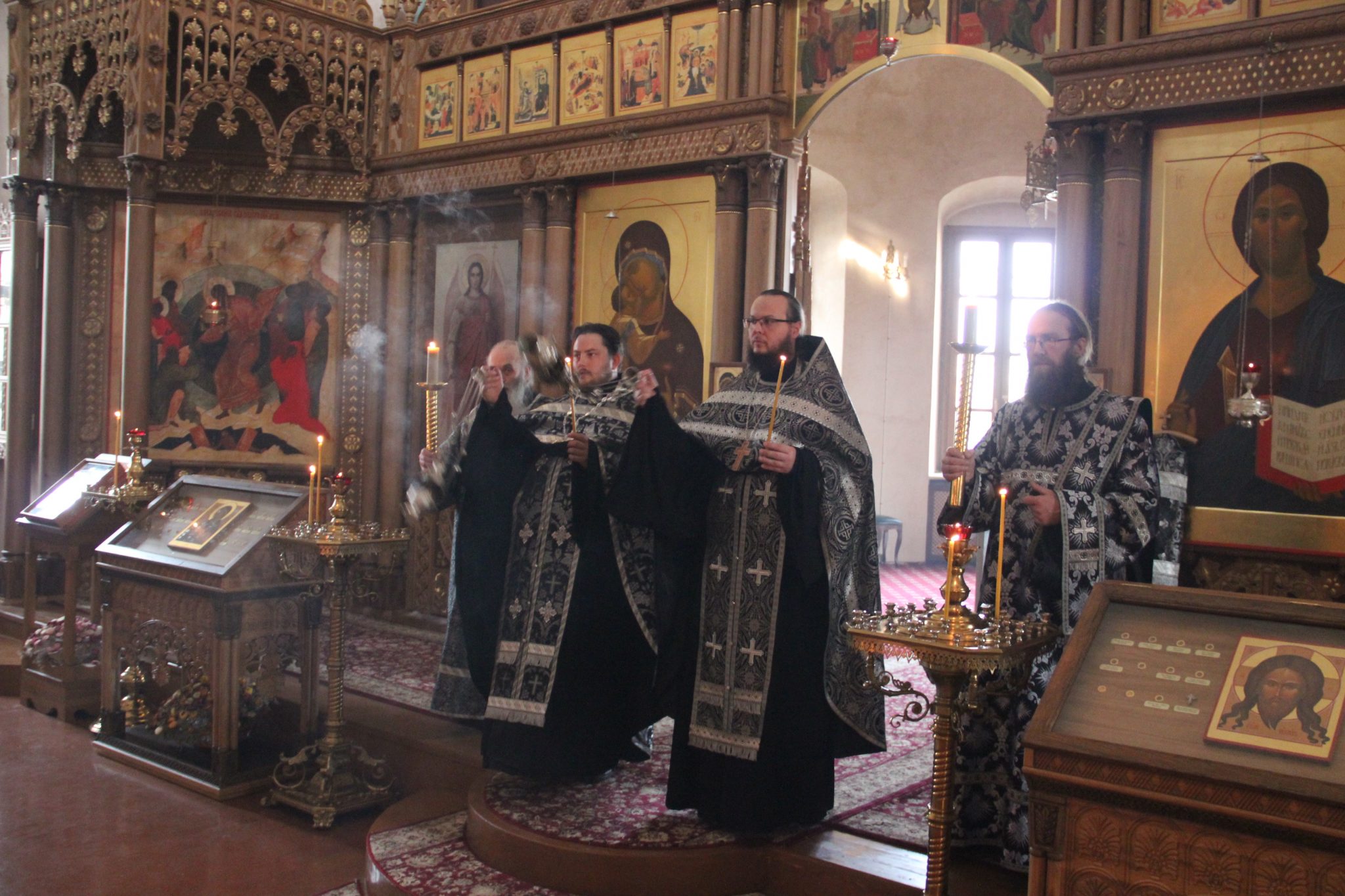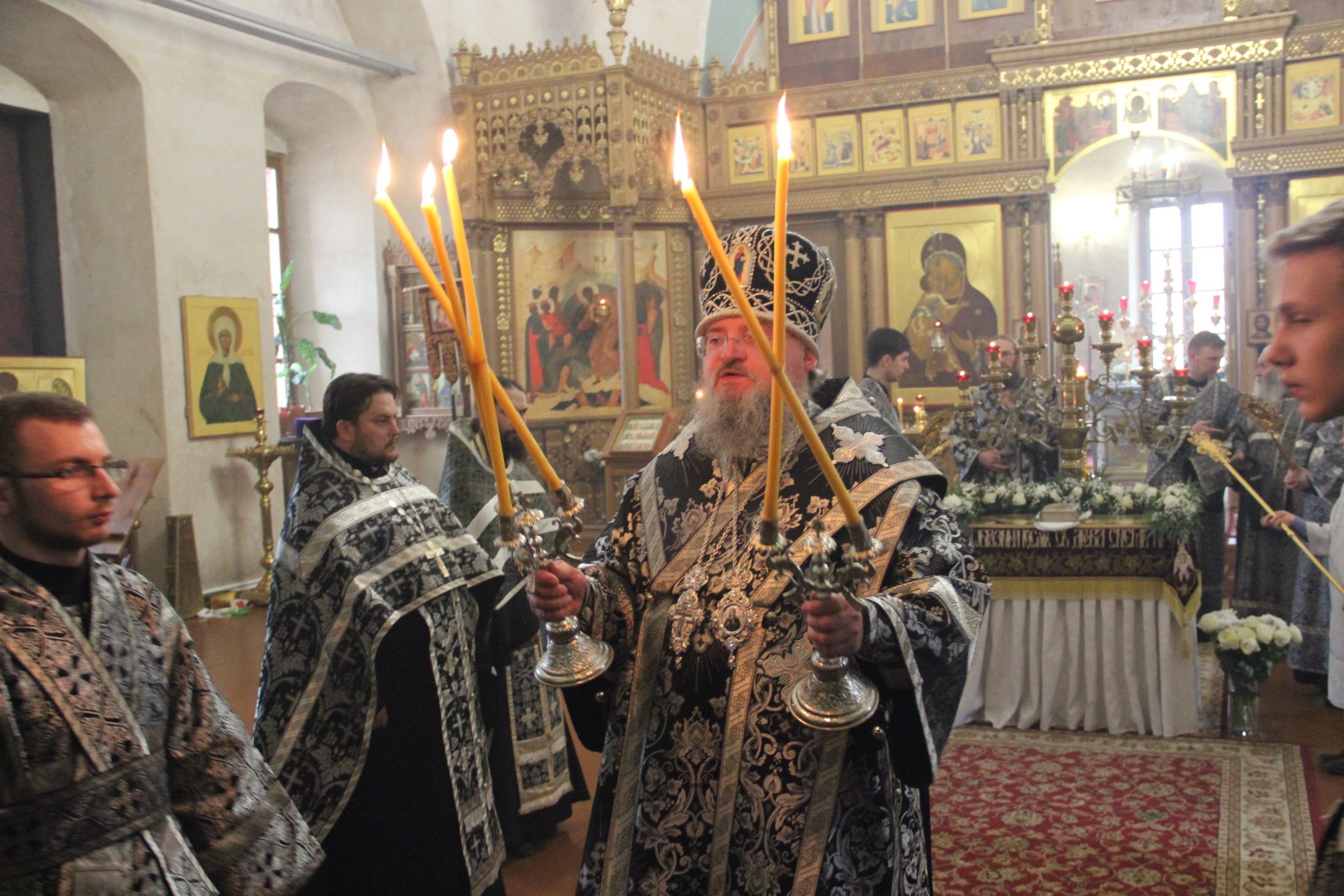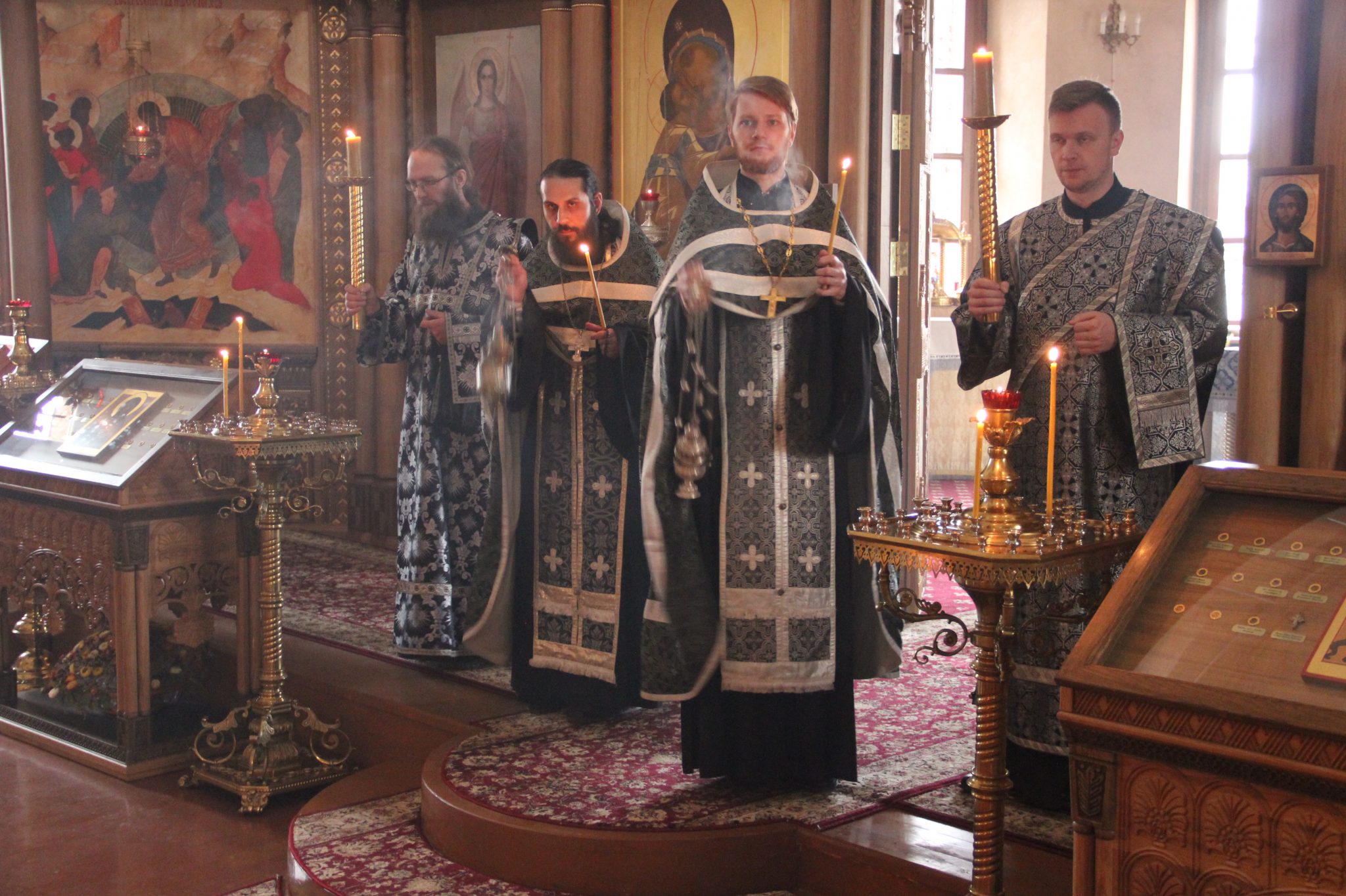Его Преосвященству сослужили: настоятель собора иеромонах Паисий (Курмаз), протоиерей Антоний Хатунцев, иерей Елисей Тимофеев, иерей Максим Изопов, диакон Евгений Ковригин, диакон Димитрий Лутков и иеродиакон Виталий (Павленко).
