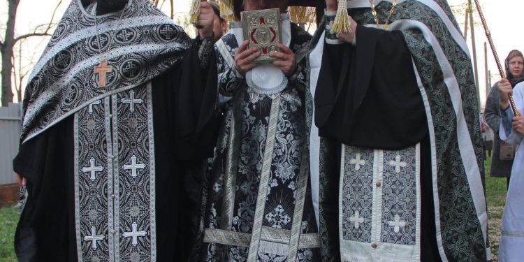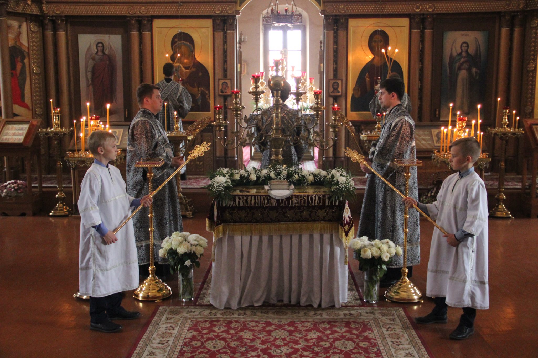 На утрени были прочитаны статии на погребение Господа, а в завершении богослужения состоялся торжественный крестный ход во время которого святая Плащаница была обнесена вокруг храма.