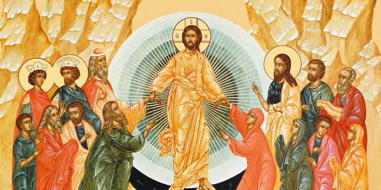 Воскрес Христос, и исполненные ликования жены мироносицы, пришедшие рано ко гробу Господню, и обнаружившие гроб пустым, спешат к апостолам, чтобы поделиться с ними радостной вестью. Апостолы, услышав о Воскресении, не верят женщинам и сами бегут к гробнице, чтобы проверить всё услышанное. И после того как сами удостоверились в истинности Христова Воскресения, идут и проповедуют Евангелие во все концы земли.