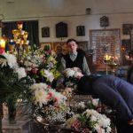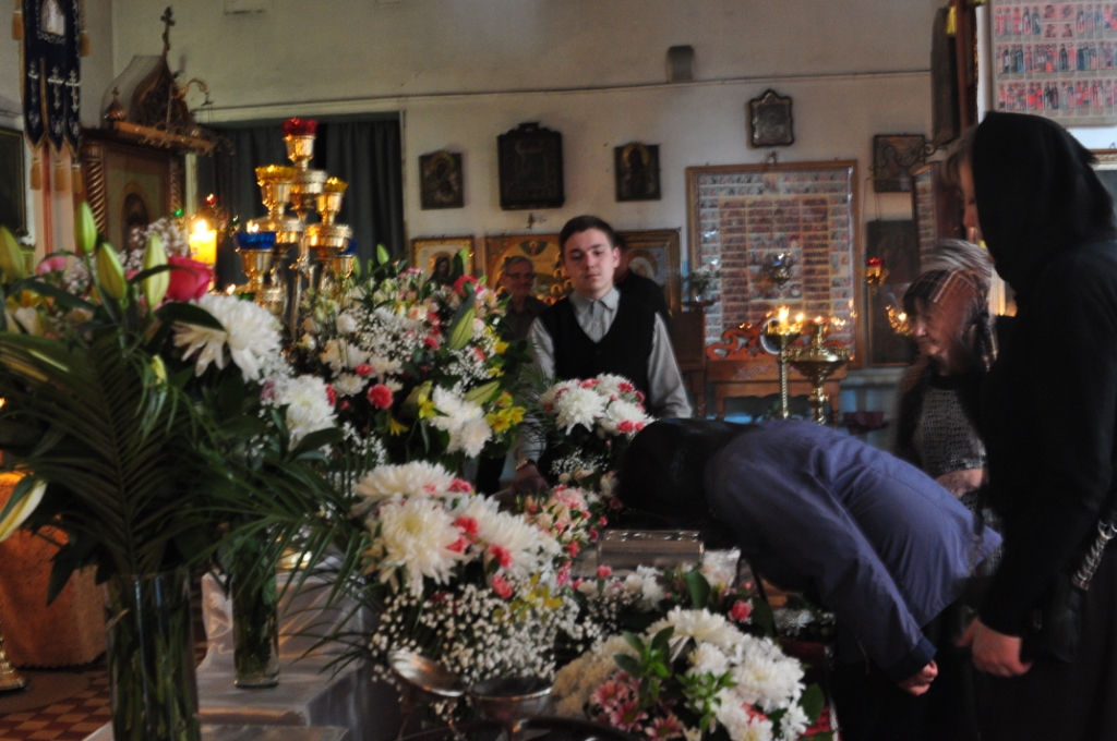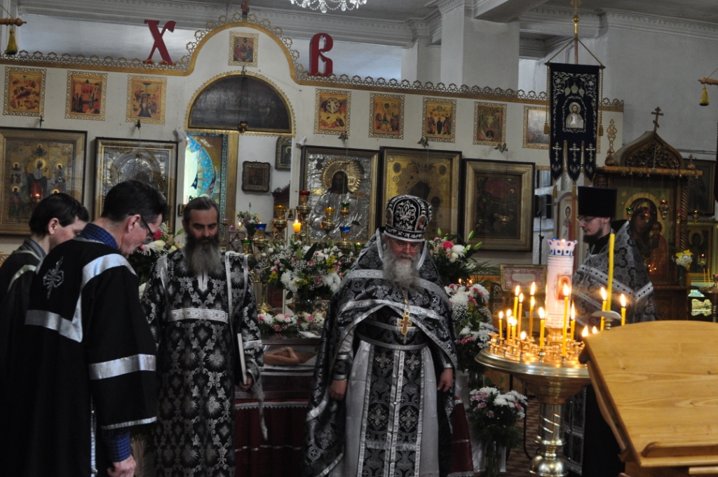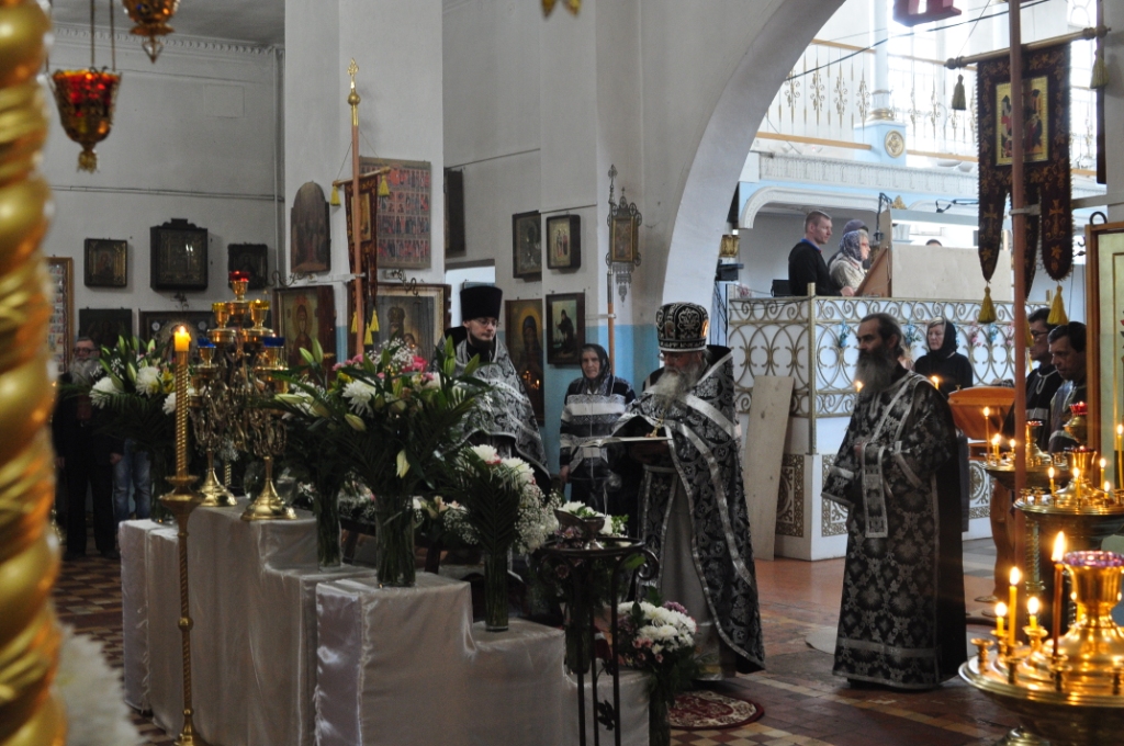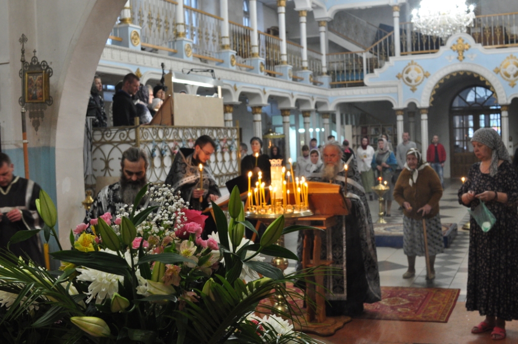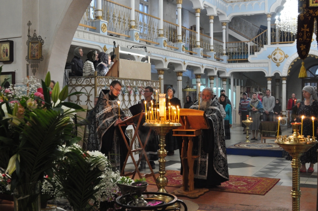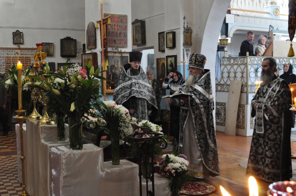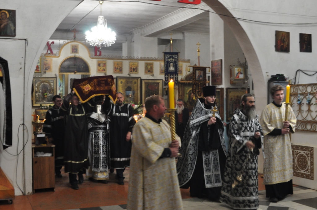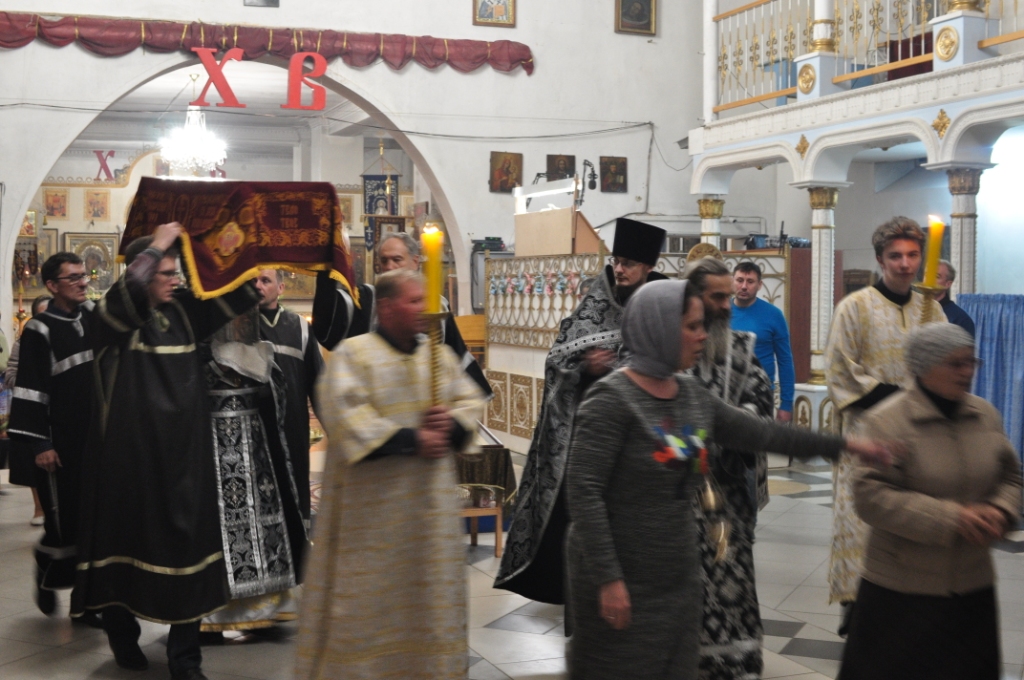 В конце вечерни, при пении тропаря «Благообразный Иосиф, с древа снем Пречистое Тело Твое», из алтаря на середину храма была перенесена Святая Плащаница.