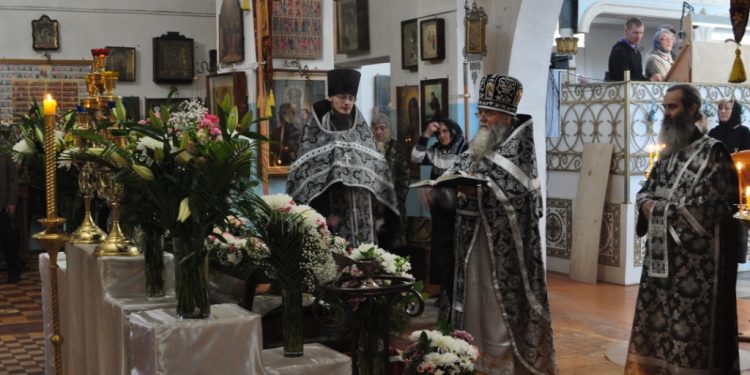 Затем совершили малое повечерие с чтением канона «О распятии Господа и на плач Пресвятой Богородицы».