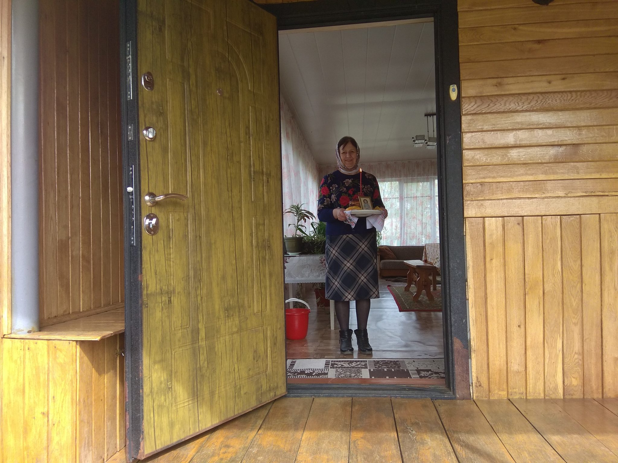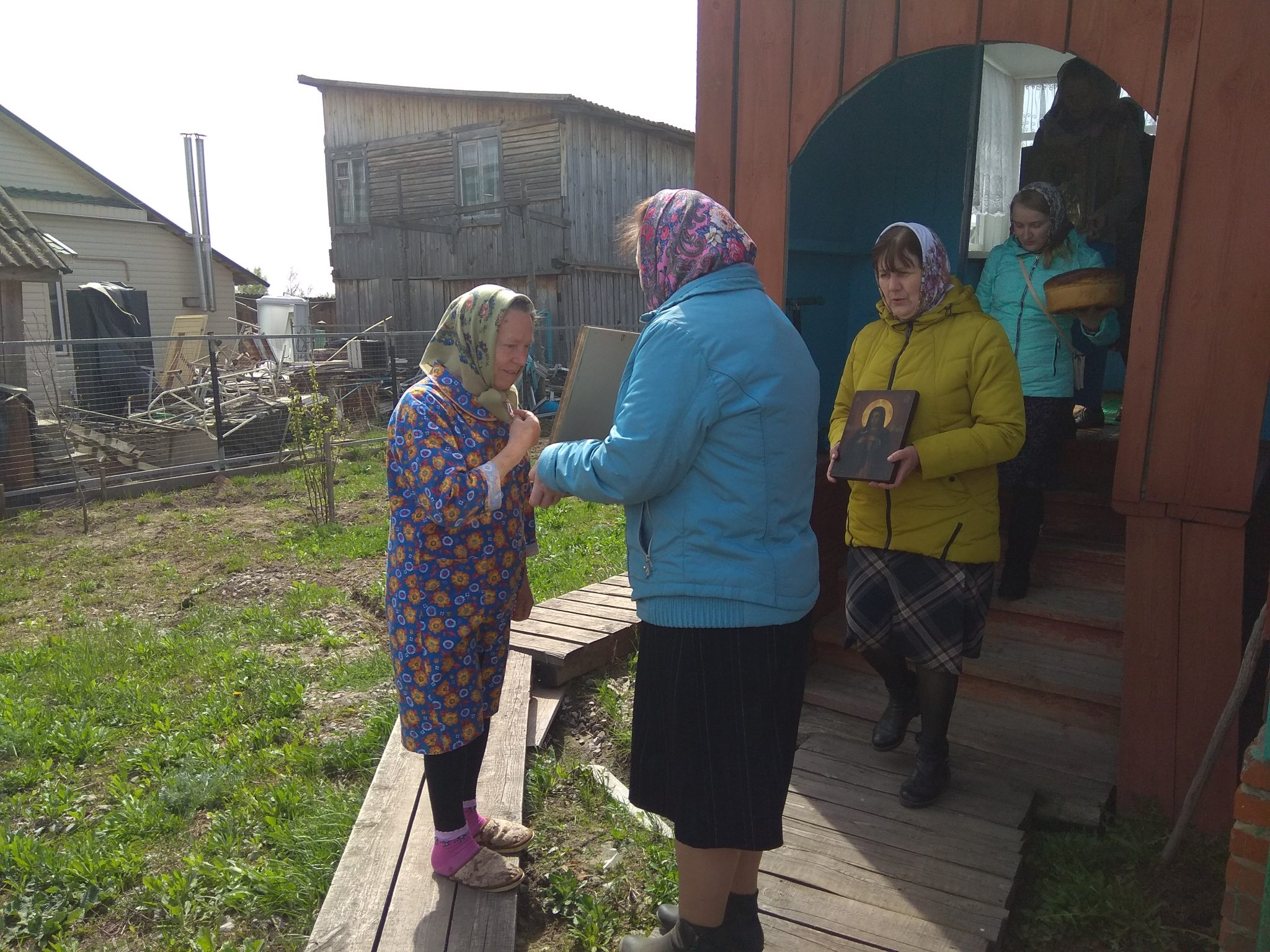 В каждом доме, где принимали, участников Крестного хода встречали с хлебом и солью. Далее все проходили в специально убранную комнату, торжественно читалось Пасхальное Евангелие и весь дом окроплялся святой водой.